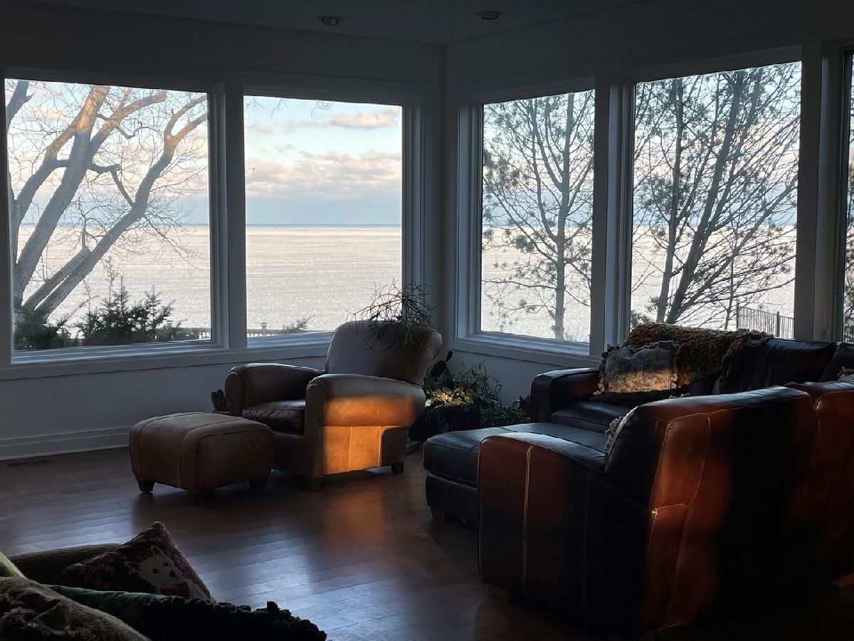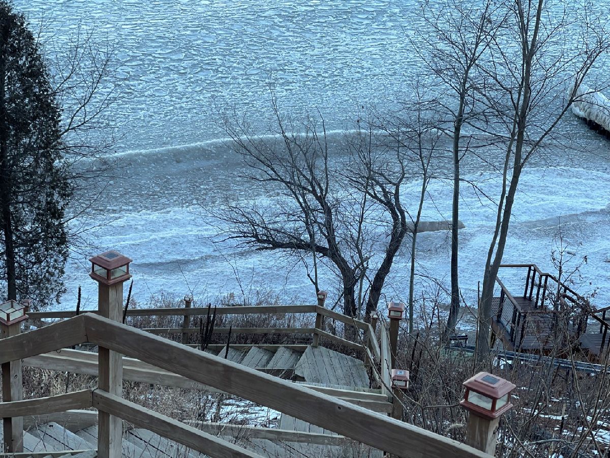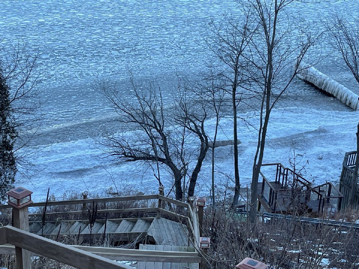 Newly remodeled lakefront house with unrestricted lake views from every room. Watch the sunset over the lake and enjoy resort-like living while relaxing in your private setting by the house. Two story open foyer with immediate views of the lake leads to the formal living room with a limestone fireplace, family room with built ins, and separate dining room with patio access- all with prime lake views. Brand new modern kitchen with all high end stainless appliances and upscale finishes offers multiple sinks and spacious eating area. Bright, open den overlooking the lake with outdoor access to stone patio completes the main level. Second floor offers 5 bedrooms and 4 bathrooms. Beautiful master suite with a large walk in closet. Third floor includes two additional bedrooms and full bath. Lower level features a large recreation room and plenty of storage space. Greatly landscaped yard has 3 viewing areas of the lake. In addition to the wooden deck situated on top of the bluff there is another wooden deck by the sandy beach. Beautiful landscaping includes new stairs leading to the beach surrounded by nice vegetation and flowers.