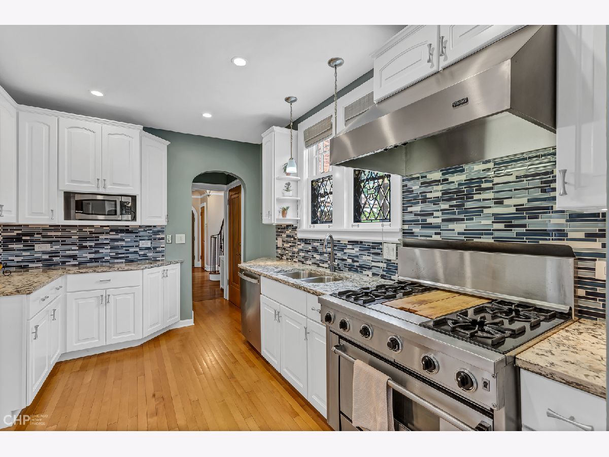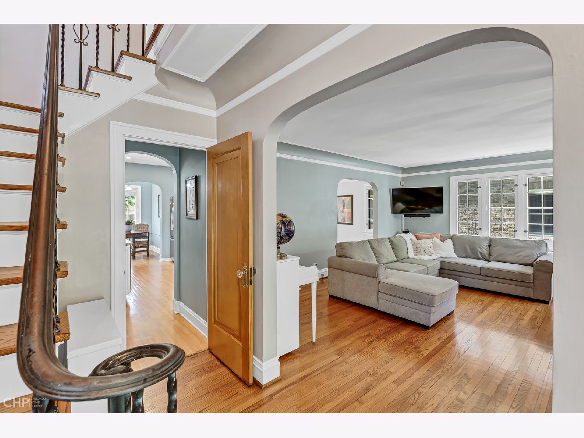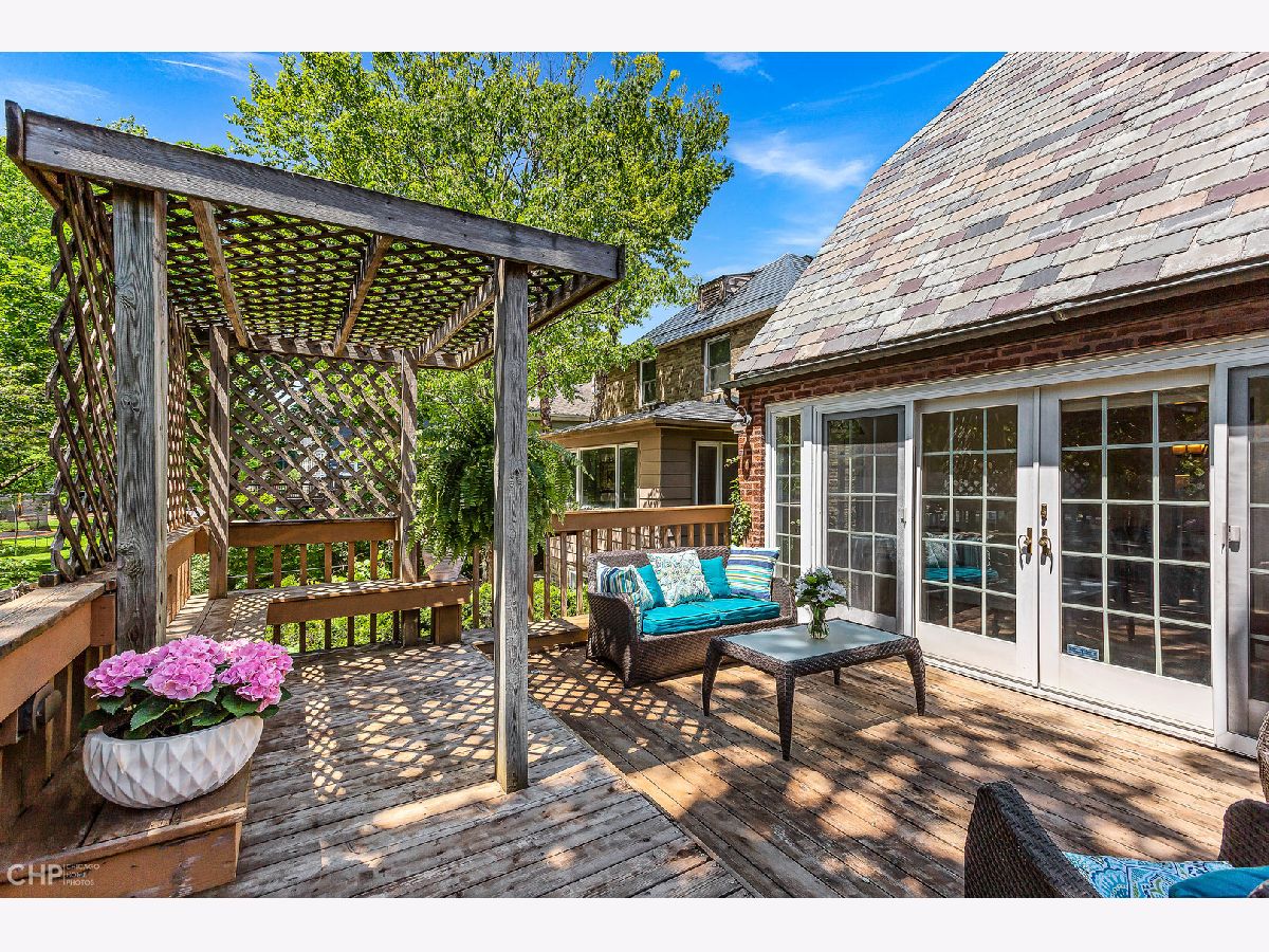 Stunning English Tudor located in the prime first division of historic Riverside. Charm abounds throughout this special home with slate roof. As you enter the foyer you are met with a striking staircase and foyer. The large living room features a custom rounded built-in, gas fireplace with an impressive mantle. The dining room has two original corner built-ins, opening to a darling sunroom opens to a deck over the garage, making outdoor entertaining a breeze. The kitchen was updated in 2018 with a new backsplash, granite countertop, and painted cabinets. You'll love cooking on the Viking range, Dishwasher 2022, and Refrigerator 2018. A unique iron staircase takes you upstairs to 3 bedrooms and a full bathroom with a steam shower and soaker tub. The attic space is worth a look, great for storage. The basement offers ample storage, a nice workshop room, shower, and laundry. Double doors lead to the two-car attached heated garage. This is a one-of-a-kind home less than a mile to train, ample parks surround this home, a few blocks to town, train, schools, library and all Riverside has to offer. Located in the vibrant Village of Riverside, 11 miles from Chicago. Sought after community with great schools, parks and amenities.