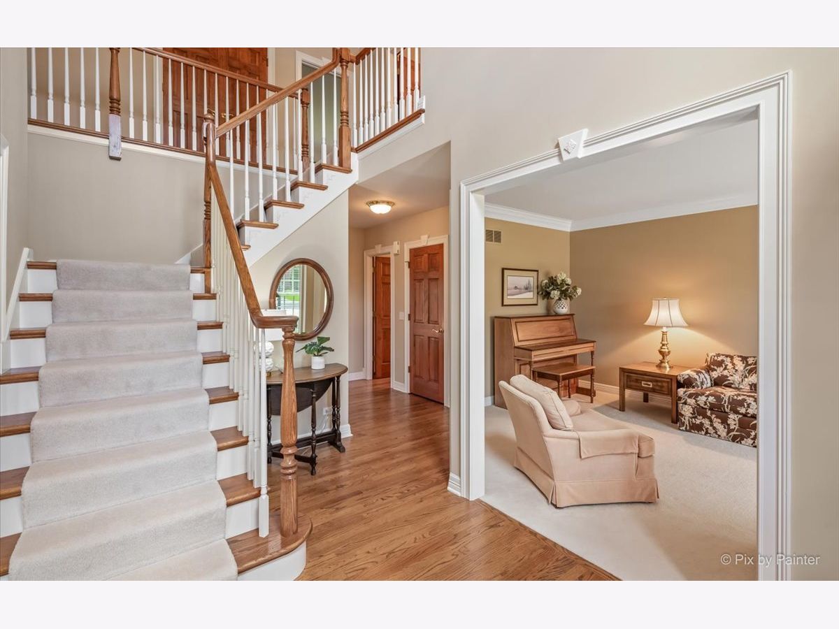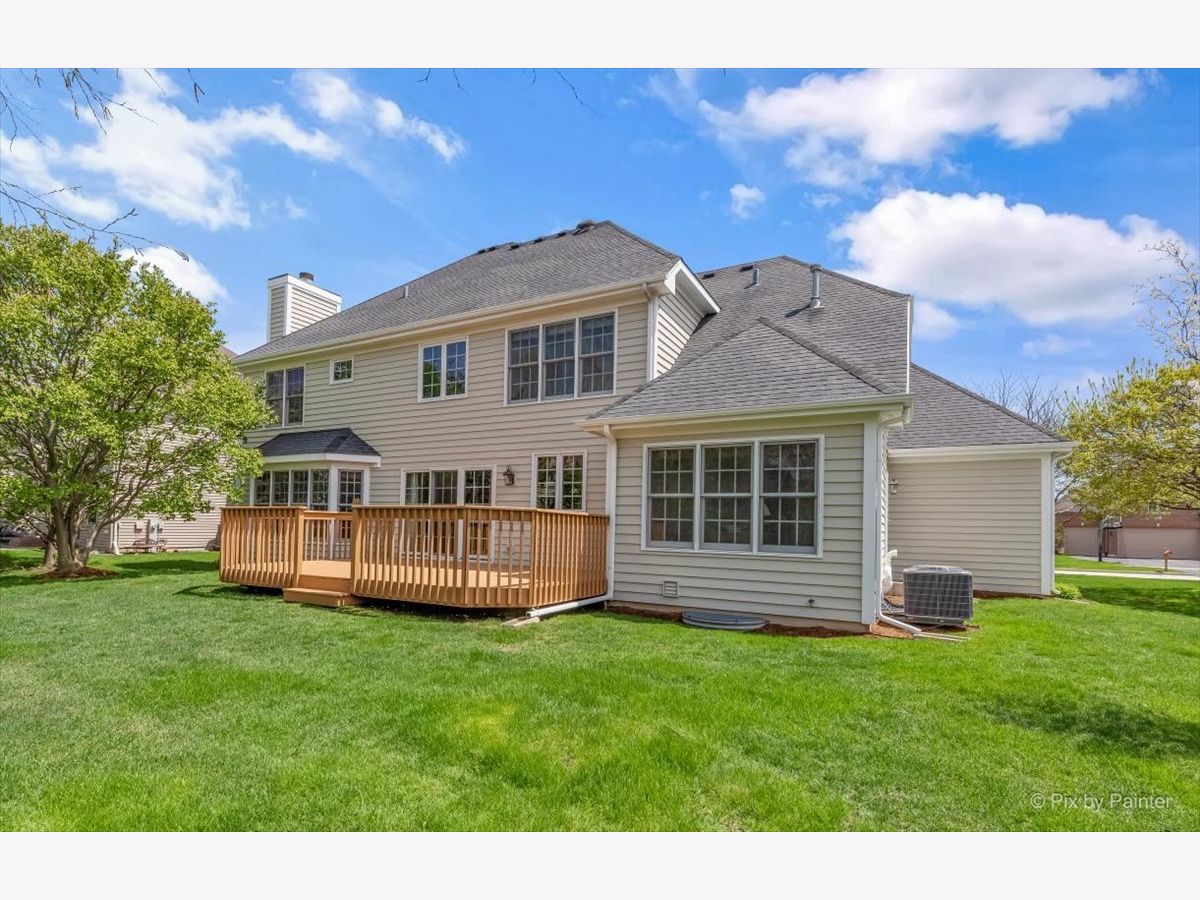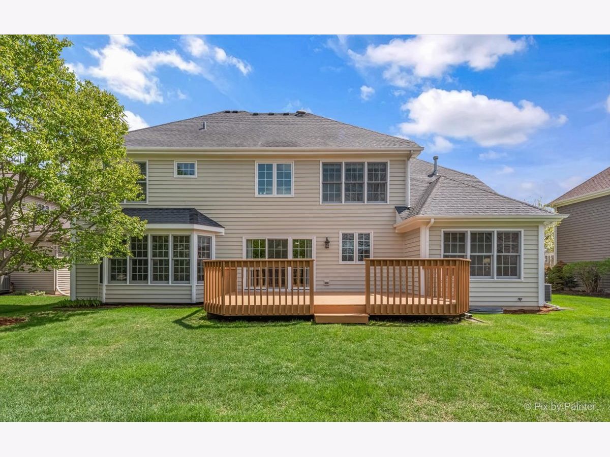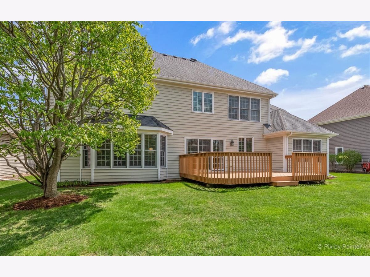 ***D303 St. Charles Schools*** John Henry custom-built home in Cornerstone Lakes! 4 bedrooms, first floor office, 3.1 bathrooms, 3-car garage and a full basement. The 4th bedroom has an ensuite bathroom! Cornerstone Lakes offers so much beauty with the ponds and lakes throughout plus parks and playgrounds to fully enjoy outdoor living. Main level is highlighted by hardwood floors, neutral paint, solid oak doors, and custom window treatments. Two story foyer with attractive double staircase opens to separate living and dining rooms. The kitchen has abundant cabinets with crown mouldings and expansive counters, center island, and eat-in area with sliders to the back deck and lush green space. The kitchen overlooks the family room featuring a bay window, beautiful built-ins and a brick faced fireplace. Private office and laundry room off the 3-car attached garage that is fully drywalled. Master Suite with tray ceilings and a huge (26x7) walk-in closet and ensuite bath with extended double sink vanity, whirlpool tub, and separate shower. 3 additional bedrooms, 1 with ensuite bath, and full hall bath complete the 2nd floor. Need more space? This builder wisely created extra space adjacent to the master bedroom walk in closet. It remains unfinished, with basic floors in place for your ideas: sitting room, storage or even more closet space. Value-Added Features: (2022) deck stained, office painted, front door painted; (2021) A/C, furnace, humidifier, sump pump; (2020) exterior painted; (2017) water heater.