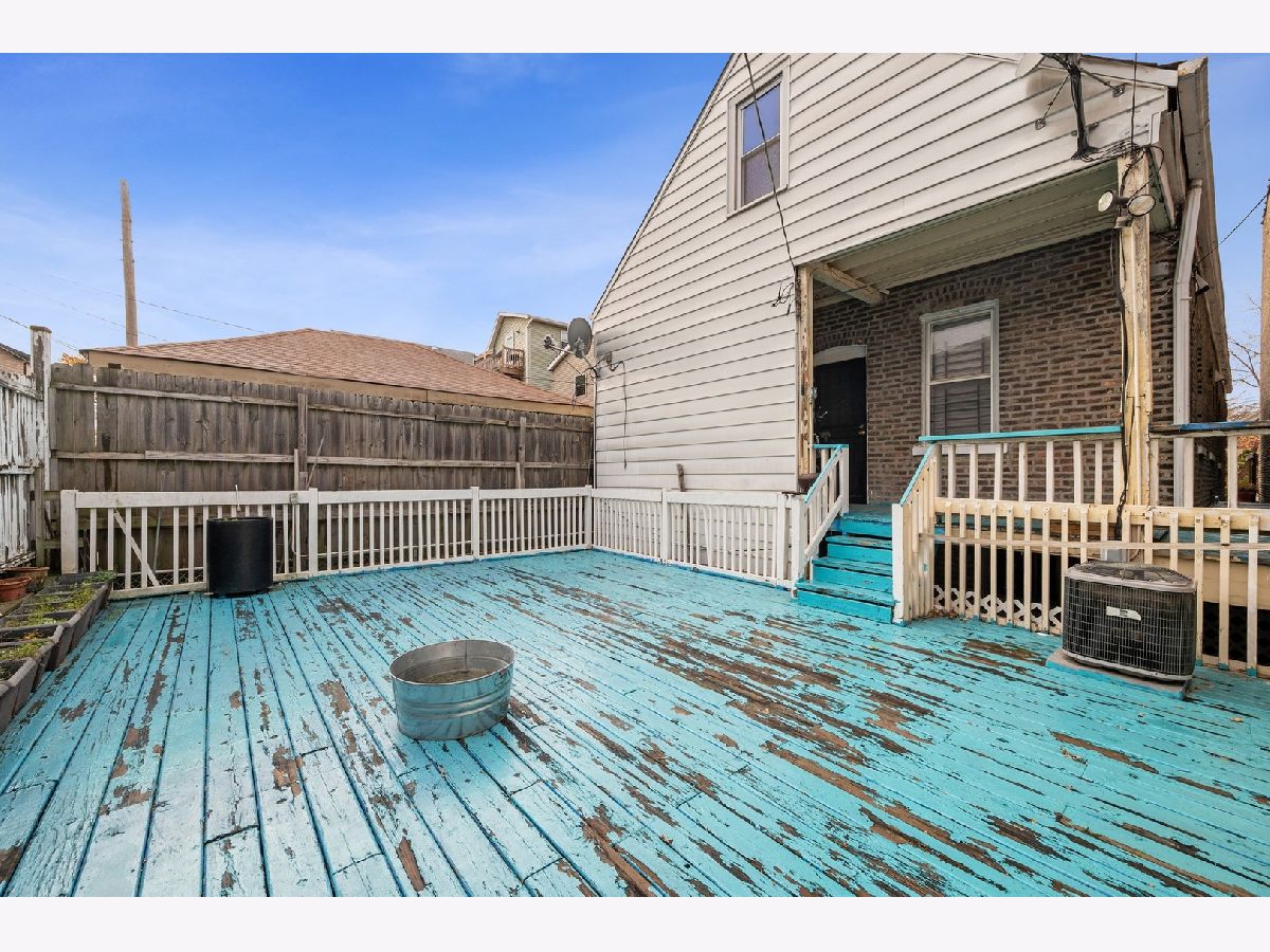 Solid brick structure property with four bedrooms and two bathrooms on the main floor. Living room has soaring ceiling height with huge bay window that shines bundle of natural light. Large living room with hardwood flooring and ceiling fan & light. Great sized kitchen with eat-in space and plenty of cabinets. Rear access to an amazing wooded deck for outdoor entertainment. Full basement partially finished with family room and laundry room plus plenty of storage spaces. Tall ceiling height in the unfinished attic offers lots of storage space or can be finished to new owner's taste. Central A/C, Newer stove/oven, and refrigerator in front unit. Quick access to I-55 & I-90/94, Bosley Playground around the corner, minutes to McGuane Park, 10min to Chinatown, 5min to Orange Line, and more. Sold AS-IS. Sellers are motivated.