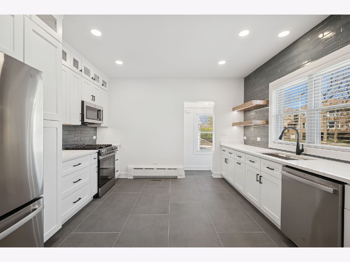 This inviting Highland Park brick ranch is perfectly situated just moments from vibrant Highwood and only three blocks from the shores of Lake Michigan! Enjoy the best of both worlds-dining, shopping, and entertainment plus the beauty and recreation of the lake just a short stroll away. The light-filled living room boasts a fireplace, creating a warm and inviting space to relax. The heart of the home is the stunning, new modern kitchen that seamlessly opens to a large dining and living area perfect for entertaining! Two bedrooms on the main level complete with a newly updated main floor bathroom. The basement offers even more living space with a playroom/office/3rd bedroom, a full bathroom, laundry area, and ample storage. There is a detached 2 car garage. Enjoy peace of mind with brand-new copper water service, new copper piping throughout and new electrical panel and wiring throughout and new A/C compressor. This home is truly a must-see. Don't miss your chance to own this gem!