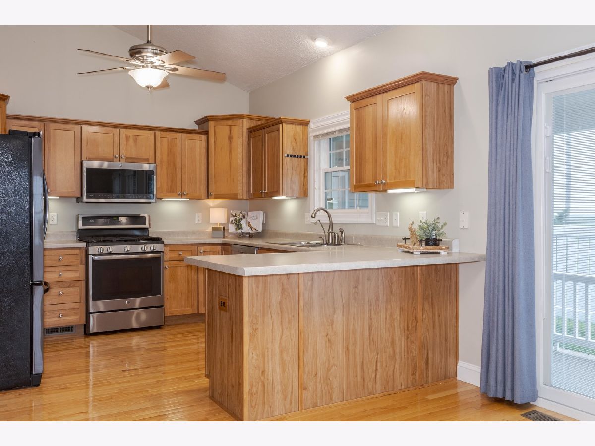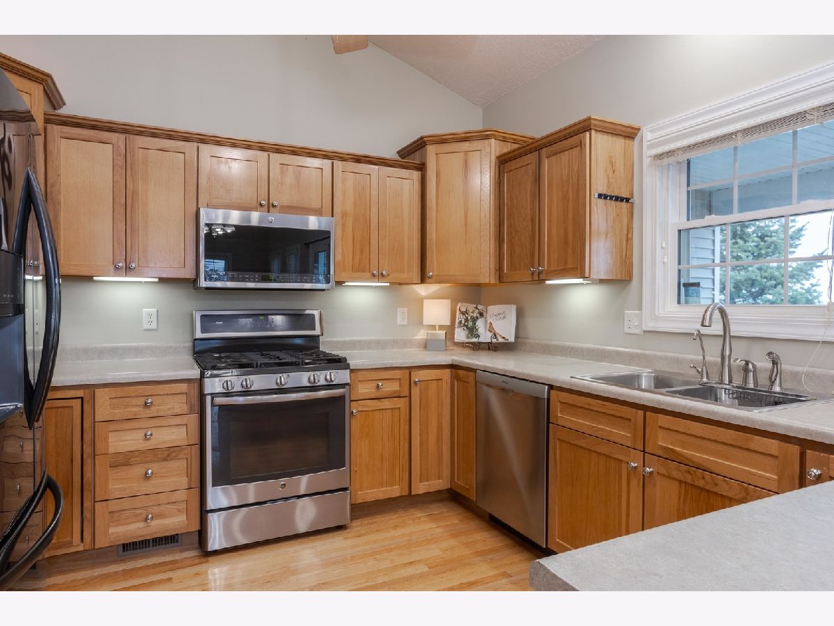 Highly desirable North Bridge Subdivision! You will love this 1.5 story with 3 bedrooms, 3.5 baths, and a 3 car HEATED garage. Wonderful open floor plan with cathedral ceilings. The kitchen features hickory cabinets, Bosch dishwasher, French door refrigerator, a gas range and microwave. First floor primary suite has great closet space and a private bath with a jetted tub, double bowl vanity and separate shower. Two additional large bedrooms are on the second floor and a full bath with linen closet. The first floor laundry includes front load washer and dryer on pedestals. Whole house hot water recirculating system. The basement has exterior walls insulated, drywalled and finished with electrical outlets installed. There is also a full shower bath in the basement. A basement egress window will easily allow for a future fourth bedroom. The fenced yard includes a storage shed with double doors and has NO BACKYARD or SIDE NEIGHBORS. Tons of updates in Associated Docs including roof, fence, storage shed, appliances, water heater, HVAC system, water heater, windows and more!
