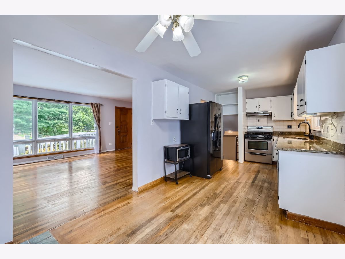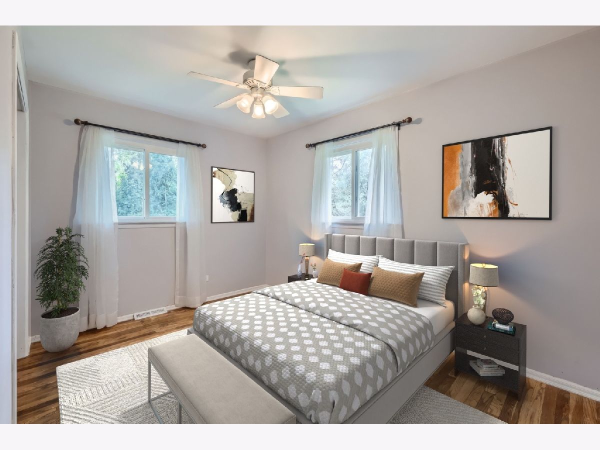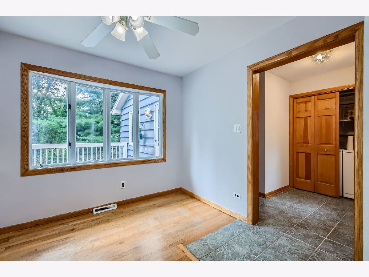 Welcome home to this beautiful 5 bedroom 2 bath home nestled on a large lot on a quiet street in a town just voted top 20 in Fortune's "50 Best Places to Live for Families." Hardwood floors, built-in shelving, and great natural light throughout. Kitchen features freshly painted white cabinets, granite counters, stainless steel appliances and table space with bay window looking at large deck perfect for grilling. Large first floor addition can be primary or extra bedroom with added first floor bathroom with grab bars already installed if needed. First floor laundry. Three spacious bedrooms upstairs with ample closet space in each. Large upstairs bathroom with tub and ample linen storage. Basement features recreation room that may include your new pool table and added storage. Large fifth bedroom or in home office with exposed brick for added character. This home has "no stair" ramp access to the entire first floor. 2 car detached garage and large storage shed. Property has many mature trees and breathtaking garden space that provides private space to entertain on those Summer nights! Close to highways, trains to downtown Chicago, restaurants, shopping, and so much more!
