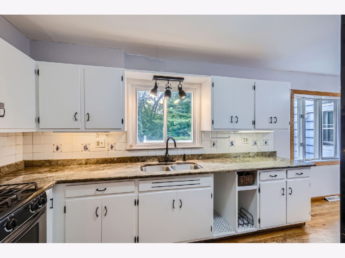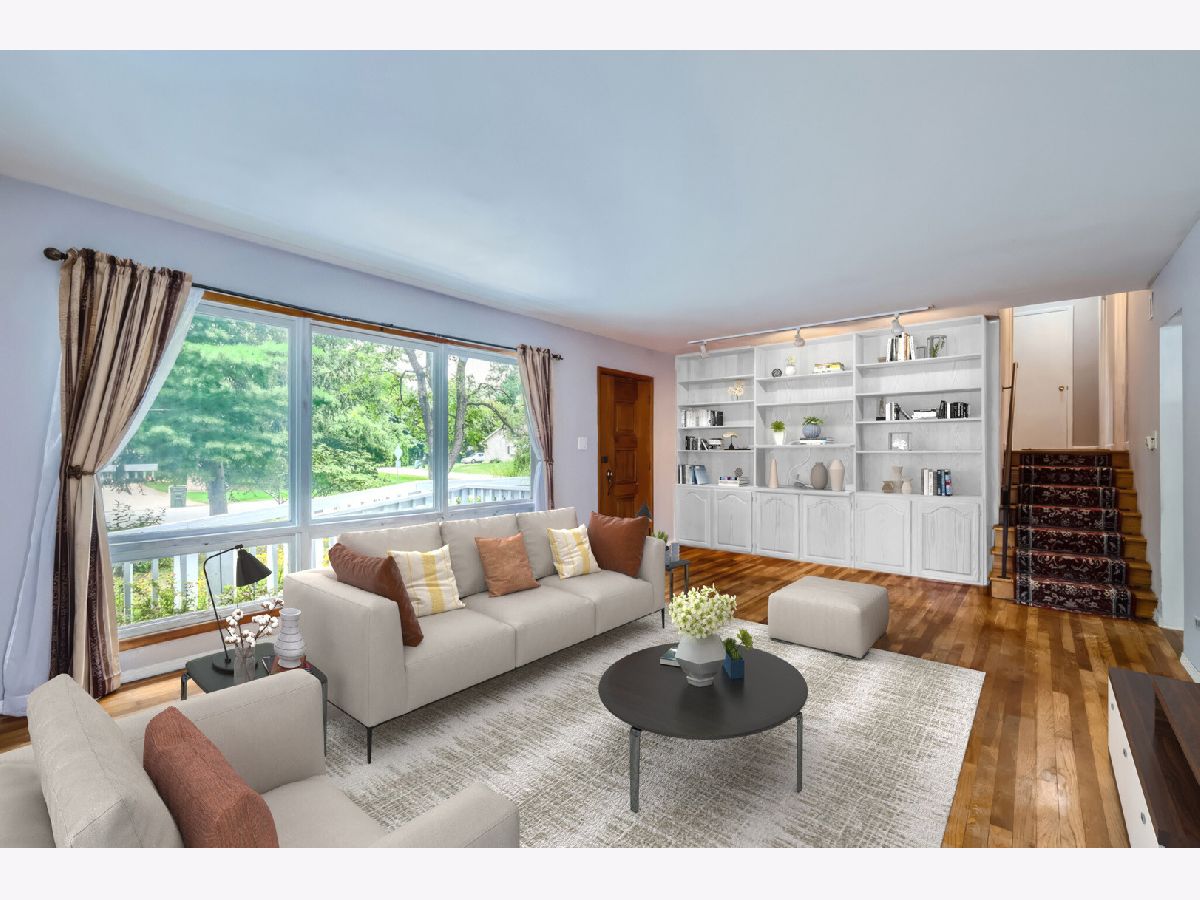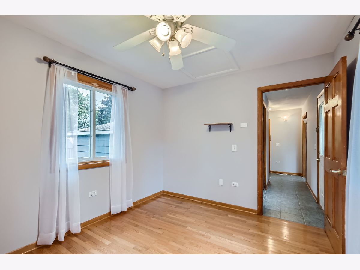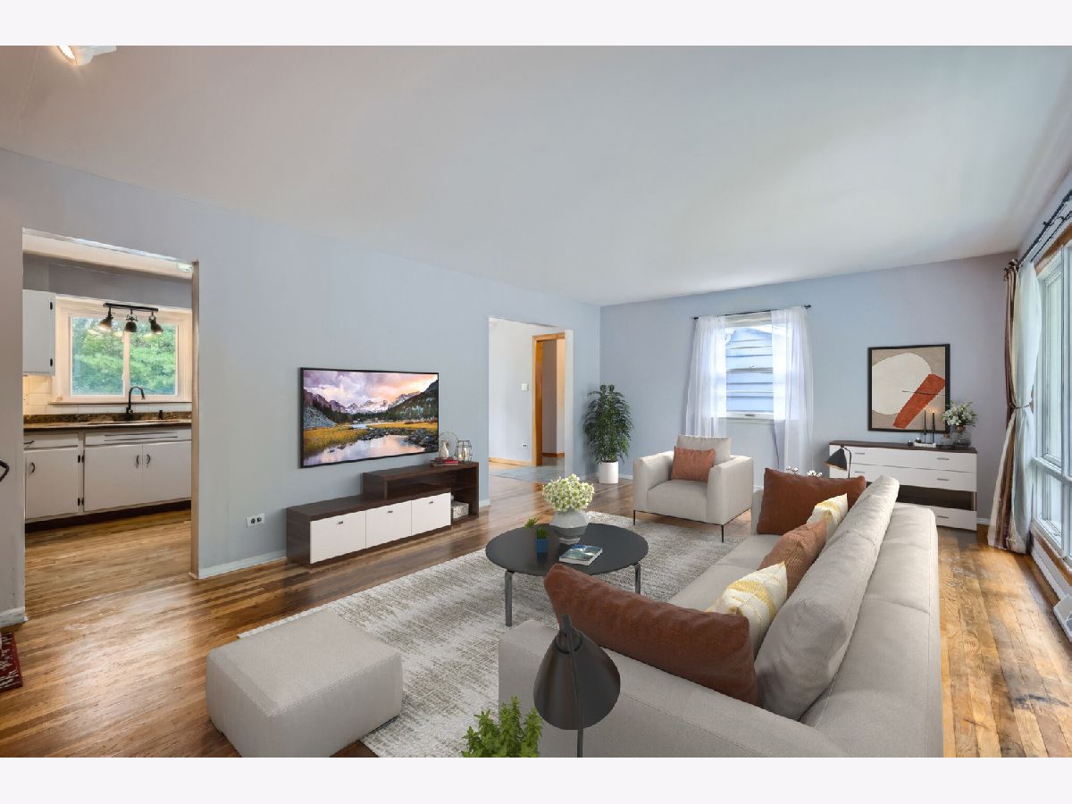 Welcome home to this beautiful 5 bedroom 2 bath home nestled on a large lot on a quiet street in a town just voted top 20 in Fortune's "50 Best Places to Live for Families." Hardwood floors, built-in shelving, and great natural light throughout. Kitchen features freshly painted white cabinets, granite counters, stainless steel appliances and table space with bay window looking at large deck perfect for grilling. Large first floor addition can be primary or extra bedroom with added first floor bathroom with grab bars already installed if needed. First floor laundry. Three spacious bedrooms upstairs with ample closet space in each. Large upstairs bathroom with tub and ample linen storage. Basement features recreation room that may include your new pool table and added storage. Large fifth bedroom or in home office with exposed brick for added character. This home has "no stair" ramp access to the entire first floor. 2 car detached garage and large storage shed. Property has many mature trees and breathtaking garden space that provides private space to entertain on those Summer nights! Close to highways, trains to downtown Chicago, restaurants, shopping, and so much more!