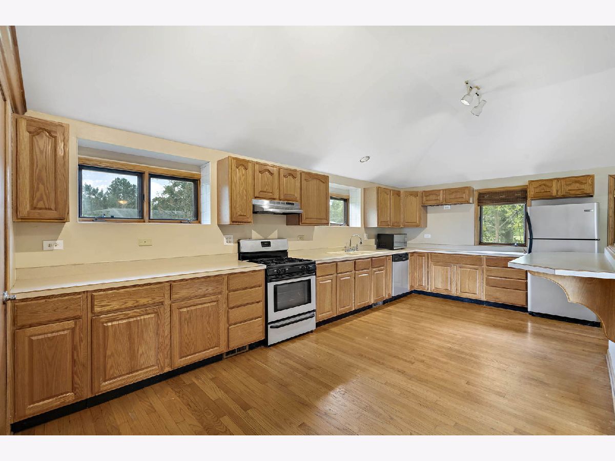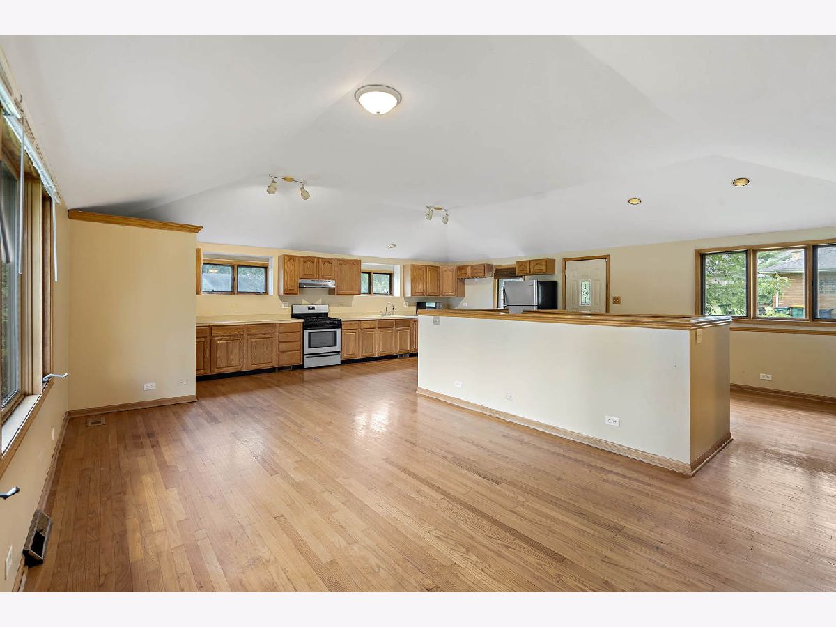Well maintained ranch boasts sunny, open floor plan w/vaulted ceilings & hardwood flooring. Large open kitchen offers stainless steel appliances, oak cabinetry, walk-in pantry, eat-in area & breakfast bar seating. Partially finished basement, built-in bar and spacious room, perfect for office/bedroom/workout room. Move-in ready! Features a large fenced, corner lot w/mature trees & shed. Park blocks away. You don't want to miss.