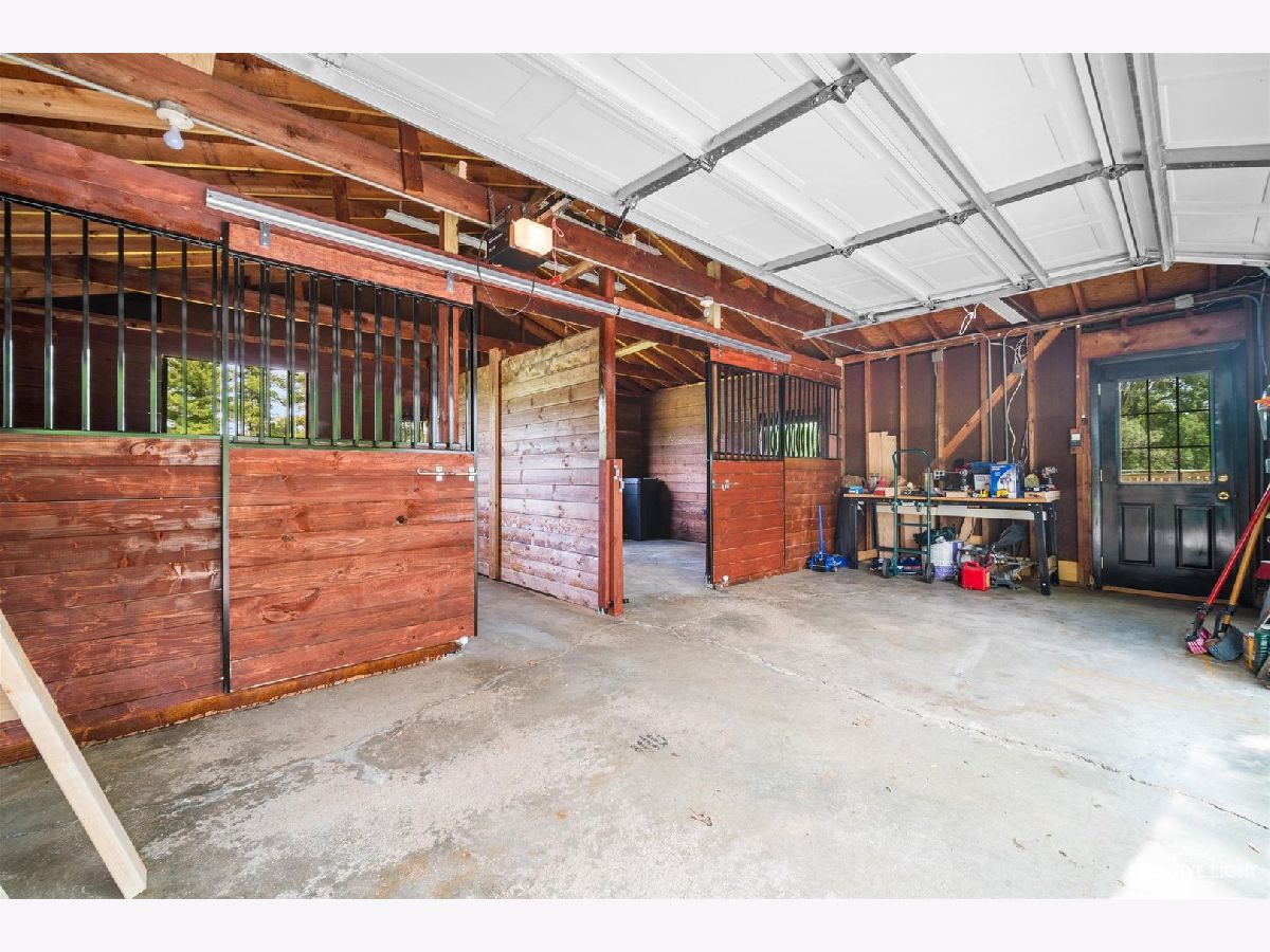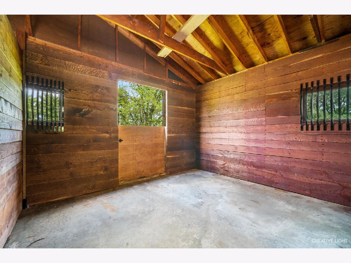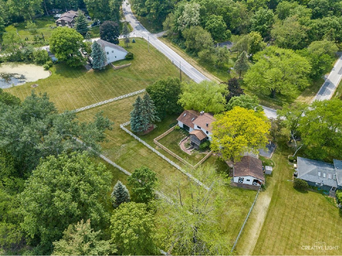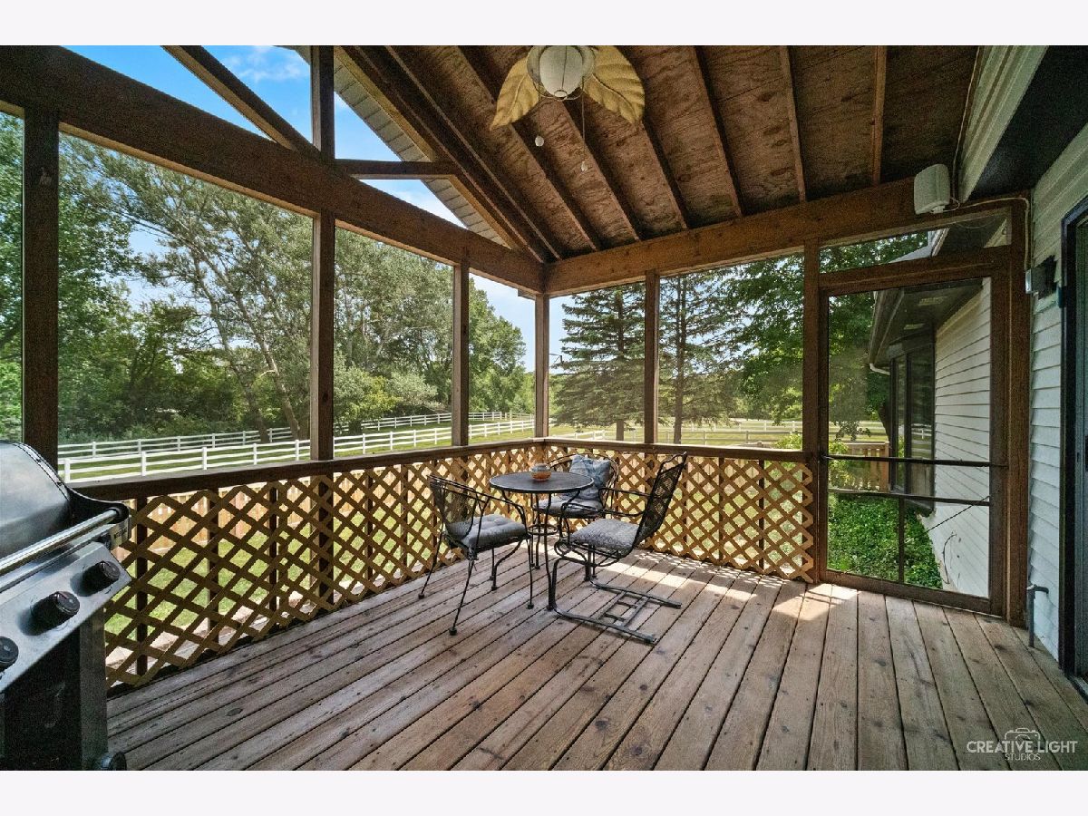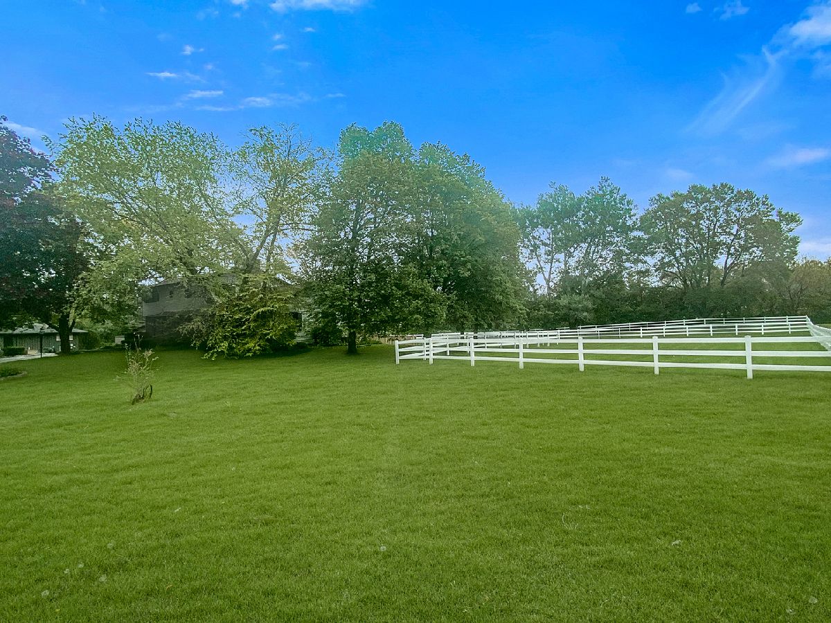 Welcome Home! Lovely 4 Bedroom Home. Great Entertaining Room with Two Sided Stone Fireplace, Solid Wood Beam Cathedral Ceiling, Skylights, Built-In Book Shelves, Full Bar, Gaming Space & Family Lounging Area. Solid Custom Oak Wood Cabinets, Corian Counters, Under Cabinet Lighting. Kitchen also Includes Eating Island Bar, Walk-In Pantry, Garden Window to Grow your Herbs & Great Views. Separate Dining Room for Large Family Gatherings. Spacious Enclosed Porch w/Ceiling Fan; Great for Entertaining and Enjoying Nature! All Bedrooms have Hardwood Floors. Master Bedroom has Walk-In Closet for Her and 2nd Closet for Him. Very Well Maintained Home; Whole House Fan. Full Walkout Unfinished Basement w/ Covered Patio. Barn is 24' x 24'. 2 Brand new stalls 12' x 12'. Can be a 12' x 24' birthing stall. 2 separate pastures. 2 external gates. Beautiful views of the entire fenced pastures from the kitchen or your deck. 1.41 Wooded Acres, 80'x40' Fenced Area w/6 Foot High Fence. New Close to Metra, Expressways & Shopping.