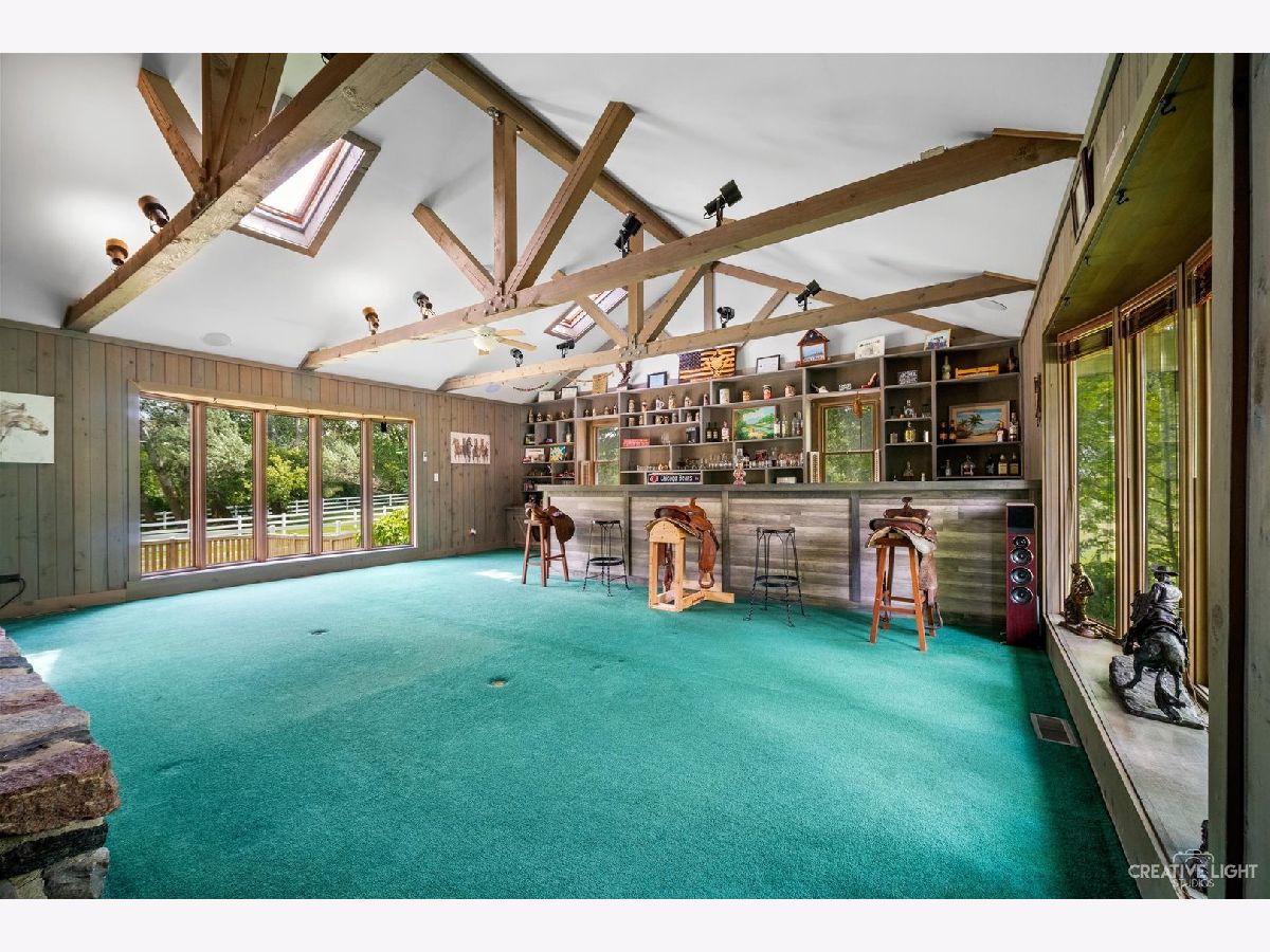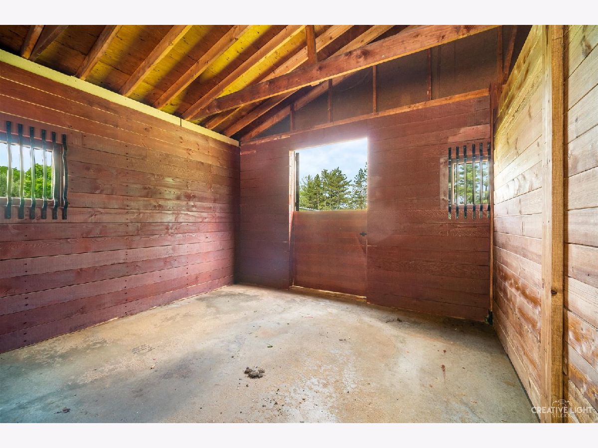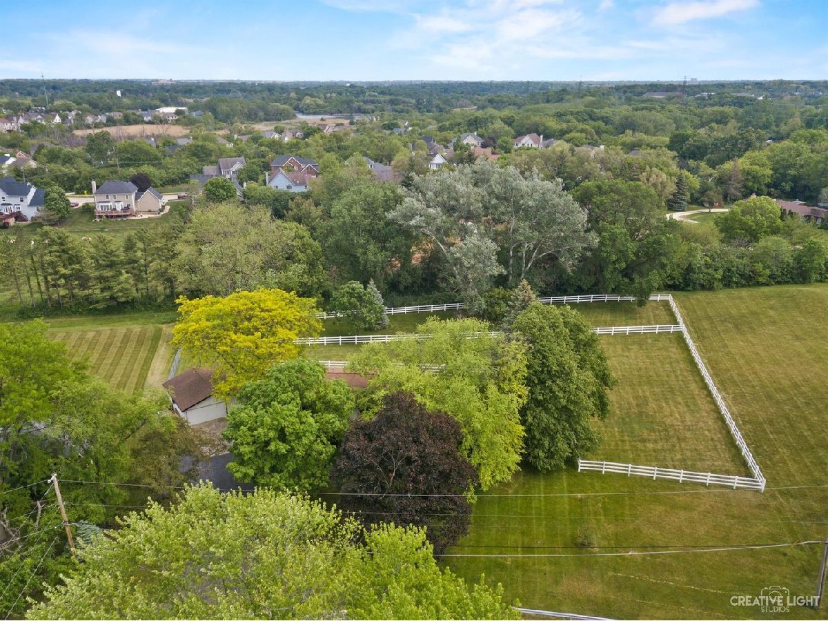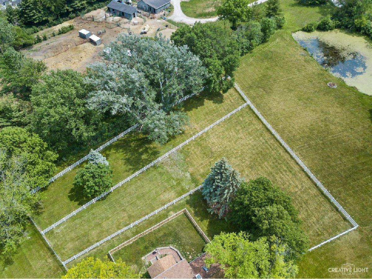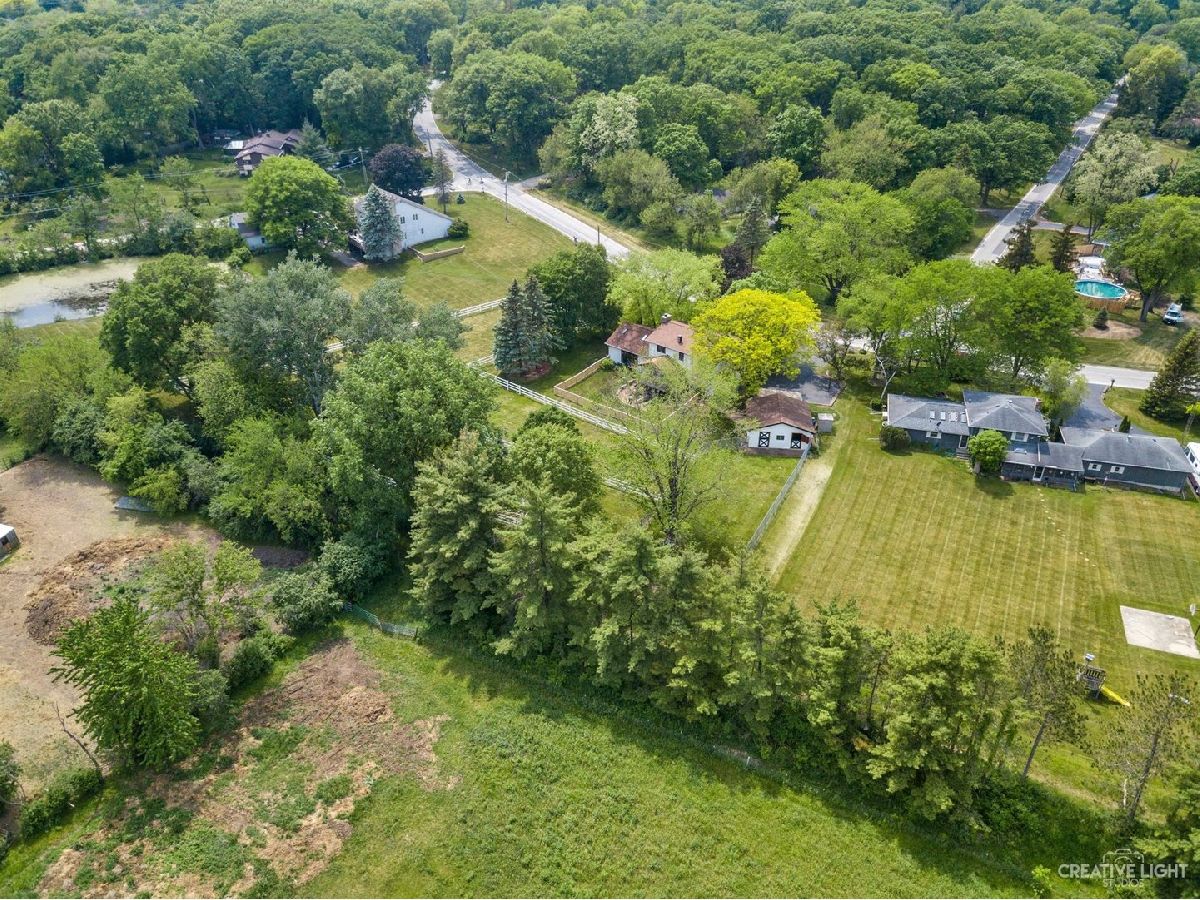 Welcome Home! Lovely 4 Bedroom Home. Great Entertaining Room with Two Sided Stone Fireplace, Solid Wood Beam Cathedral Ceiling, Skylights, Built-In Book Shelves, Full Bar, Gaming Space & Family Lounging Area. Solid Custom Oak Wood Cabinets, Corian Counters, Under Cabinet Lighting. Kitchen also Includes Eating Island Bar, Walk-In Pantry, Garden Window to Grow your Herbs & Great Views. Separate Dining Room for Large Family Gatherings. Spacious Enclosed Porch w/Ceiling Fan; Great for Entertaining and Enjoying Nature! All Bedrooms have Hardwood Floors. Master Bedroom has Walk-In Closet for Her and 2nd Closet for Him. Very Well Maintained Home; Whole House Fan. Full Walkout Unfinished Basement w/ Covered Patio. Barn is 24' x 24'. 2 Brand new stalls 12' x 12'. Can be a 12' x 24' birthing stall. 2 separate pastures. 2 external gates. Beautiful views of the entire fenced pastures from the kitchen or your deck. 1.41 Wooded Acres, 80'x40' Fenced Area w/6 Foot High Fence. New Close to Metra, Expressways & Shopping.