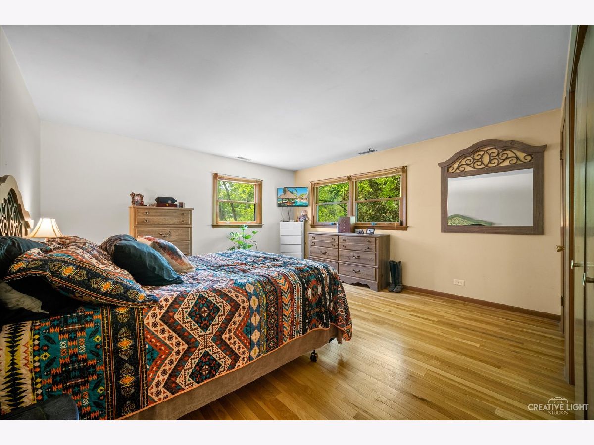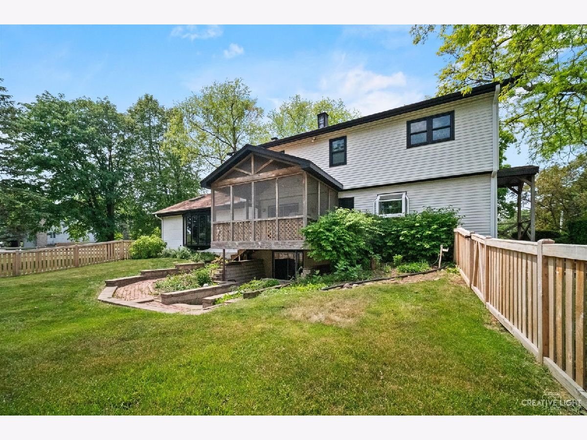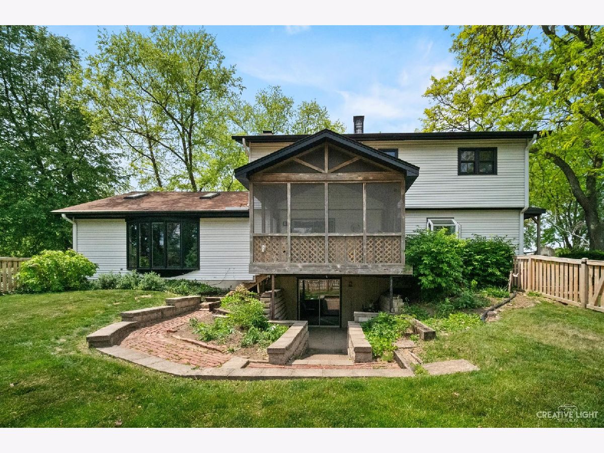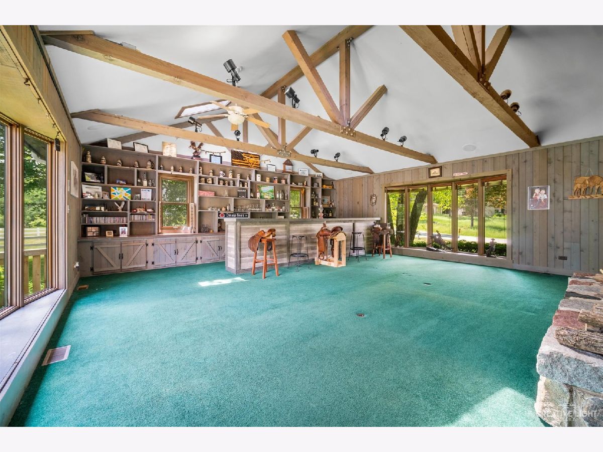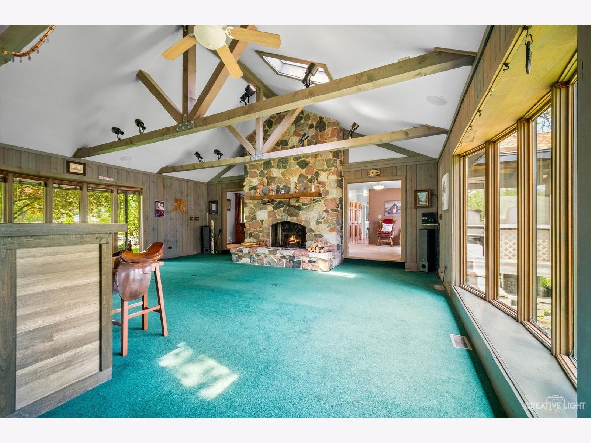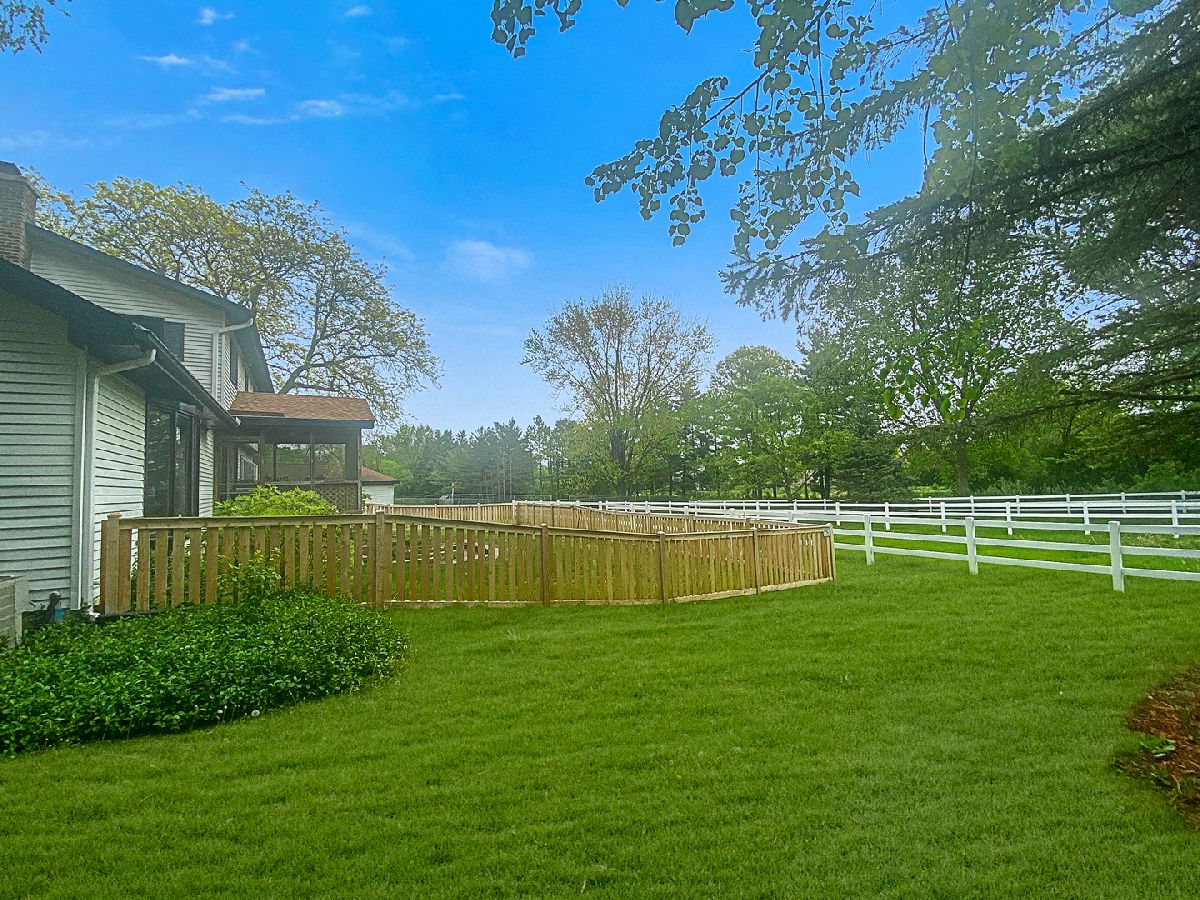 Welcome Home! Lovely 4 Bedroom Home. Great Entertaining Room with Two Sided Stone Fireplace, Solid Wood Beam Cathedral Ceiling, Skylights, Built-In Book Shelves, Full Bar, Gaming Space & Family Lounging Area. Solid Custom Oak Wood Cabinets, Corian Counters, Under Cabinet Lighting. Kitchen also Includes Eating Island Bar, Walk-In Pantry, Garden Window to Grow your Herbs & Great Views. Separate Dining Room for Large Family Gatherings. Spacious Enclosed Porch w/Ceiling Fan; Great for Entertaining and Enjoying Nature! All Bedrooms have Hardwood Floors. Master Bedroom has Walk-In Closet for Her and 2nd Closet for Him. Very Well Maintained Home; Whole House Fan. Full Walkout Unfinished Basement w/ Covered Patio. Barn is 24' x 24'. 2 Brand new stalls 12' x 12'. Can be a 12' x 24' birthing stall. 2 separate pastures. 2 external gates. Beautiful views of the entire fenced pastures from the kitchen or your deck. 1.41 Wooded Acres, 80'x40' Fenced Area w/6 Foot High Fence. New Close to Metra, Expressways & Shopping.