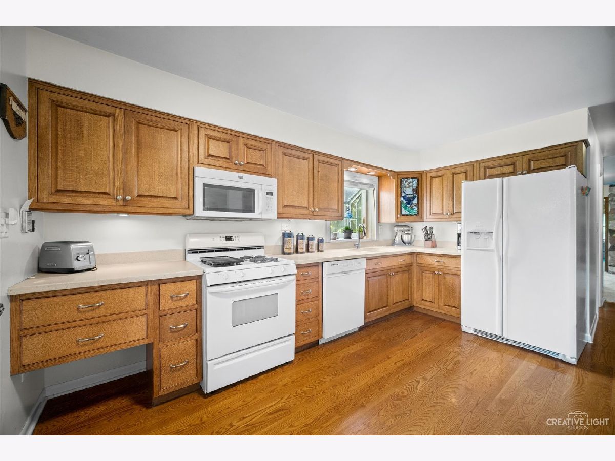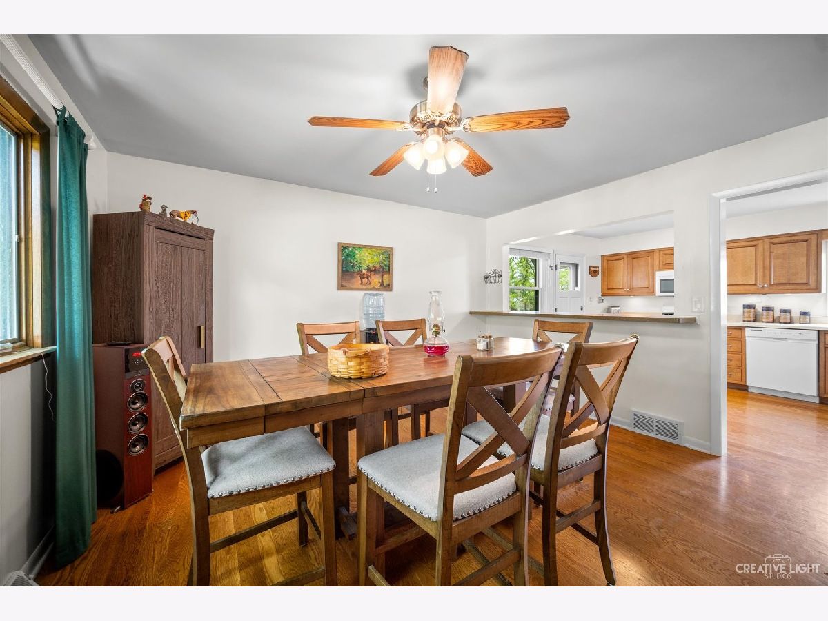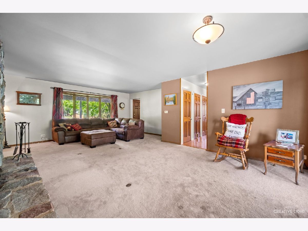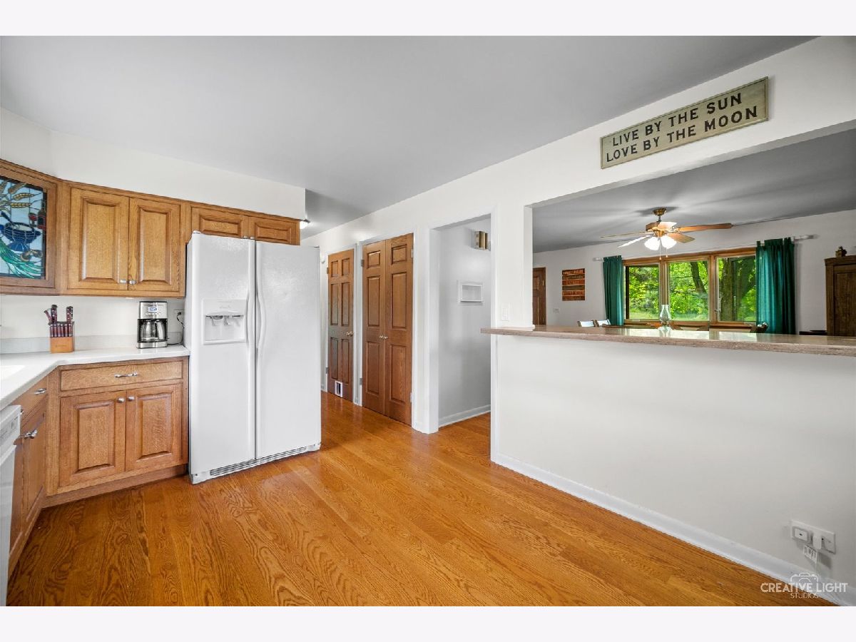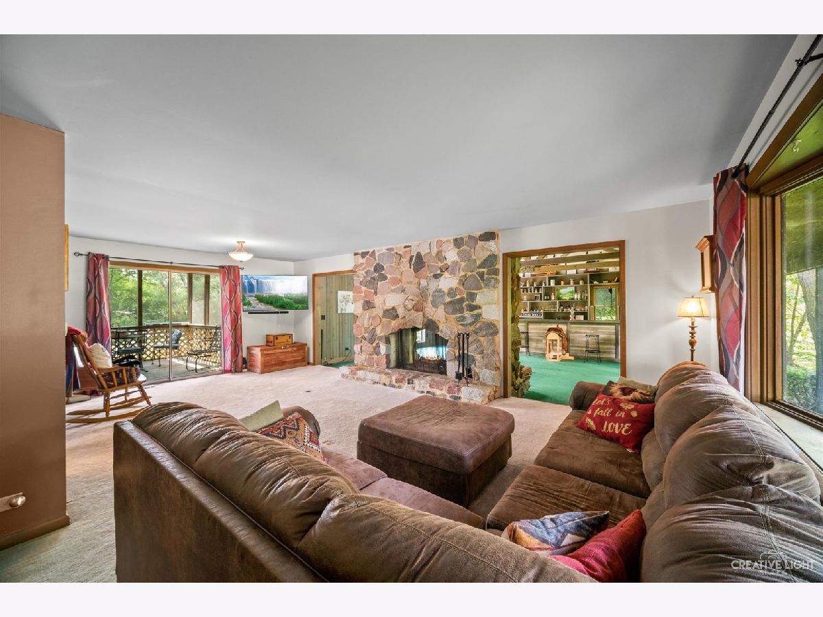 Welcome Home! Lovely 4 Bedroom Home. Great Entertaining Room with Two Sided Stone Fireplace, Solid Wood Beam Cathedral Ceiling, Skylights, Built-In Book Shelves, Full Bar, Gaming Space & Family Lounging Area. Solid Custom Oak Wood Cabinets, Corian Counters, Under Cabinet Lighting. Kitchen also Includes Eating Island Bar, Walk-In Pantry, Garden Window to Grow your Herbs & Great Views. Separate Dining Room for Large Family Gatherings. Spacious Enclosed Porch w/Ceiling Fan; Great for Entertaining and Enjoying Nature! All Bedrooms have Hardwood Floors. Master Bedroom has Walk-In Closet for Her and 2nd Closet for Him. Very Well Maintained Home; Whole House Fan. Full Walkout Unfinished Basement w/ Covered Patio. Barn is 24' x 24'. 2 Brand new stalls 12' x 12'. Can be a 12' x 24' birthing stall. 2 separate pastures. 2 external gates. Beautiful views of the entire fenced pastures from the kitchen or your deck. 1.41 Wooded Acres, 80'x40' Fenced Area w/6 Foot High Fence. New Close to Metra, Expressways & Shopping.