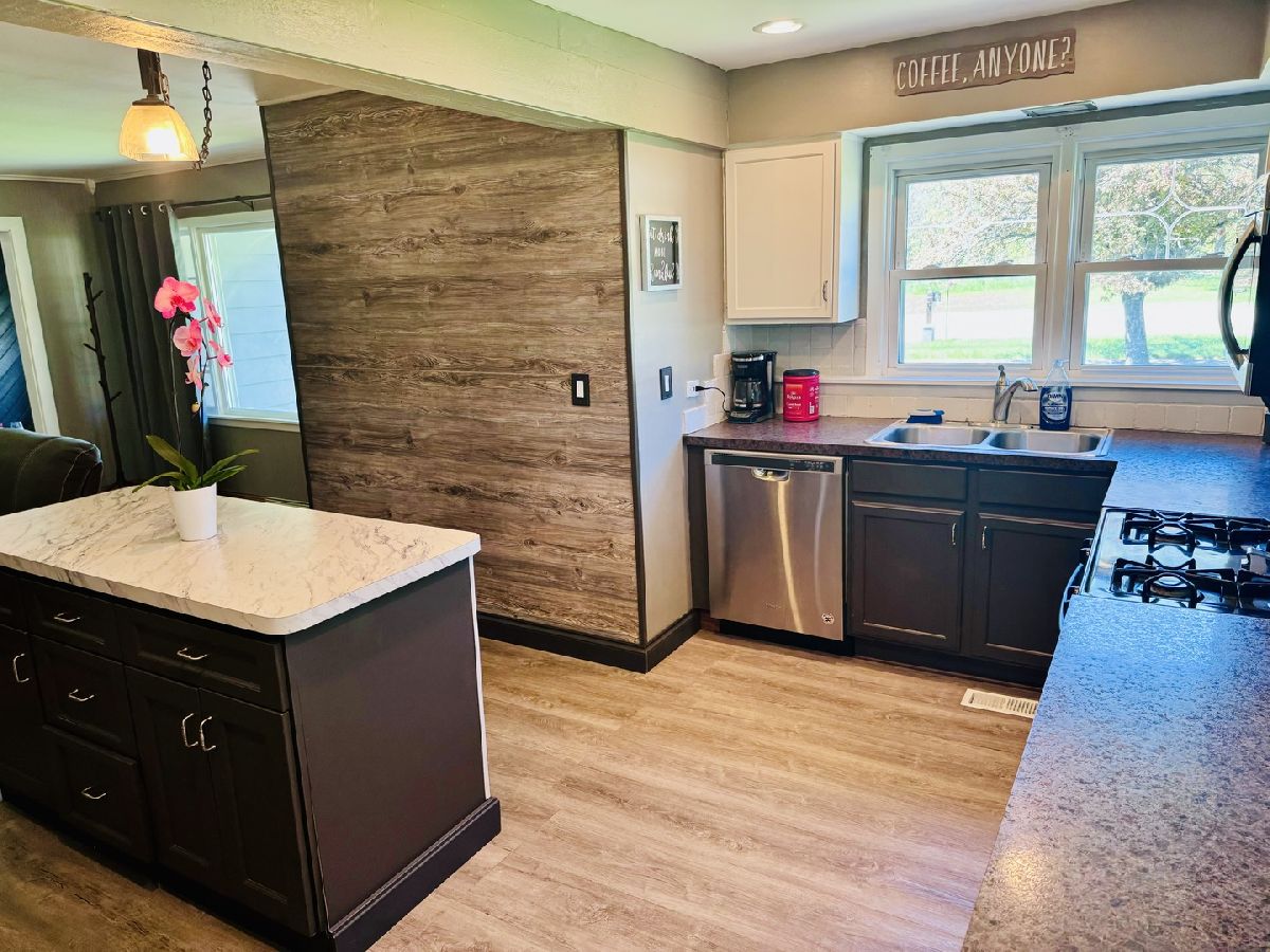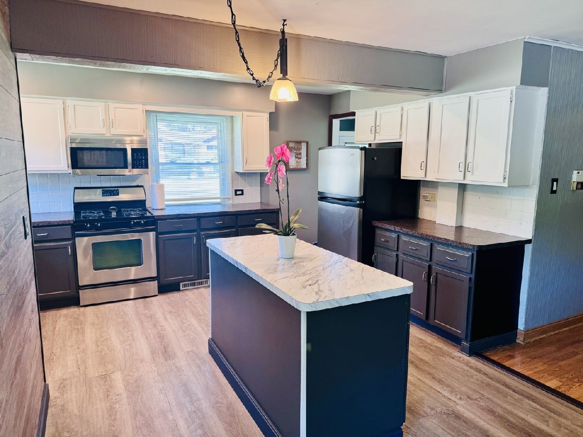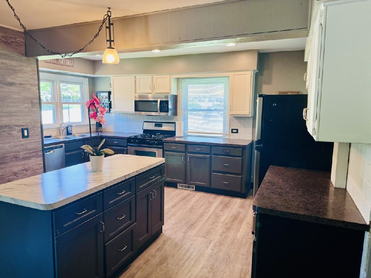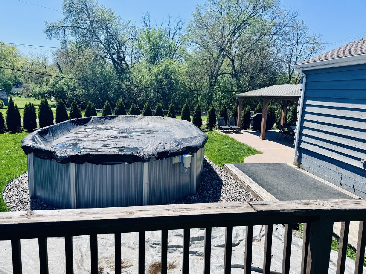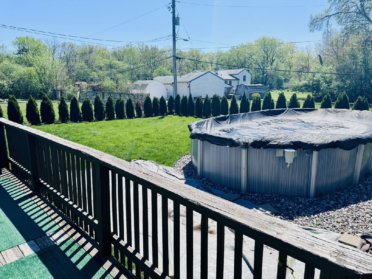 3 BEDROOMS ON 1ST FLOOR & 1 BEDROOM IN FULL FINISHED LOWER LEVEL THAT CAN BE A BEDROOM OR FITNESS ROOM, 2 BATHS, ABOVE GROUND POOL ON A LARGE LOT SURROUNDED BY EVERGREENS FOR ALL TYPES OF ACTIVITIES AND GET-TOGETHER EVENTS, FENCED IN YARD AND GAZEBO WITH PRIVACY SCREENS. KITCHEN WITH ISLAND, KITCHEN CABINETS, APPLIANCES, AND WOOD LAMINATE FLOOR THAT LEADS TO A LIVING ROOM WITH LAMINATE FLOOR & ACCESS TO BACKYARD & DECK. 2ND BATHROOM WAS JUST RENOVATED WITH NEW VINYL FLOOR, FRESHLY PAINTED, NEW SHOWER ENCLOSURE, AND STORAGE SHELVING. DINING ROOM WAS FRESHLY PAINTED & WITH WOOD BURNING FIREPLACE & ACCESS TO 2.5 GARAGE. ADDITION TO LOWER LEVEL'S BEDROOM/WORKOUT ROOM THERE ARE LAUNDRY ROOM, RECREATION ROOM, FAMILY ROOM & FURNACE ROOM. STAIRCASE LEADING TO BASEMENT HAS NEW CARPETING. NEWER VINYL FENCE IN FRONT OF HOME NEXT TO GARAGE.