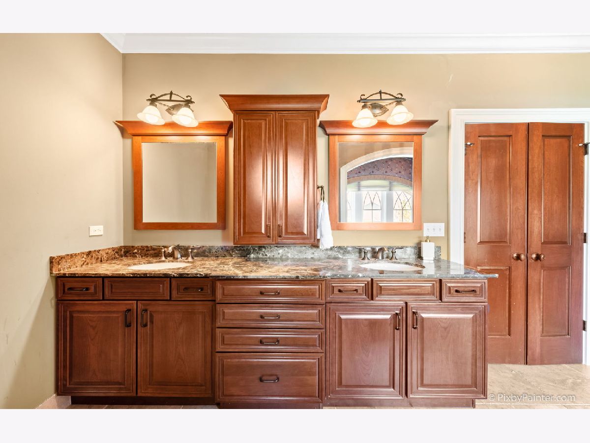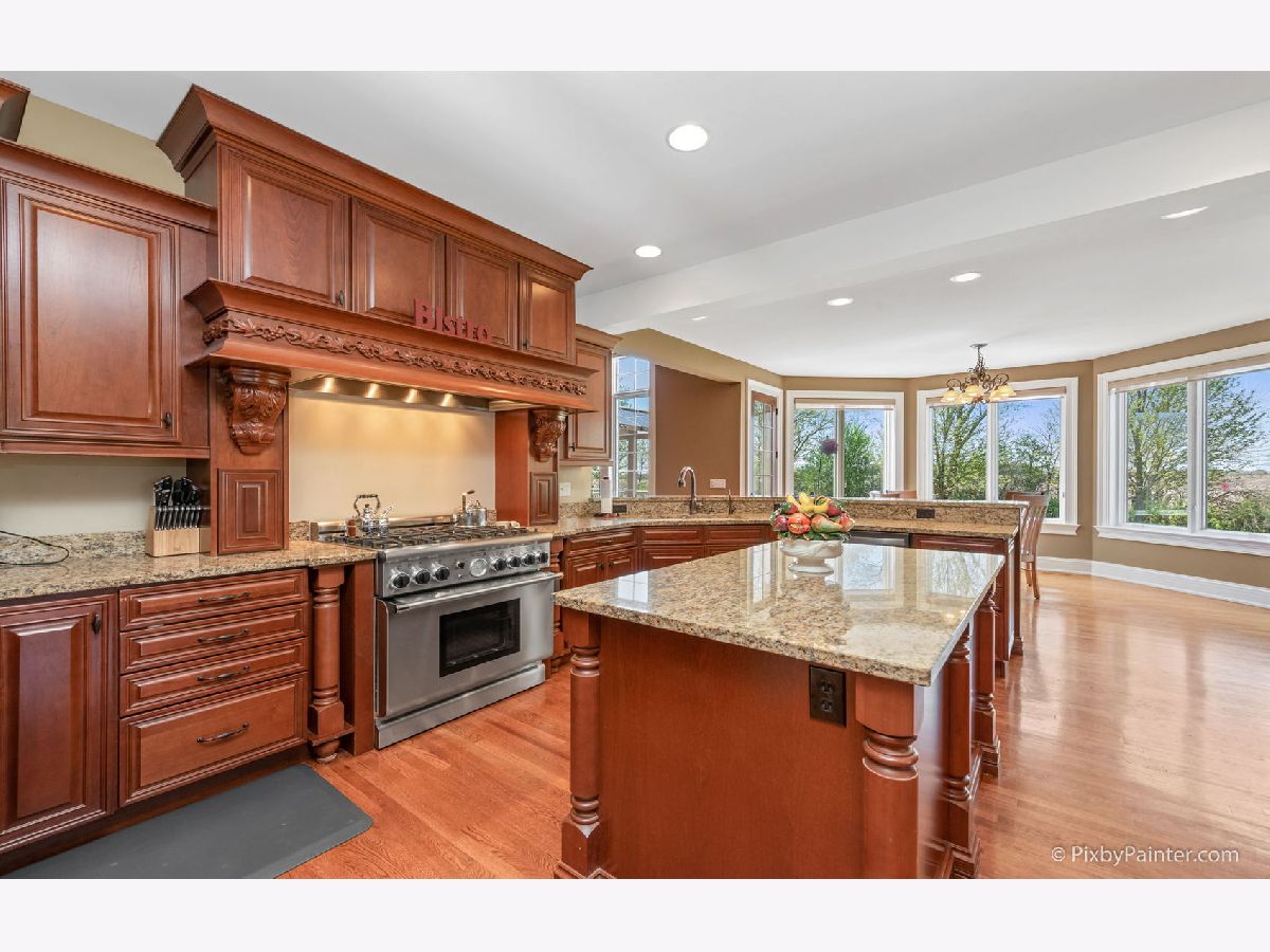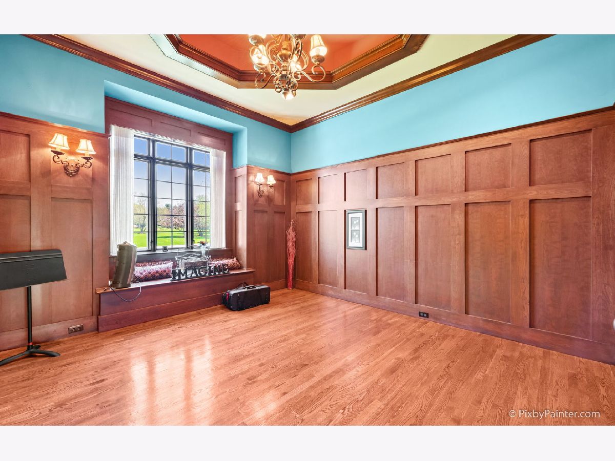 From the moment you walk in you will appreciate the beauty of this custom built home! Stunning millwork throughout and gorgeous hardwood floors on the main level. Vaulted entry leads to dual front rooms which can be used as an office, dining room, or any purpose you imagine. One has beautiful dark extended wainscotting, crown molding and a tray ceiling. The other boasts white wainscotting, along with crown molding and an insert. Gourmet kitchen with Thermador appliances, granite counters and cherry cabinets. Large pantry. Separate eat-in area leads to an inviting four season room, from where you can admire the professionally landscaped 2.8 acre lot. Butlers pantry for entertaining. Huge family room with large windows, coffered ceiling and a custom wood and stone fireplace. First floor master suite with tray ceiling, double crown molding, and dual walk in closets. Relax in the spa like master bath. Upstairs are three additional generous bedrooms, with two sharing a jack and jill bath. There is also a large bonus media room with hardwood floors, which could be used as another bedroom. Walk in attic access from the second floor. Unbelievable 2200 square foot basement with exercise room, office, kitchenette, full bath, and space for any use you can imagine. Granite counters throughout, even in the first floor mud/ laundry room! Private yard, yet so close to town with St. Charles North High School! Space for an in-ground Pool on the north side of the lot! New reverse osmosis water system. High end security system can transfer to new owner. Well-maintained home is being sold "AS IS" AGENTS AND/OR PERSPECTIVE BUYERS EXPOSED TO COVID 19 OR WITH A COUGH OR FEVER ARE NOT TO ENTER THE HOME UNTIL THEY RECEIVE MEDICAL CLEARANCE. Please note that washer and dryer are negotiable.