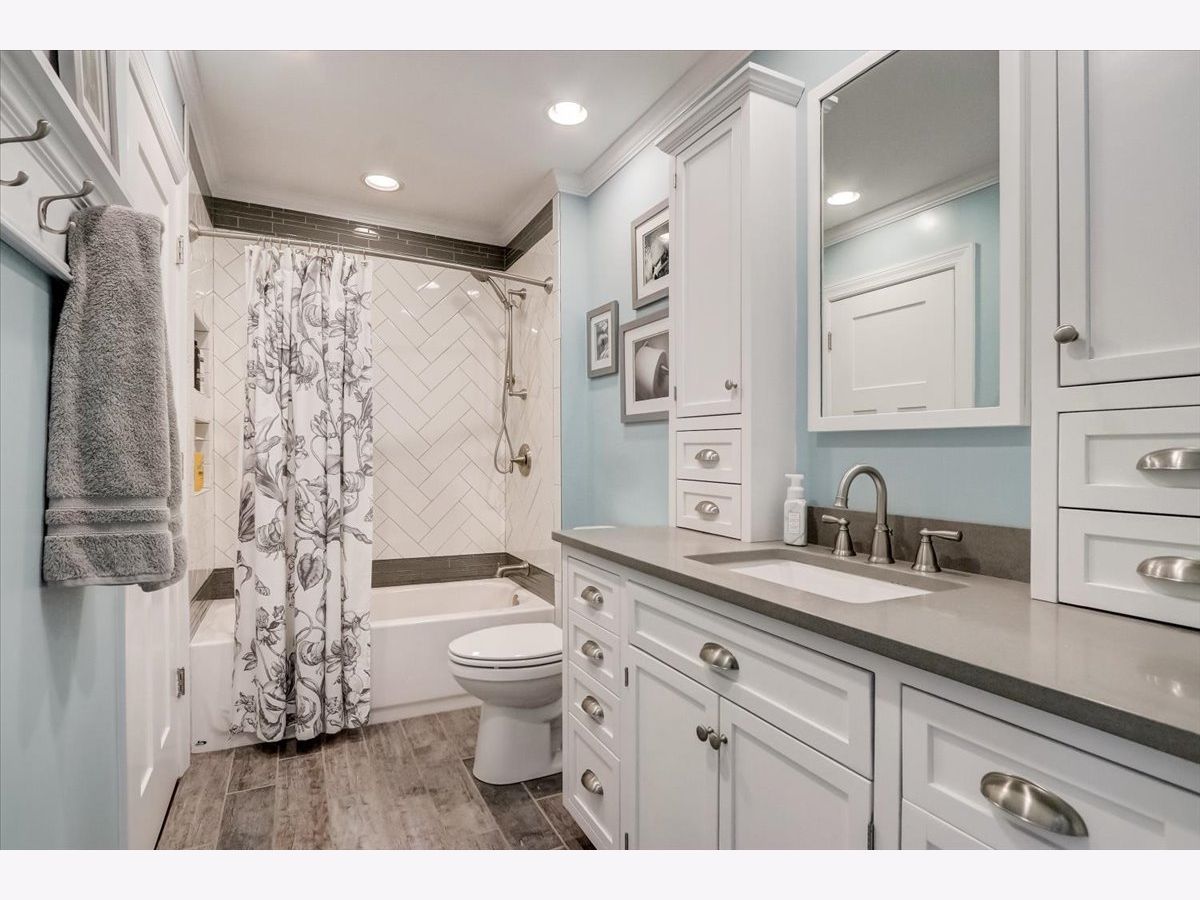 Multiple offers received: Highest & Best due 2/12 5pm, with decision on Monday due to Superbowl. Welcome to this stunningly renovated raised ranch in desirable Foxcroft, complete with amazing Foxcroft Lake Views! Everything has been redone from top to bottom. The exterior remodel gives this home a one of a kind custom feel from the welcoming decorative stone, new driveway, widened stamped stairs to the covered front door with operable sidelights. Shoes at the front door, no problem there's plenty of storage in the custom in-wall storage. The open concept, main floor features today's designer high end finishes that buyers crave. The gourmet expanded kitchen includes 42-inch white cabinets, with all the bells and whistles including a spacious island and newer appliances (2016). The dining room and living room are filled with light from the dual oversized sliders leading to your deck with stunning Foxcroft Lake & park views. The primary bedroom has a custom additional closet and access to the fabulous remodeled bathroom. The 2nd and 3rd bedroom feature custom built in closets. They thought of everything from the smart linen closet pullouts, hidden vacuum storage, can lighting and custom crown molding throughout! The lower level features a 4th bedroom, full bathroom, laundry room as well as a cozy family room. The family room is great for relaxing with a custom barn door, cozy stone gas log fireplace and wet bar for quiet nights in. The large slider takes you to your stamped patio, large fenced in backyard, and deck for the ultimate outdoor entertaining space. What else can you ask for in this rarely available, tastefully rehabbed, raised ranch in Glenbard South School District? What a perfect location, close to I-355, Butterfield & Roosevelt and walking distance to desirable schools, and neighborhood parks. All dates are listed under other documents in the MLS.