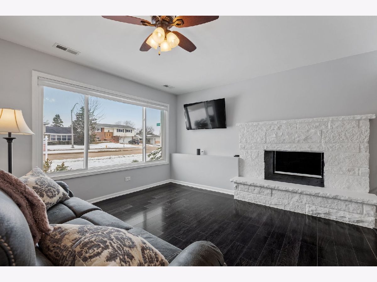 Look no further! This lovely fully updated all brick ranch sits on a large corner lot. The entire home has been updated throughout recent years. Fall in love the moment you walk into your new home and see the open floor plan and all the natural light that pours in. The kitchen is perfect for the home chef with endless amounts of granite countertops, 42" cherry cabinets, and brand new Black Stainless appliances. Enjoy island seating or in the dining area. Enjoy sitting around the beautiful two-sided natural wood-burning fireplace in the center of this home. The entire home has newer flooring. Wood laminate throughout with ceramic tile in the kitchen and carpet in the bedrooms. The entire home has been repainted. There is also white trim and 6 panel doors throughout. The roof, windows, furnace, and AC were replaced in 2013. There is a large 2.5 detached garage. Enjoy entertaining outdoors on the large deck. As if this home doesn't have enough to offer, it is centrally located near shopping, dining, schools, expressways, and the Metra. You need to see this home in person to fully experience the beauty!