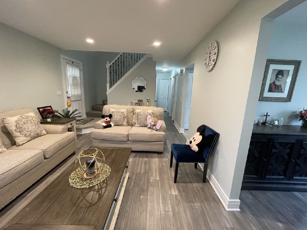 Immaculate Cottage model with totally remodeled in 2019. 4 huge bedrooms, 2 on 1st floor with full bathroom and 2 on second floor with full bathroom. Brand new windows, new carpet. New white kitchen cabinet with SS appliances new granite counter top. Separate dining room, New Engineered wood in living room, dining room and hallway, new ceramic tiles in kitchen floor and both bathrooms with granite tops,brand new doors and closet door, new can lights in living and family room which is one of the bedrooms down stairs that we used it as a family room.freshly painted. concrete driveway, close to all major expressways and shopping centers.Home Warranty. THIS IS A MUST SEE HOME! Kitchen fan is not included! BUYER COULDN'T HAVE THE LOAN APPROVED. THE WORST COMPANY THAT I WOULDN'T RECOMEND IT TO ANYONE!