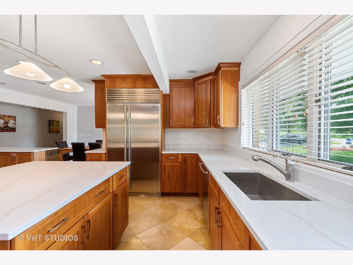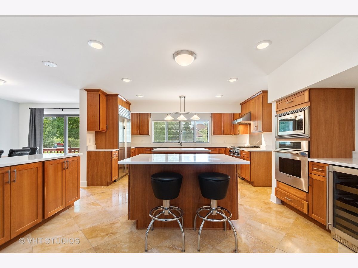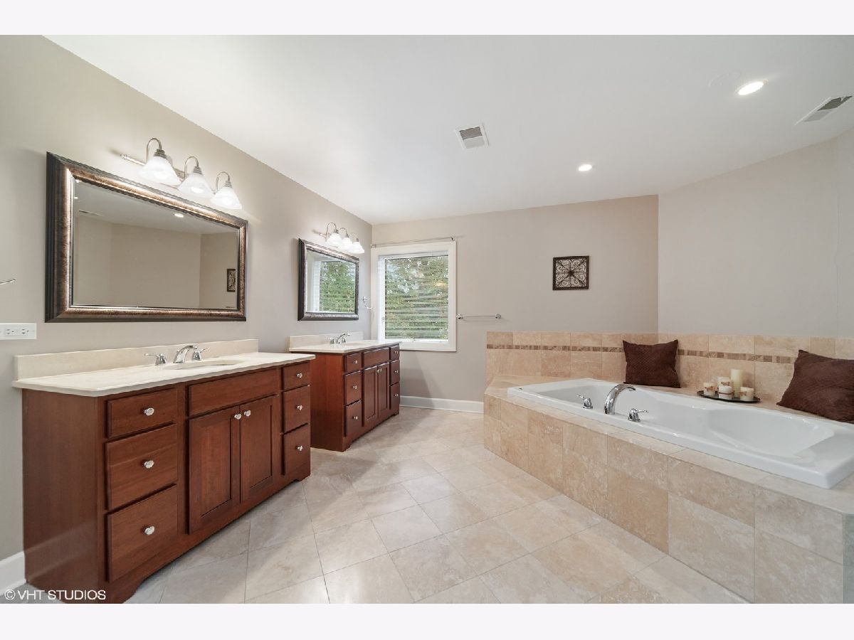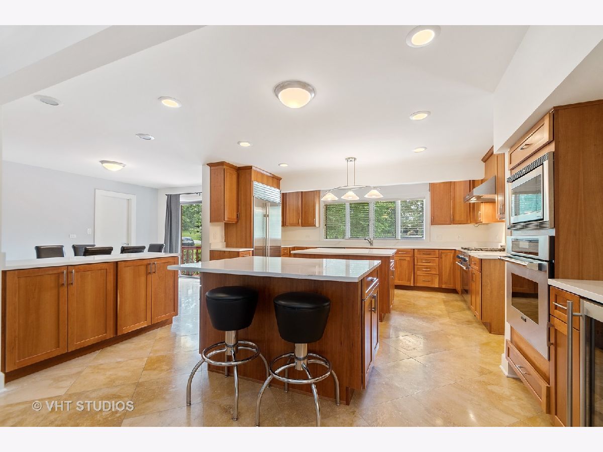 A prized cul-de-sac neighborhood "On the Park" this sprawling 6 bedroom and 4.2 bathroom " Estate Home" on wooded 1-acre lot. This 6700 square foot home features a chef's kitchen with a breakfast/eat-in area, separate dining, 42" American Cherry cabinetry, double islands, BRAND NEW 1.25" straight edge quartz counters with grey veining, stainless steel SubZero, Thermador double oven, range and microwave, Bosch dishwasher, wine fridge and walk-in pantry. A gracious foyer and a bi-lateral floor plan with Brazilian Cherry hardwood floors and 18'x18' travertine, three fireplaces, pitched wooded ceilings, rooms surrounded in glass, wrap around deck and large yard with half circle drive. First floor Au Pair suite with attached bath. Sumptuous master suite with his/hers walk in closets, bathroom with skylight, dressed in travertine, separate jacuzzi, large shower with frameless shower glass, dual heads and handheld. Jack and Jill bathrooms for pairs of ancillary bedrooms. Laundry room on bedroom floor. First floor office and finished lower level recreation room. NEW Dual zoned heating/cooling, two hot water heaters and roof. Four car attached garage. Located in Palos 118 district K-8 and "dual zone" 230 Sandburg/Stagg High Schools.