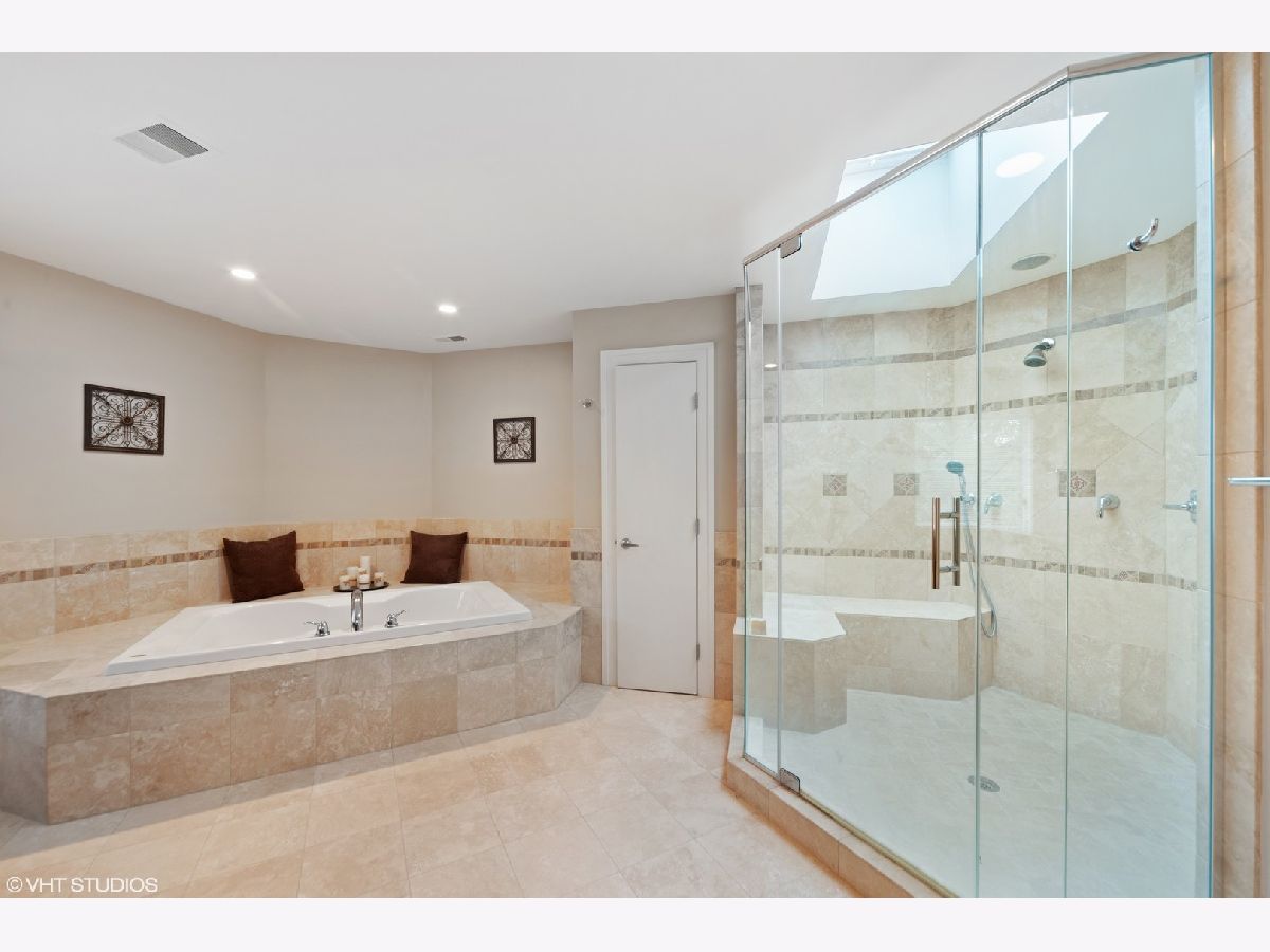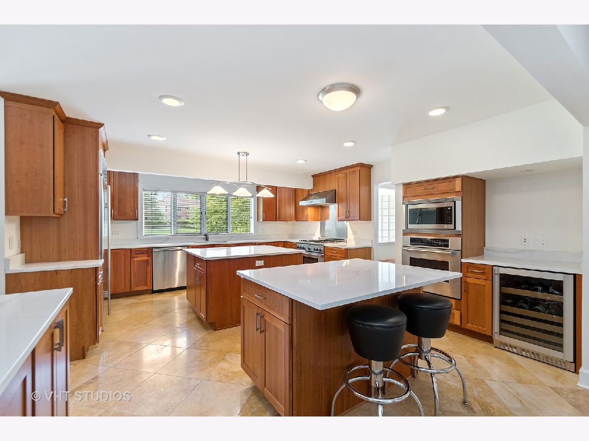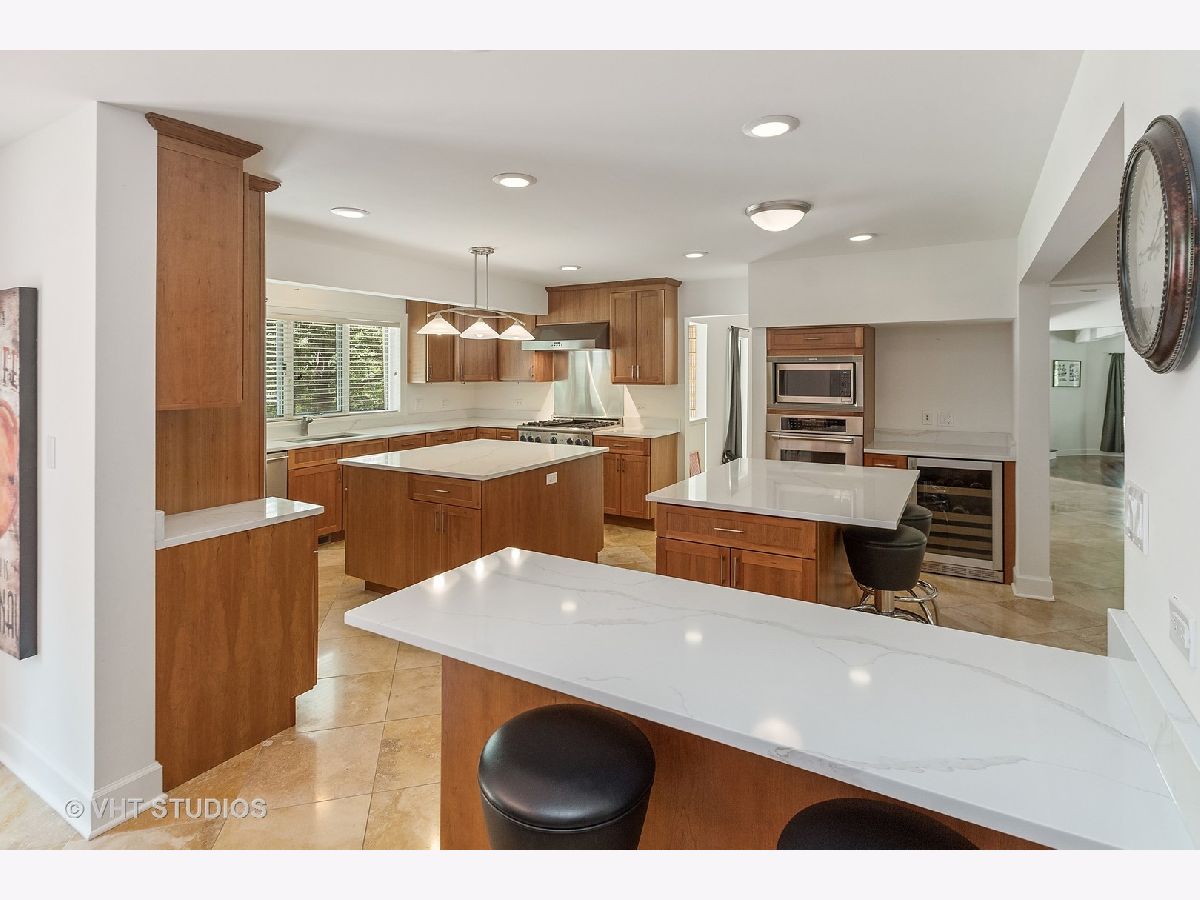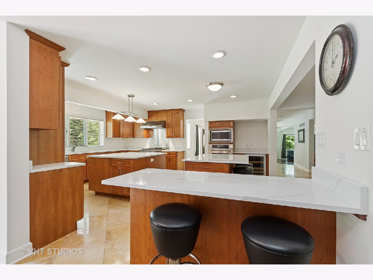 A prized cul-de-sac neighborhood "On the Park" this sprawling 6 bedroom and 4.2 bathroom " Estate Home" on wooded 1-acre lot. This 6700 square foot home features a chef's kitchen with a breakfast/eat-in area, separate dining, 42" American Cherry cabinetry, double islands, BRAND NEW 1.25" straight edge quartz counters with grey veining, stainless steel SubZero, Thermador double oven, range and microwave, Bosch dishwasher, wine fridge and walk-in pantry. A gracious foyer and a bi-lateral floor plan with Brazilian Cherry hardwood floors and 18'x18' travertine, three fireplaces, pitched wooded ceilings, rooms surrounded in glass, wrap around deck and large yard with half circle drive. First floor Au Pair suite with attached bath. Sumptuous master suite with his/hers walk in closets, bathroom with skylight, dressed in travertine, separate jacuzzi, large shower with frameless shower glass, dual heads and handheld. Jack and Jill bathrooms for pairs of ancillary bedrooms. Laundry room on bedroom floor. First floor office and finished lower level recreation room. NEW Dual zoned heating/cooling, two hot water heaters and roof. Four car attached garage. Located in Palos 118 district K-8 and "dual zone" 230 Sandburg/Stagg High Schools.