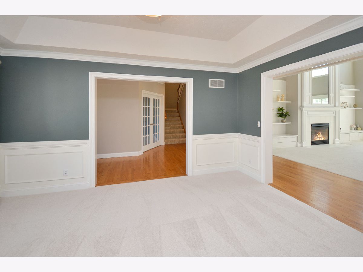 Prime cul-de-sac location in sought-after Hawthorne II with Unit 5 schools! This 5 bedroom, 4.5 bath home sits on a beautifully landscaped, oversized lot and offers an incredible blend of space, style, and updates. Step inside to a dramatic 2-story entry and a light-filled, open floor plan featuring a soaring family room with custom built-ins, gas fireplace, and expansive windows. The first-floor primary suite includes a spacious walk-in closet and luxurious en suite with dual vanities, jetted tub, separate shower, and water closet. The kitchen is designed for gathering with Corian countertops, large center island with seating, abundant cabinetry, pantry, and a wet bar. Main level also features a formal dining room and a flex room with French doors-perfect for an office or den. Upstairs, you'll find 3 large bedrooms and 2 full baths, including an additional en suite. The walkout lower level is fully finished with a large family room, rec room, 5th bedroom, and full bath. Enjoy outdoor living on the covered front porch, spacious deck, or walkout patio, surrounded by mature trees and professional landscaping. Additional highlights include: 3-car garage, central vac, plantation shutters, coffered and vaulted ceilings, built-ins, and triple crown molding. Recent updates: many new rear windows, deck painting, trim painting, main-level carpet, and refreshed carpet in basement/2nd floor. Mechanical updates include HVAC (2017), water heater (2016), Roof (2019) and deck (2017). Truly an exceptional home with timeless design that is ready to welcome its next owner!