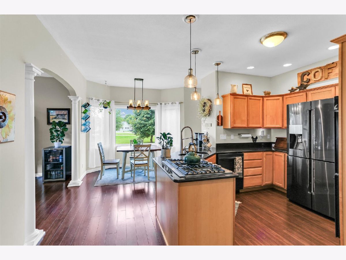 Stunning 5 bedroom Contemporary home in Monticello School District with French Provincial details, situated on a 1 acre lot on a cul-de-sac. Spacious 2,578 sq feet of space with high ceilings, 1st floor master bedroom with new tile in bathroom 2021. Grand living room opens to extensive 2-story deck system, new in 2023 with 'moisture shield' composite decking and aluminum handrails overlooking large backyard. Kitchen features newer GE double oven 2017, new Samsung smart dishwasher 2025, newer Samsung black stainless refrigerator 2017. Owners added Kitchenaide stainless steel 5 burner open gas cooktop 2017. Newer bamboo flooring 2016 in living room, kitchen and dining room. Walkout basement boasts newer carpet 2017, cozy theater room with speaker system, new Samsung smart washer & dryer 2025. Basement opens to sunken patio with retaining wall and lovely lattice system on the upper decking. Basement slider replaced 2023, main level slider 2022. Other interior items: new front door 2023, front half bath remodeled 2022, newer Navien 'on-demand' hot water system 2017. New tear-off roof 2016, whole-home Generac back-up generator system installed 2020, well-head replaced 2021 with 5-year warranty, high efficiency furnace. Home features extensive low maintenance landscaping, lighting and underground downspout drainage system 2024. Pavlov Hi-speed internet available. This home has obviously been well-maintained.