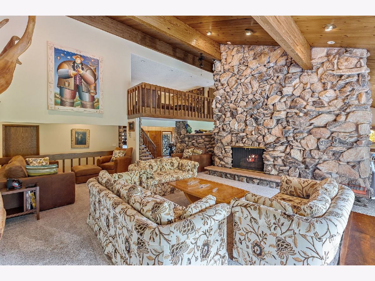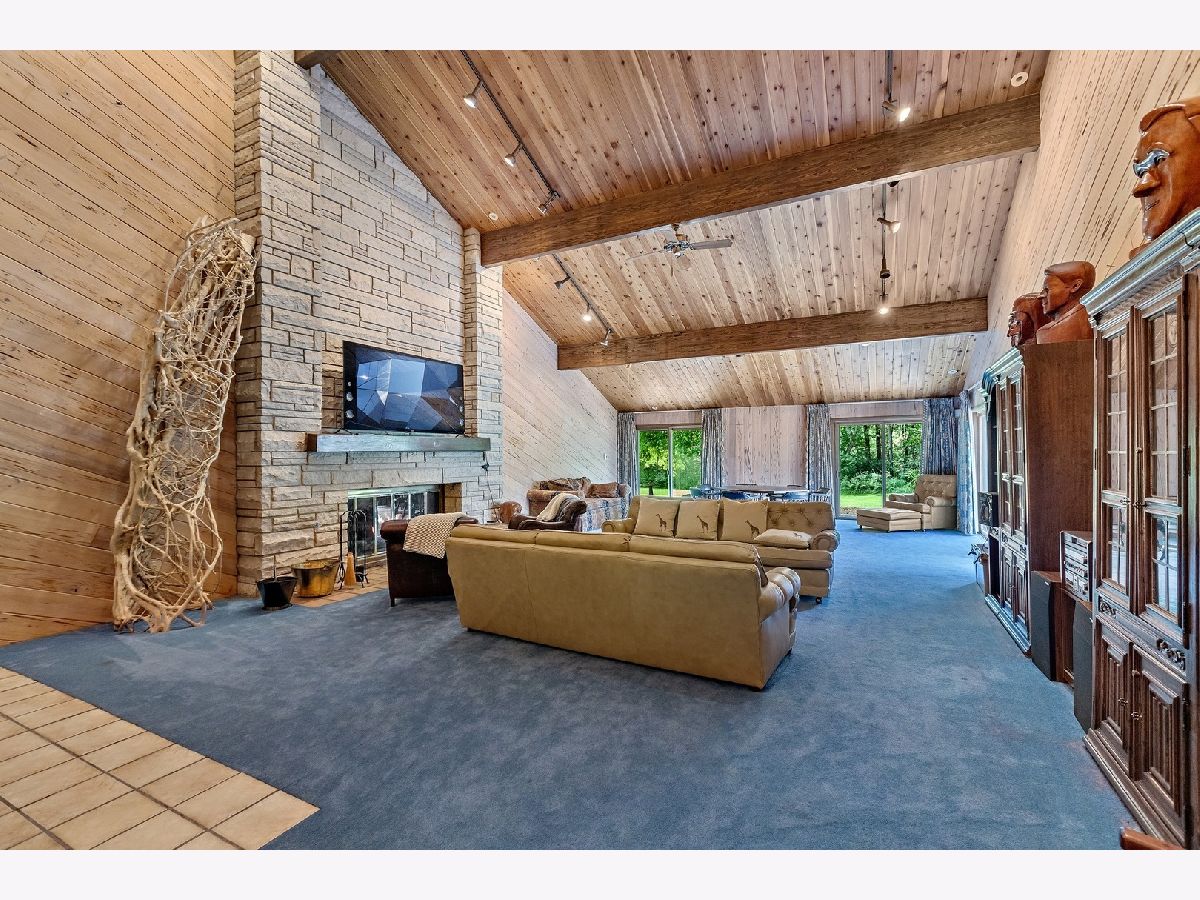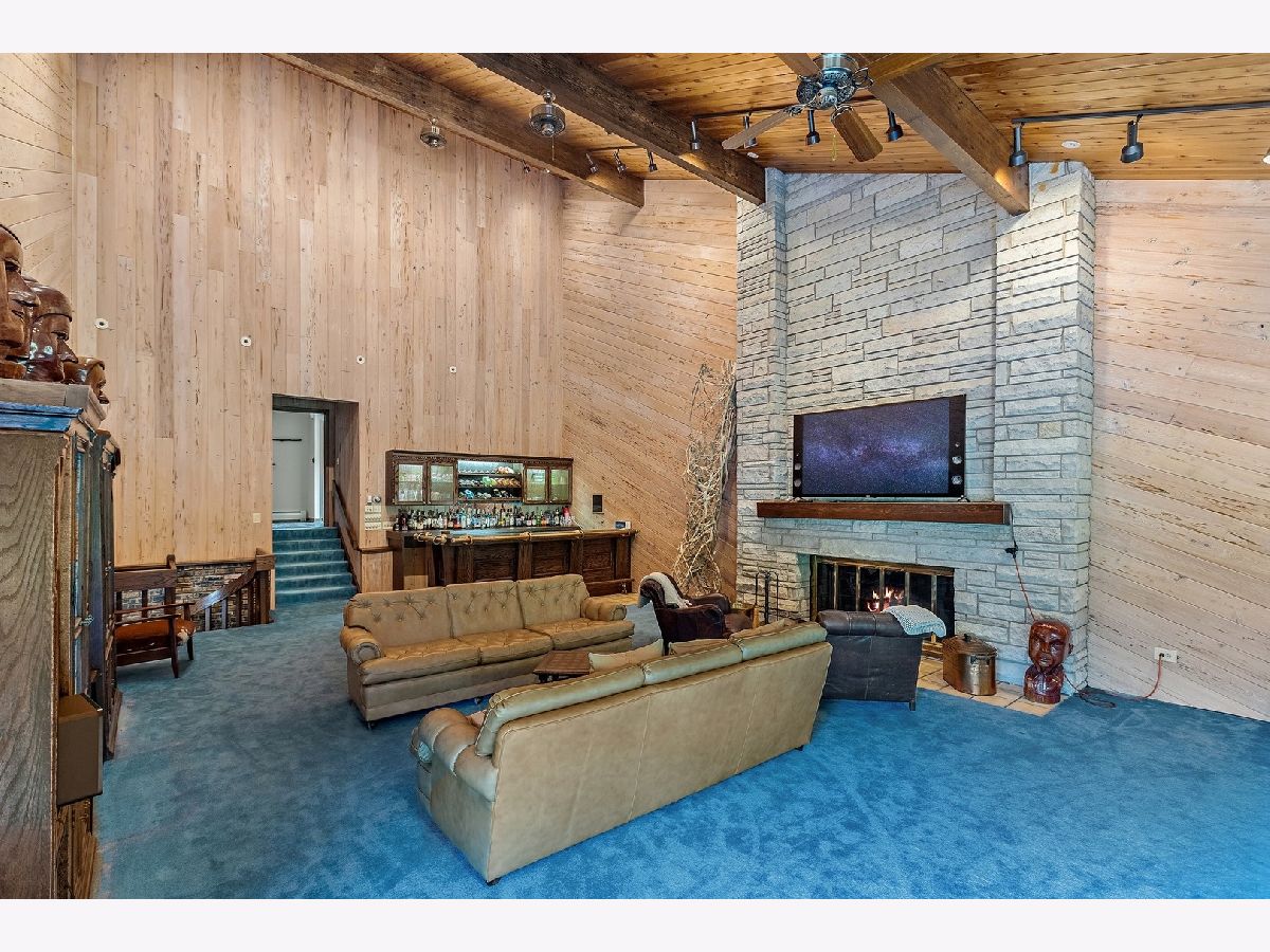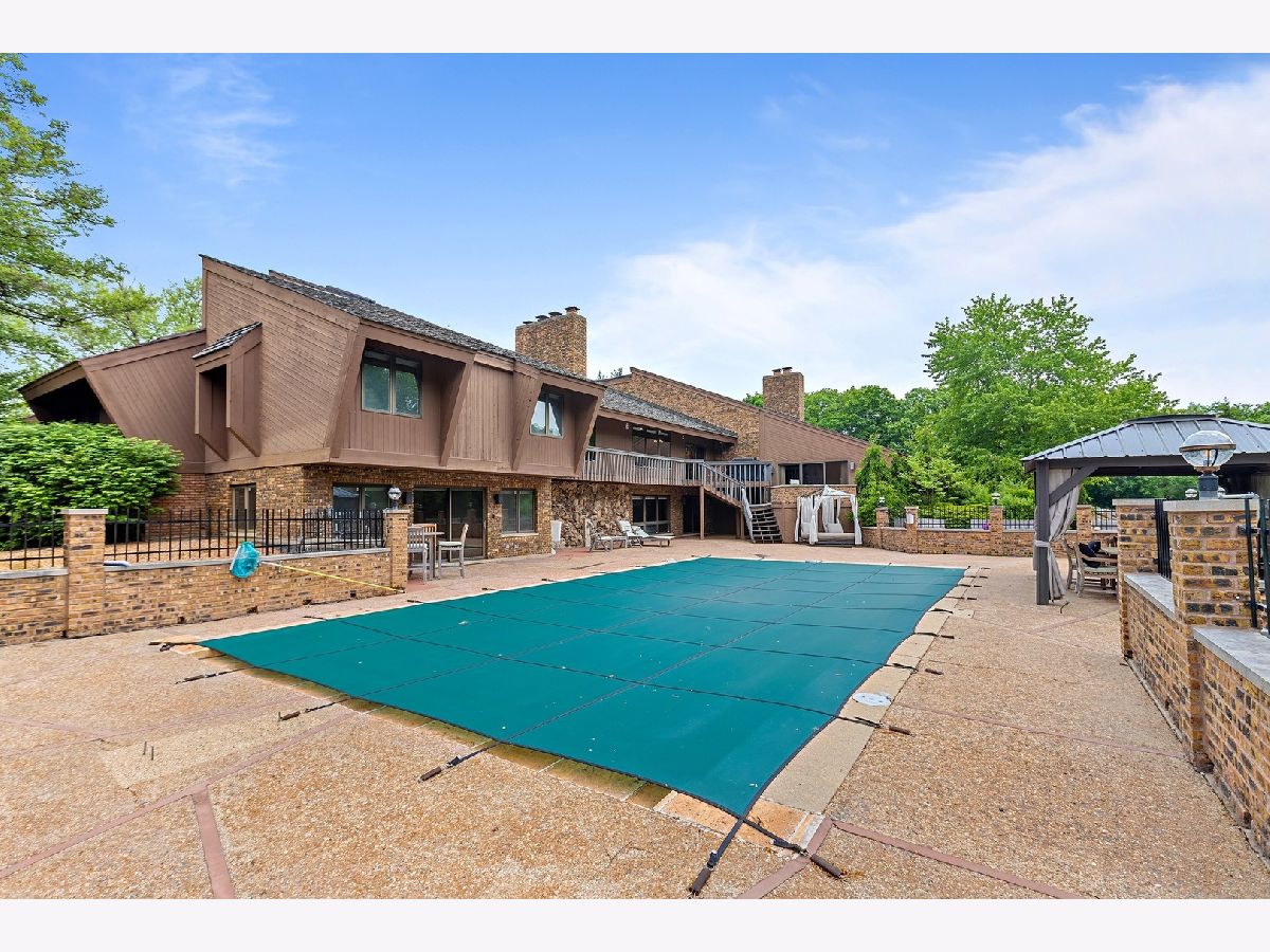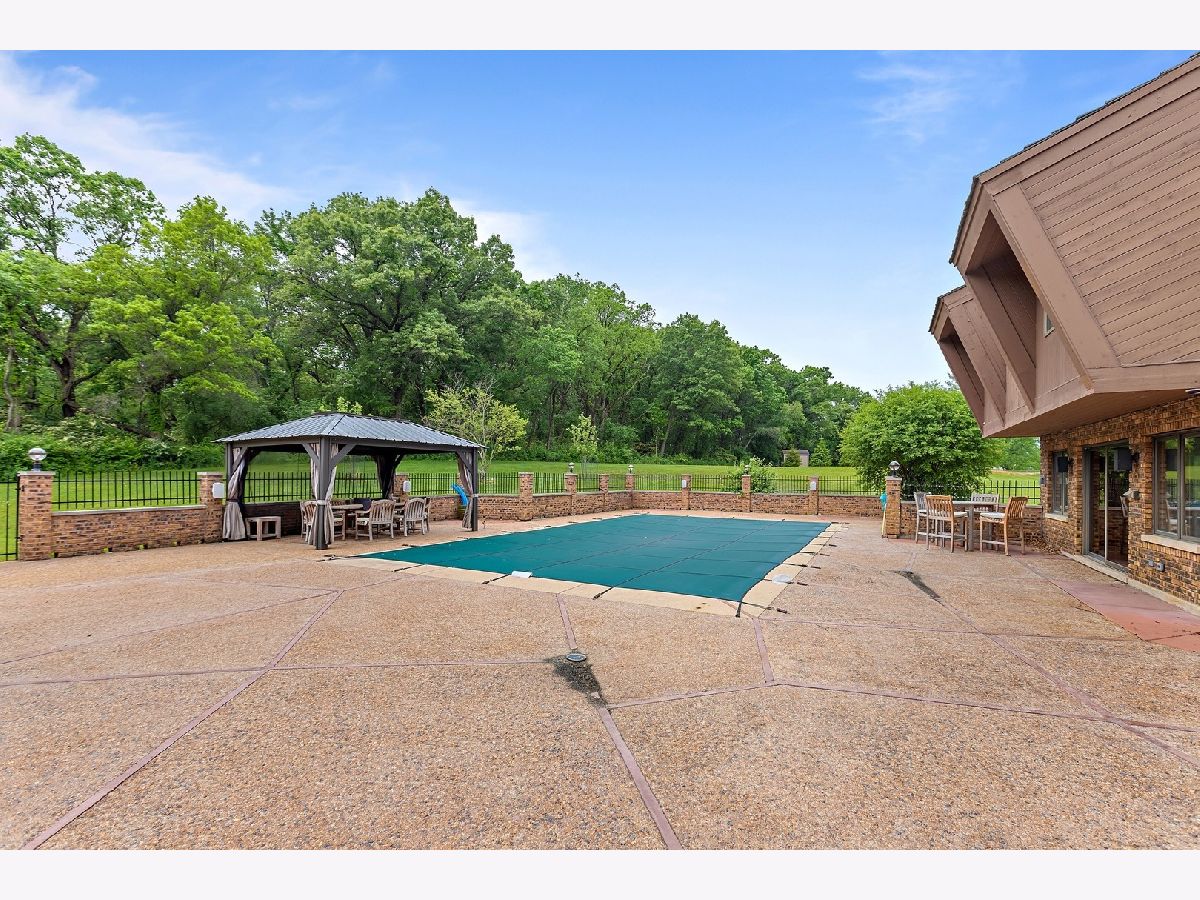 A rare opportunity to own an estate that offers over 3 acres of serene land that backs up to the lush forest preserve in the prestigious Equestrian Estates. This was the original developer of Equestrian Estates personal residence. Encompassing an impressive 7,500 square feet, this sun-drenched home is perfect for those who love to entertain, showcasing unmatched architectural details and amenities. Step inside to be greeted by unparalleled stone work, soaring vaulted ceilings, four grand fireplaces, and a spectacular great room complete with an elegant bar and a dramatic stone fireplace. This home has plenty of open living space, a large eat in kitchen and rooms for all to call home and relax. The expansive first floor primary suite provides a private retreat, complemented by a spacious loft and a very large bathroom. Fully finished ground level lower floor that seamlessly extends to an outdoor patio with an inviting in-ground pool. Indulge in radiant heated floors, a wine cellar ready to house an extensive collection, game rooms for pool and ping pong enthusiasts, a full gym, sauna, and spa. Additional highlights include updated lighting throughout, an oversized three-car garage with a fresh epoxy floor, central vacuum system, new boiler, 3 of 4 new AC spacepak systems, and a recently redone driveway plus an entire new roof. Outdoors, the property is enveloped in mature landscaping, creating a personal oasis perfect for relaxation or hosting gatherings. Situated on a quiet cul-de-sac, this hidden gem offers privacy and tranquility. The home has great bones and many updates, but can use some TLC on cosmetic finishes. The Equestrian Estates neighborhood is enriched by one of Illinois' oldest working farms and horse stables and is surrounded by an array of premier golf courses. Enjoy the balance of nature and convenience, with ample shopping and entertainment options just minutes away. ***Easy to show with notice, owner has two guard Doberman dogs agent will get out. ***