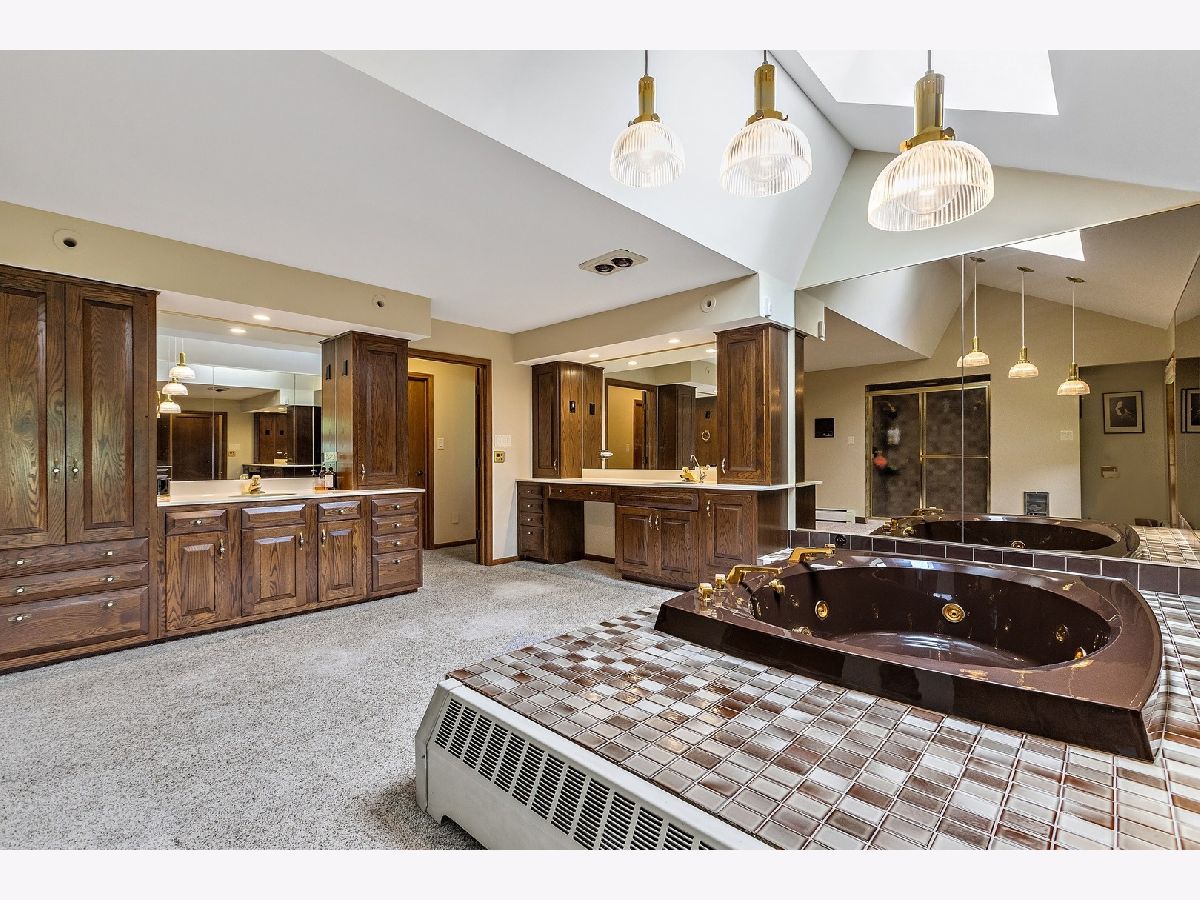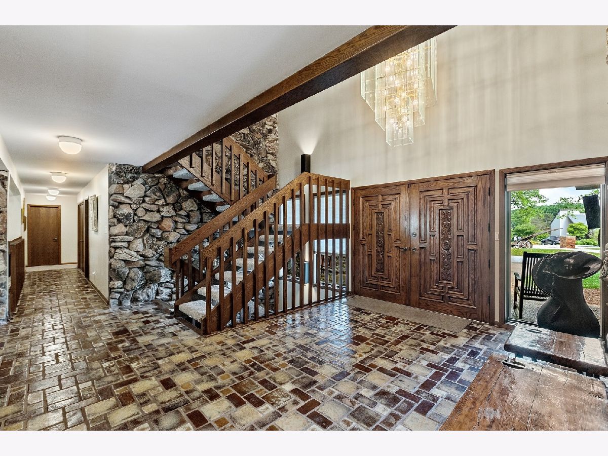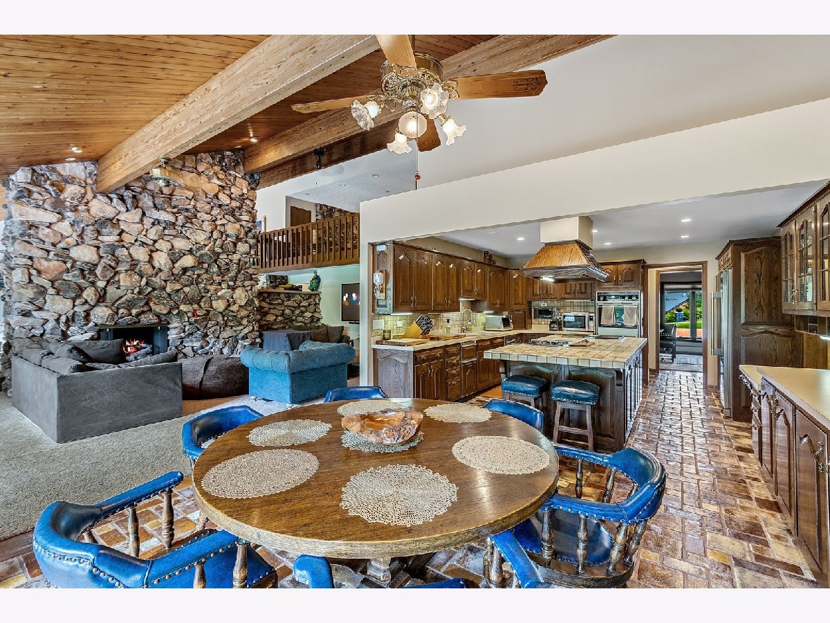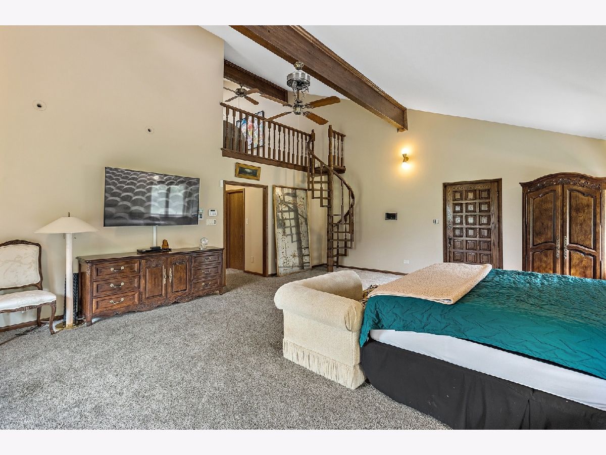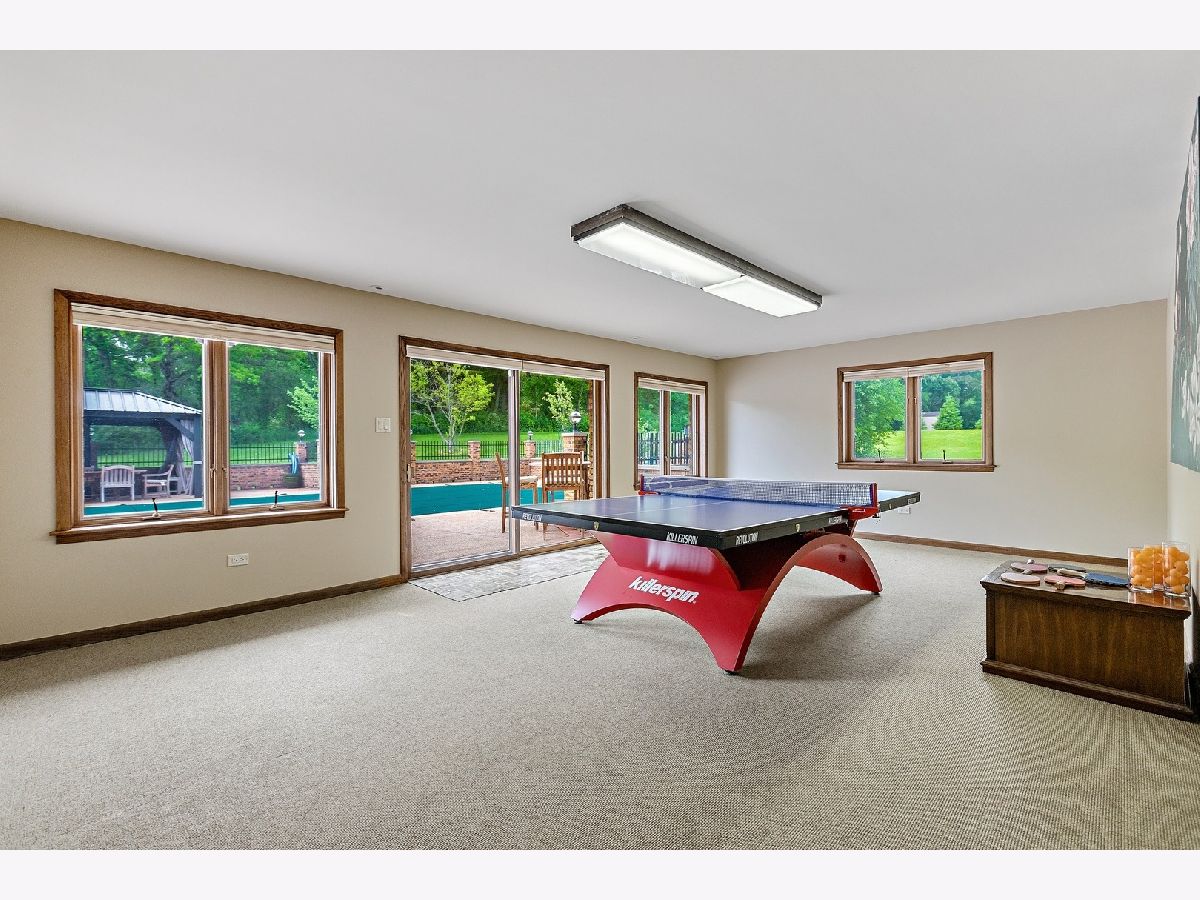 A rare opportunity to own an estate that offers over 3 acres of serene land that backs up to the lush forest preserve in the prestigious Equestrian Estates. This was the original developer of Equestrian Estates personal residence. Encompassing an impressive 7,500 square feet, this sun-drenched home is perfect for those who love to entertain, showcasing unmatched architectural details and amenities. Step inside to be greeted by unparalleled stone work, soaring vaulted ceilings, four grand fireplaces, and a spectacular great room complete with an elegant bar and a dramatic stone fireplace. This home has plenty of open living space, a large eat in kitchen and rooms for all to call home and relax. The expansive first floor primary suite provides a private retreat, complemented by a spacious loft and a very large bathroom. Fully finished ground level lower floor that seamlessly extends to an outdoor patio with an inviting in-ground pool. Indulge in radiant heated floors, a wine cellar ready to house an extensive collection, game rooms for pool and ping pong enthusiasts, a full gym, sauna, and spa. Additional highlights include updated lighting throughout, an oversized three-car garage with a fresh epoxy floor, central vacuum system, new boiler, 3 of 4 new AC spacepak systems, and a recently redone driveway plus an entire new roof. Outdoors, the property is enveloped in mature landscaping, creating a personal oasis perfect for relaxation or hosting gatherings. Situated on a quiet cul-de-sac, this hidden gem offers privacy and tranquility. The home has great bones and many updates, but can use some TLC on cosmetic finishes. The Equestrian Estates neighborhood is enriched by one of Illinois' oldest working farms and horse stables and is surrounded by an array of premier golf courses. Enjoy the balance of nature and convenience, with ample shopping and entertainment options just minutes away. ***Easy to show with notice, owner has two guard Doberman dogs agent will get out. ***