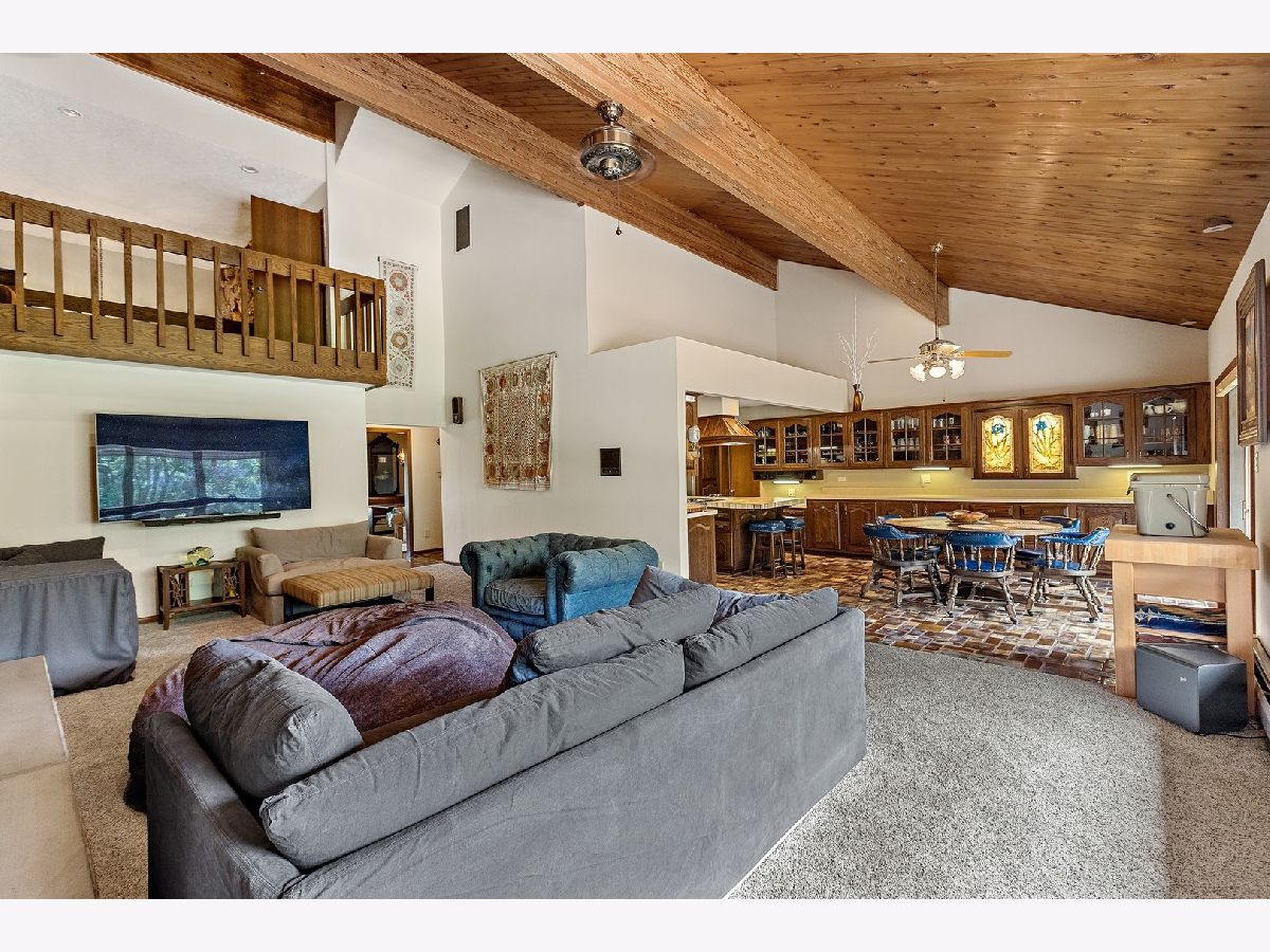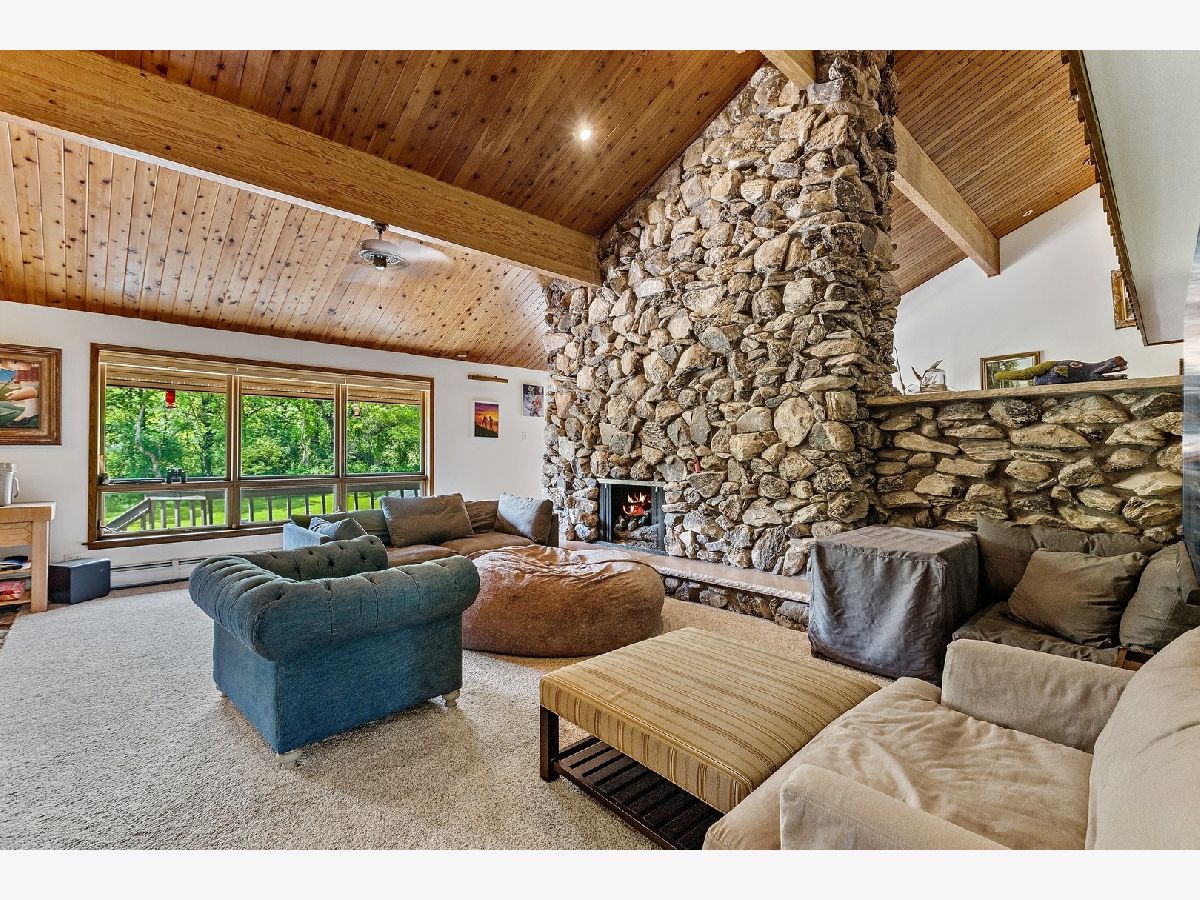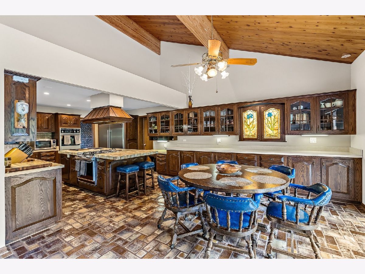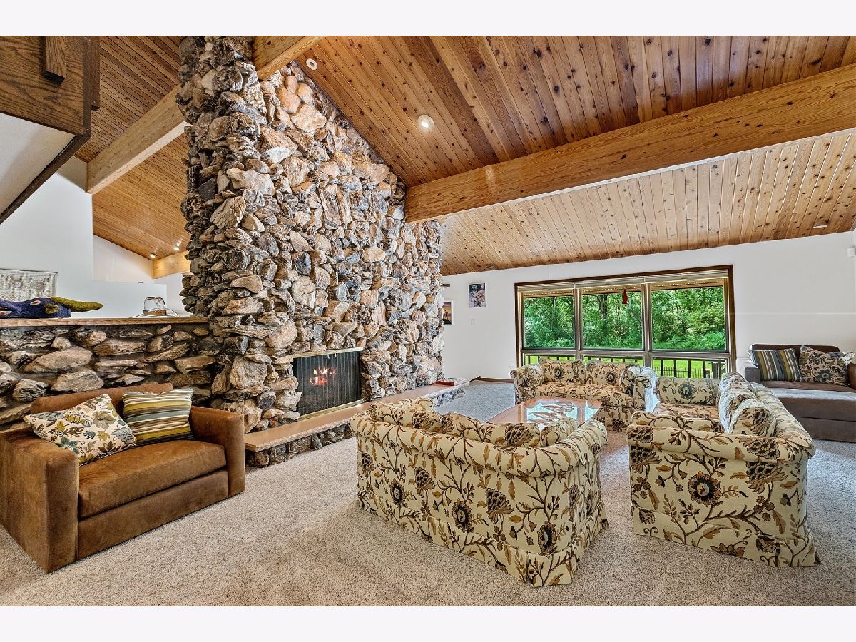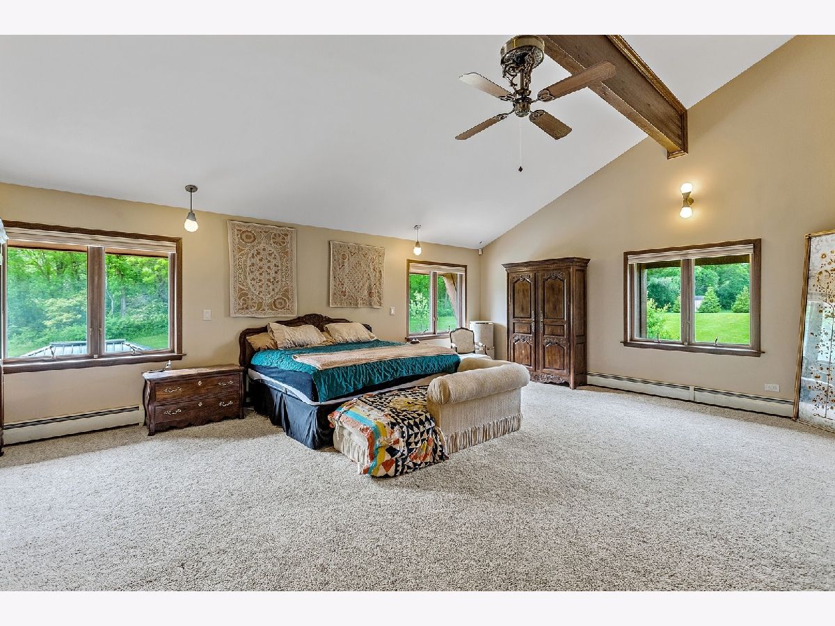 A rare opportunity to own an estate that offers over 3 acres of serene land that backs up to the lush forest preserve in the prestigious Equestrian Estates. This was the original developer of Equestrian Estates personal residence. Encompassing an impressive 7,500 square feet, this sun-drenched home is perfect for those who love to entertain, showcasing unmatched architectural details and amenities. Step inside to be greeted by unparalleled stone work, soaring vaulted ceilings, four grand fireplaces, and a spectacular great room complete with an elegant bar and a dramatic stone fireplace. This home has plenty of open living space, a large eat in kitchen and rooms for all to call home and relax. The expansive first floor primary suite provides a private retreat, complemented by a spacious loft and a very large bathroom. Fully finished ground level lower floor that seamlessly extends to an outdoor patio with an inviting in-ground pool. Indulge in radiant heated floors, a wine cellar ready to house an extensive collection, game rooms for pool and ping pong enthusiasts, a full gym, sauna, and spa. Additional highlights include updated lighting throughout, an oversized three-car garage with a fresh epoxy floor, central vacuum system, new boiler, 3 of 4 new AC spacepak systems, and a recently redone driveway plus an entire new roof. Outdoors, the property is enveloped in mature landscaping, creating a personal oasis perfect for relaxation or hosting gatherings. Situated on a quiet cul-de-sac, this hidden gem offers privacy and tranquility. The home has great bones and many updates, but can use some TLC on cosmetic finishes. The Equestrian Estates neighborhood is enriched by one of Illinois' oldest working farms and horse stables and is surrounded by an array of premier golf courses. Enjoy the balance of nature and convenience, with ample shopping and entertainment options just minutes away. ***Easy to show with notice, owner has two guard Doberman dogs agent will get out. ***