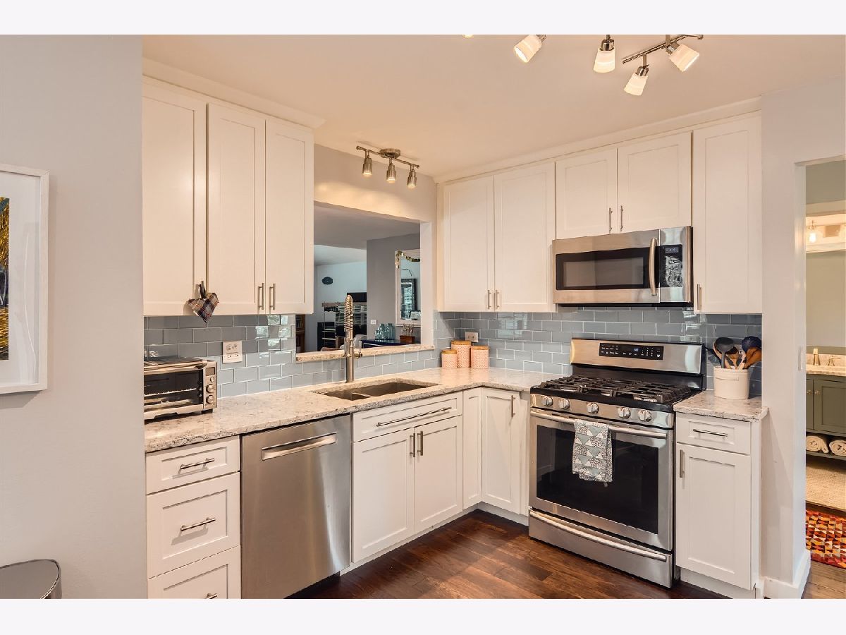 Check out this large 3 bedroom 2 bath second floor unit with attached garage. This spacious and bright unit is move in ready with many upgrades throughout. It features engineered hardwood floors in living, dinning area and kitchen. The living area has vaulted ceilings and beautiful large windows allowing plenty of natural light. The kitchen has stainless steel appliances and quartz countertops. The main bathroom has marble counter top and floors. The master bath has a gorgeous walk in shower with slate floors and quartz counter. The outdoor patio overlooks the beautiful Jefferson Park. There is ample closet space and a laundry room with full size washer and dryer. Don't miss this beauty with nothing left to do! Schedule your showing today!