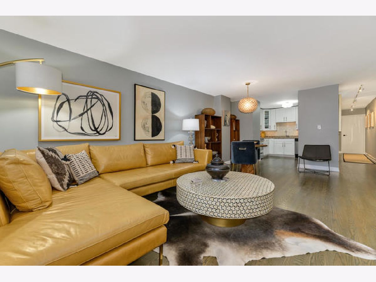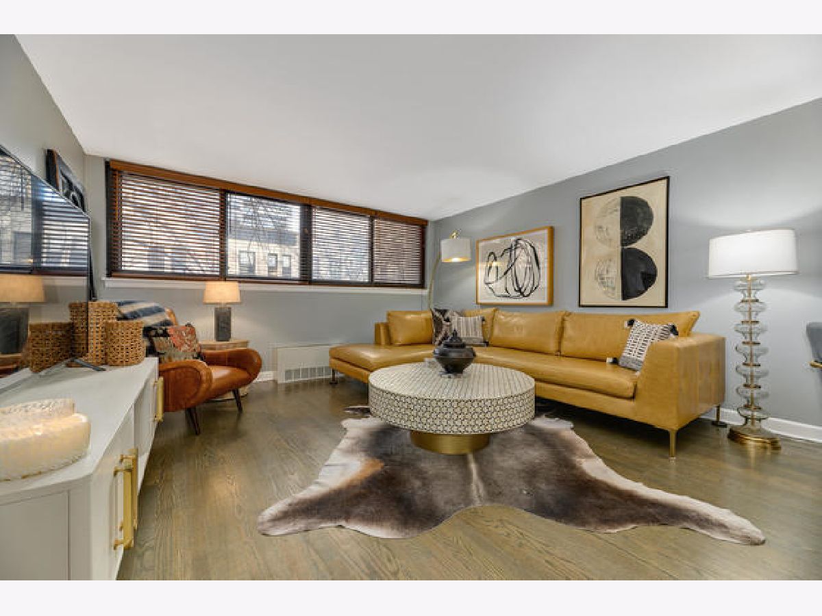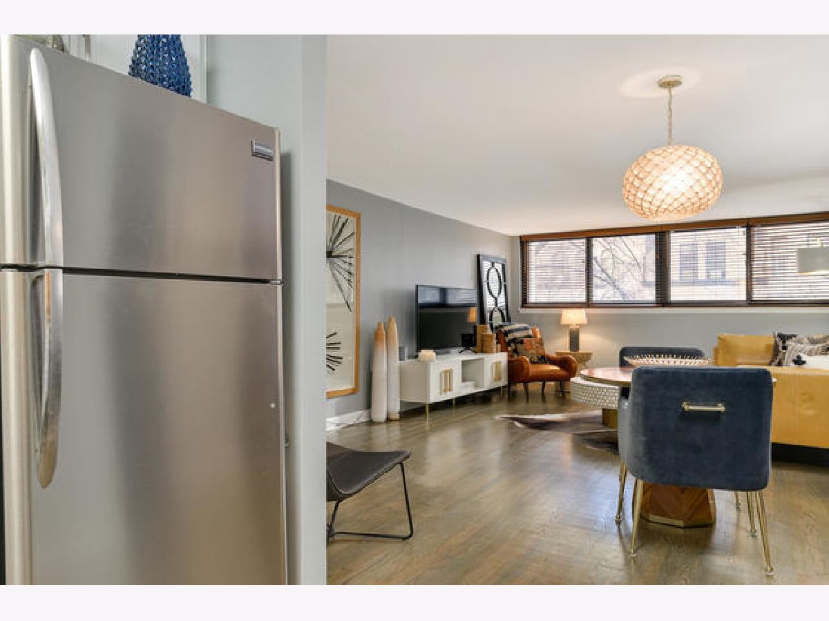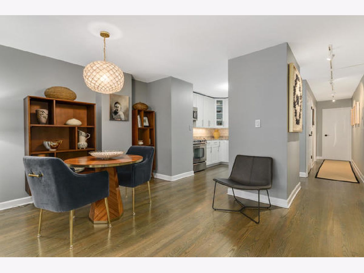 Absolutely gorgeous totally updated 936 sqft 1 bedroom 1 bath in prime Gold Coast neighborhood location! This sprawling unit shows like a model out of a magazine! Huge living and dining room space has fabulous finishes including rich wood flooring, stylish dining chandelier, updated white kitchen with granite counters and stainless appliances including dishwasher with subway backsplash and under cabinet lighting, Great closet space with custom French doors, Pristine white bath with white subway tile and chic vanity and lighting with designer wallpaper and fixtures. Huge king sized bedroom has cool wallpaper and great closet space with upgraded closet systems! Super Sunny South facing condominium has lovely brownstone and greet top views! Beautiful Custom finishes throughout so move right in and not have to do anything! Additional storage cage included! Rental parking nearby. Solid intimate condominium building has pretty lobby, updated elevators and nice big laundry room. Incredible location with the lake, shops, dining, bars, Starbucks, Gibsons -all within two blocks!