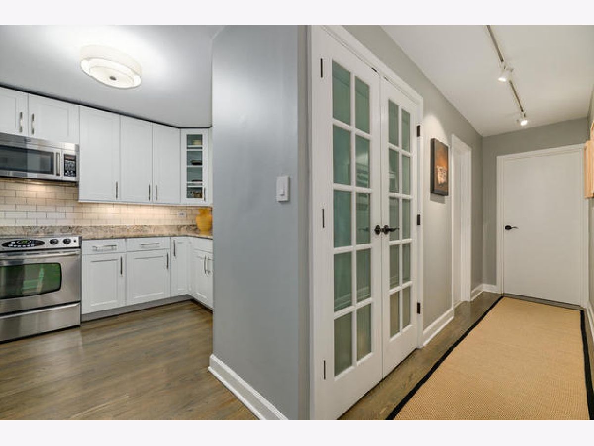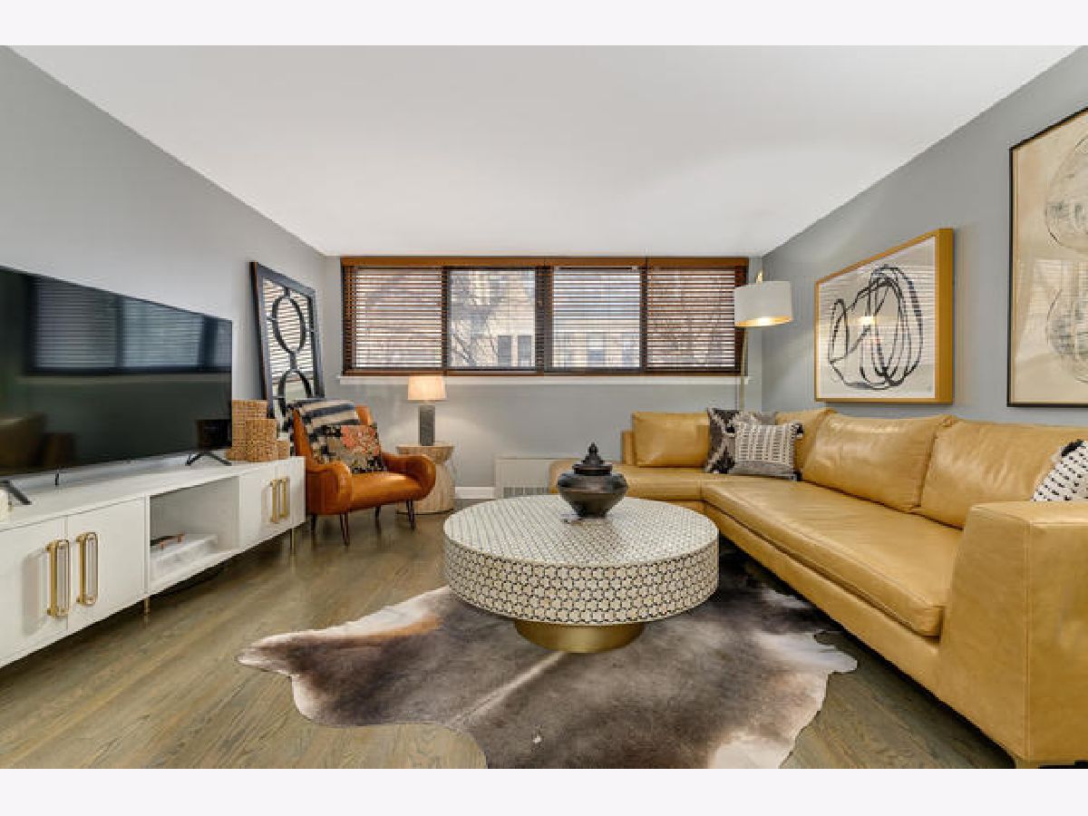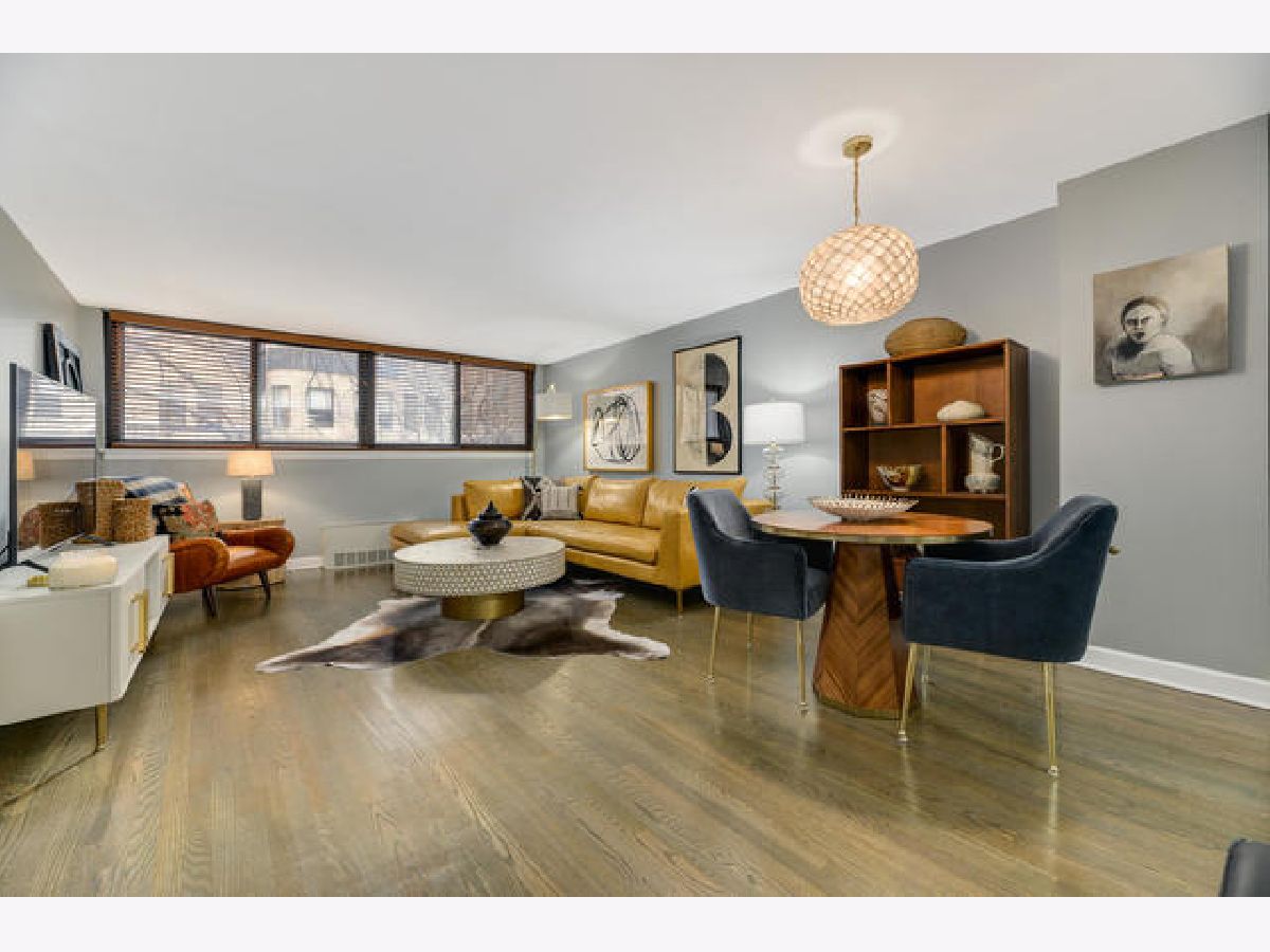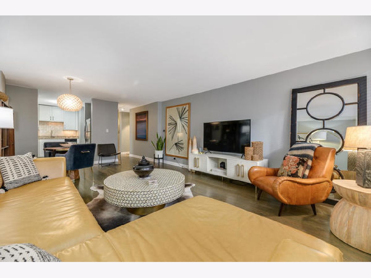 Absolutely gorgeous totally updated 936 sqft 1 bedroom 1 bath in prime Gold Coast neighborhood location! This sprawling unit shows like a model out of a magazine! Huge living and dining room space has fabulous finishes including rich wood flooring, stylish dining chandelier, updated white kitchen with granite counters and stainless appliances including dishwasher with subway backsplash and under cabinet lighting, Great closet space with custom French doors, Pristine white bath with white subway tile and chic vanity and lighting with designer wallpaper and fixtures. Huge king sized bedroom has cool wallpaper and great closet space with upgraded closet systems! Super Sunny South facing condominium has lovely brownstone and greet top views! Beautiful Custom finishes throughout so move right in and not have to do anything! Additional storage cage included! Rental parking nearby. Solid intimate condominium building has pretty lobby, updated elevators and nice big laundry room. Incredible location with the lake, shops, dining, bars, Starbucks, Gibsons -all within two blocks!