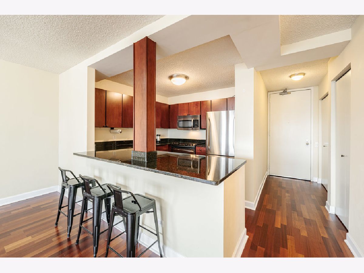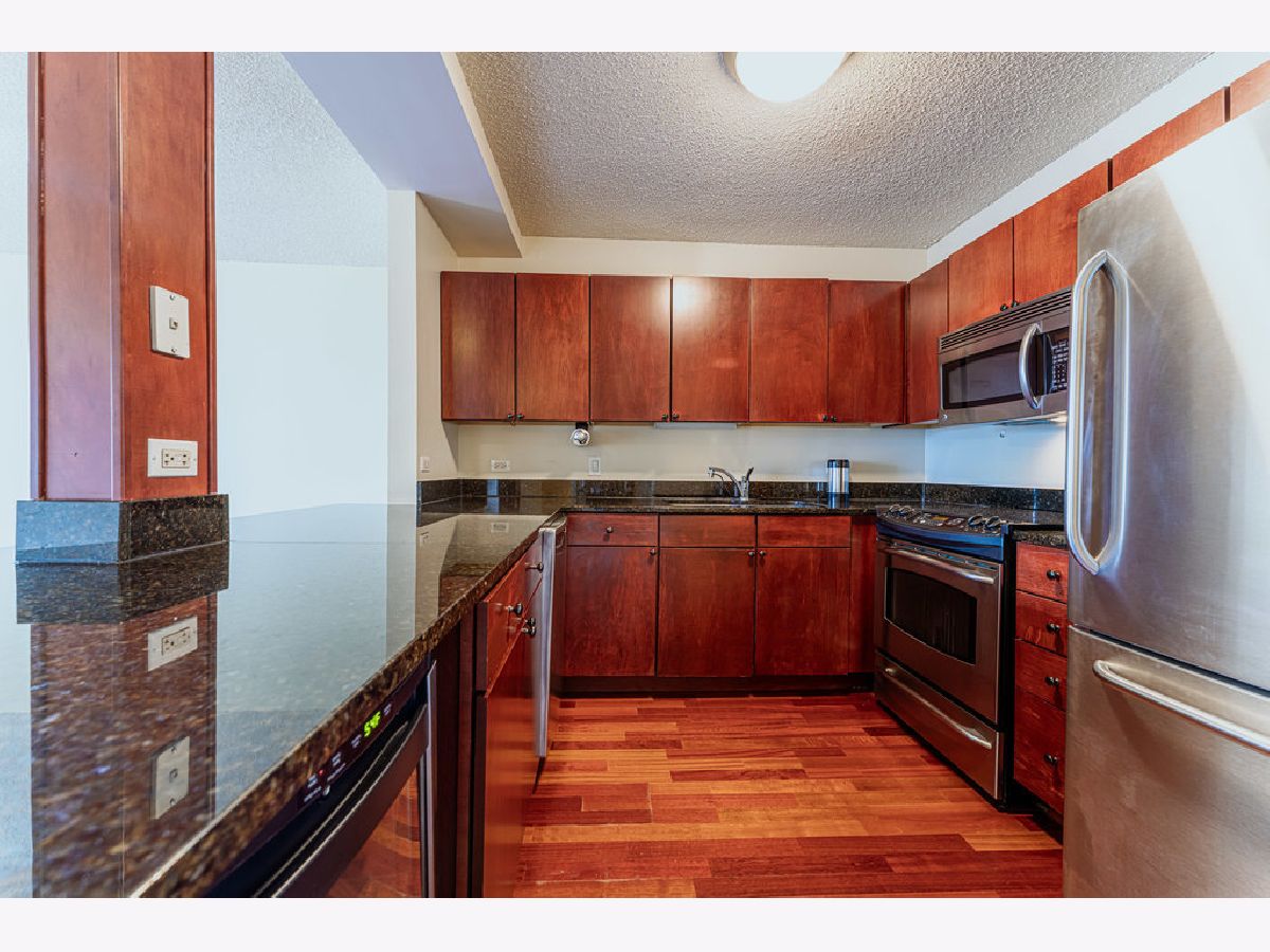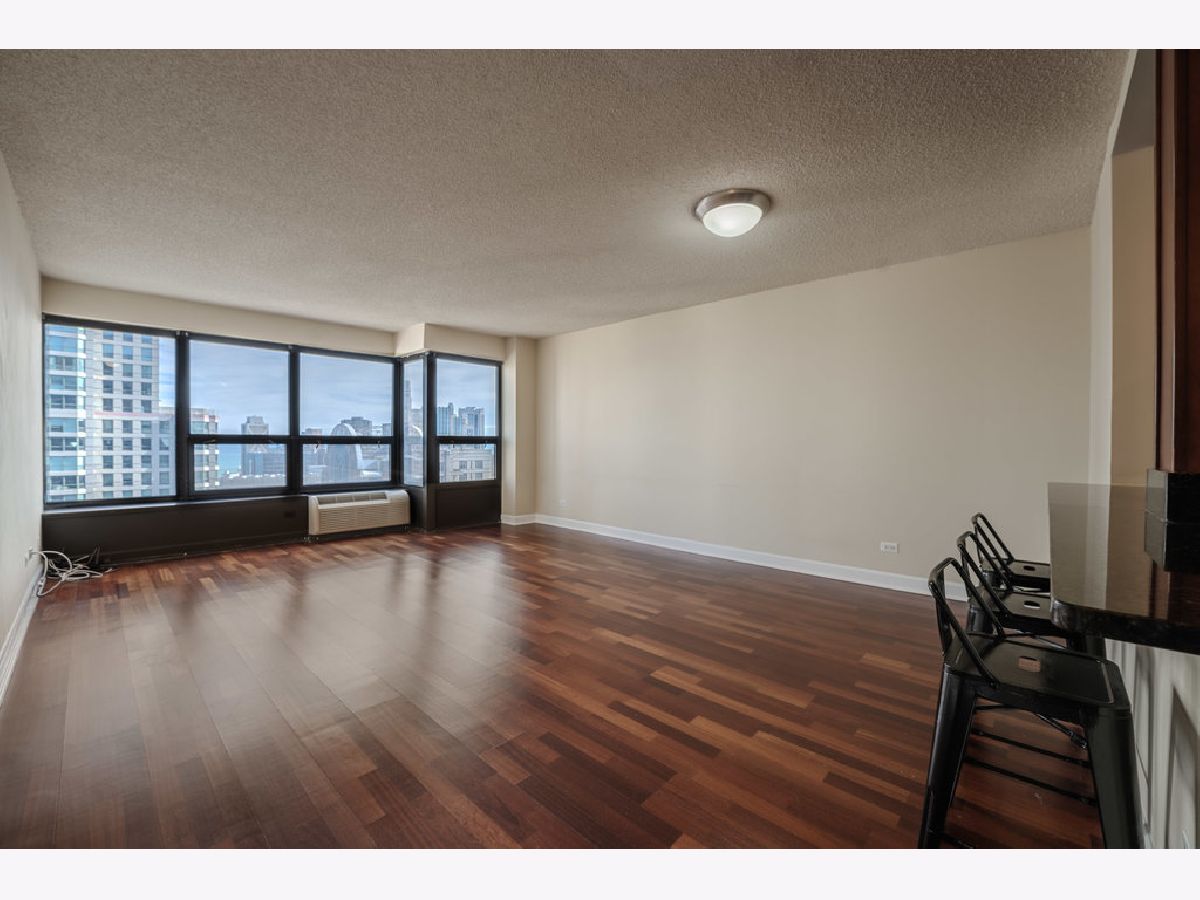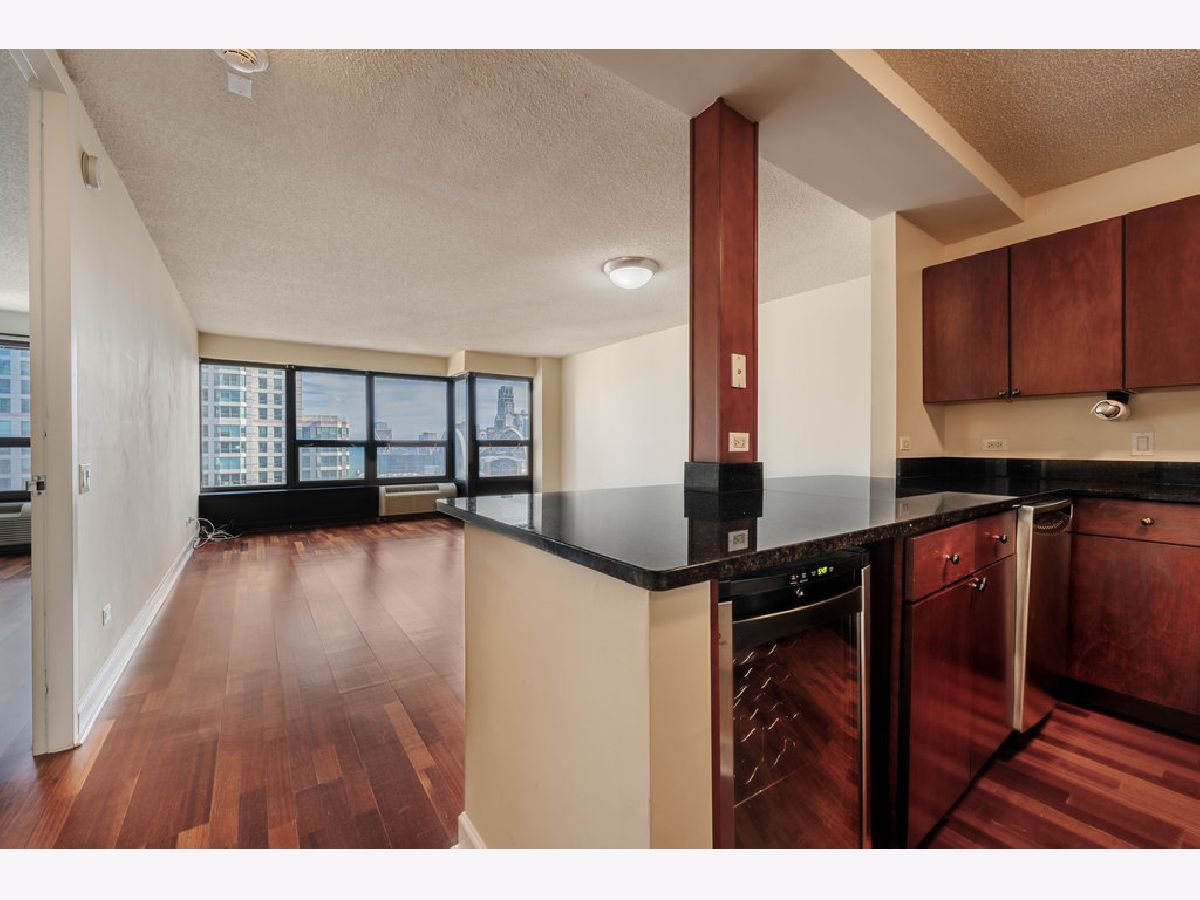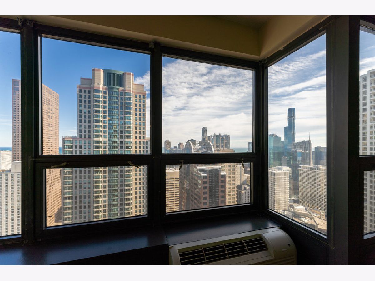 Amazing lake views on the 50th floor and laundry in-unit! Beautiful cherry wood laminate floors throughout with neutral paint and white trim. Open kitchen has granite counters, full stainless steel appliance package, and breakfast bar. Spacious bedroom overlooking the lake, and a walk-in closet! Situated in Chicago's premium Gold Coast neighborhood, just steps away from Magnificent Mile and endless shopping & nightlife. This full-amenity building offers and 24-hour doorman, outdoor pool & sundeck, state-of-the-art fitness center, movie theater, gas grills, party room, on-site management. Cable & Wi-Fi included!