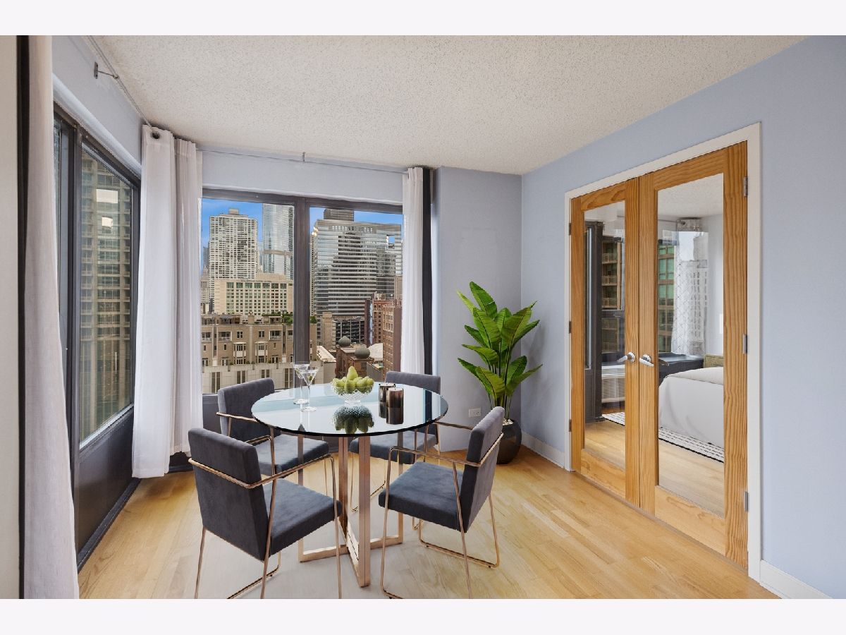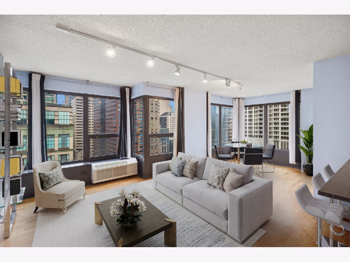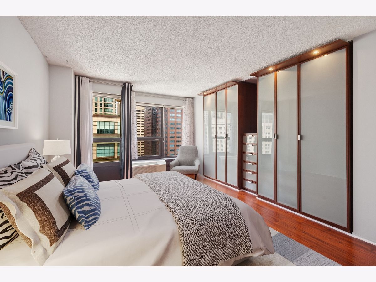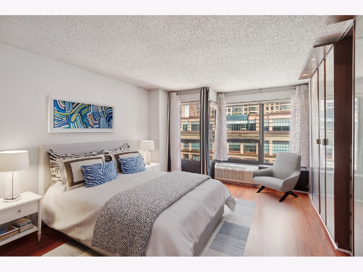 RARELY Available SOUTH EAST Corner 2 Bedroom, 1 Bathroom in the Heart of River North! This Always Sunny Corner Condo Features a Split Bedroom Layout with Hardwood Floors Throughout, the Best Views in the Building and was Just Freshly Painted Throughout. Open Kitchen Layout with Shaker 42" Kitchen Cabinets with Stainless Steel Appliances Including French Door Fridge and Granite Counters with a HUGE Breakfast Bar Open to the Living and Dining Areas. Spacious Living Room with Separate Dining and Captivating City Views that Sparkle Day and Night! Huge Primary Bedroom Large Enough for a King Sized Bed and Custom Built Out Closets. South Facing 2nd Bedroom with Glass French Doors. Bathroom Featuring Modern Vanity with Granite Counters + 2nd Additional Vanity, Shower with Glass Doors and Linen Closet for Additional Storage. BEST VIEWS IN THE BUILDING with No Obstruction! Garage Parking May be Rented or Purchased within the Building (subject to availability). Assessments Include Everything Except for Electric - Bulk Cable Package, High Speed Internet, Water & All Building Amenities. Outstanding Amenities Include 24-Hour Doorman, 2 Story Sundeck & Outdoor Pool, Comprehensive Gym, Biz Center, Movie Theater & Party Room. Fantastic River North Location with Everything Right Outside Your Front Door Including LifeTime Fitness at One Chicago & Whole Foods. Everything from The Mag Mile Shopping, to the Best Restaurants in the City & the Lakefront Path.