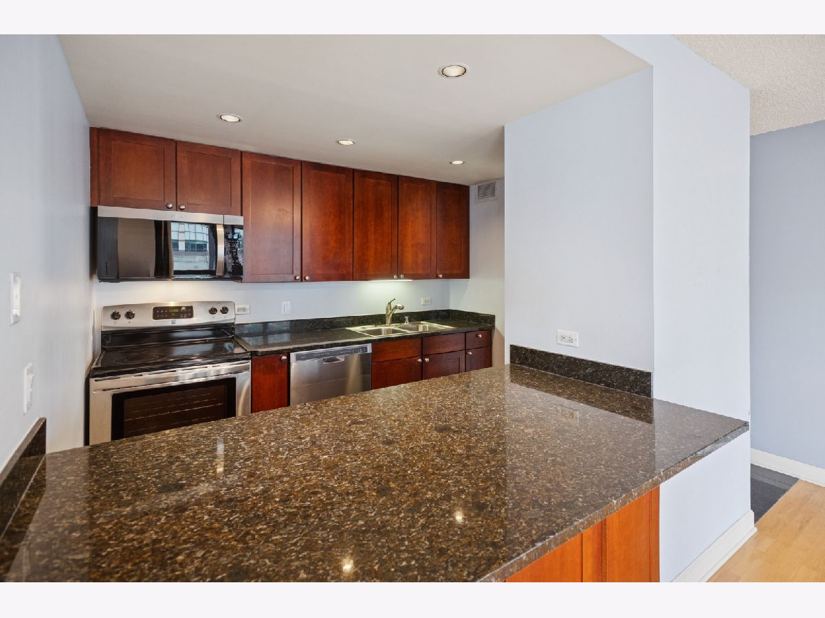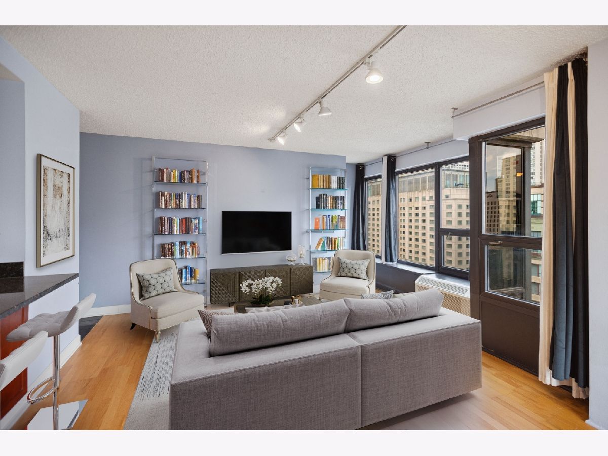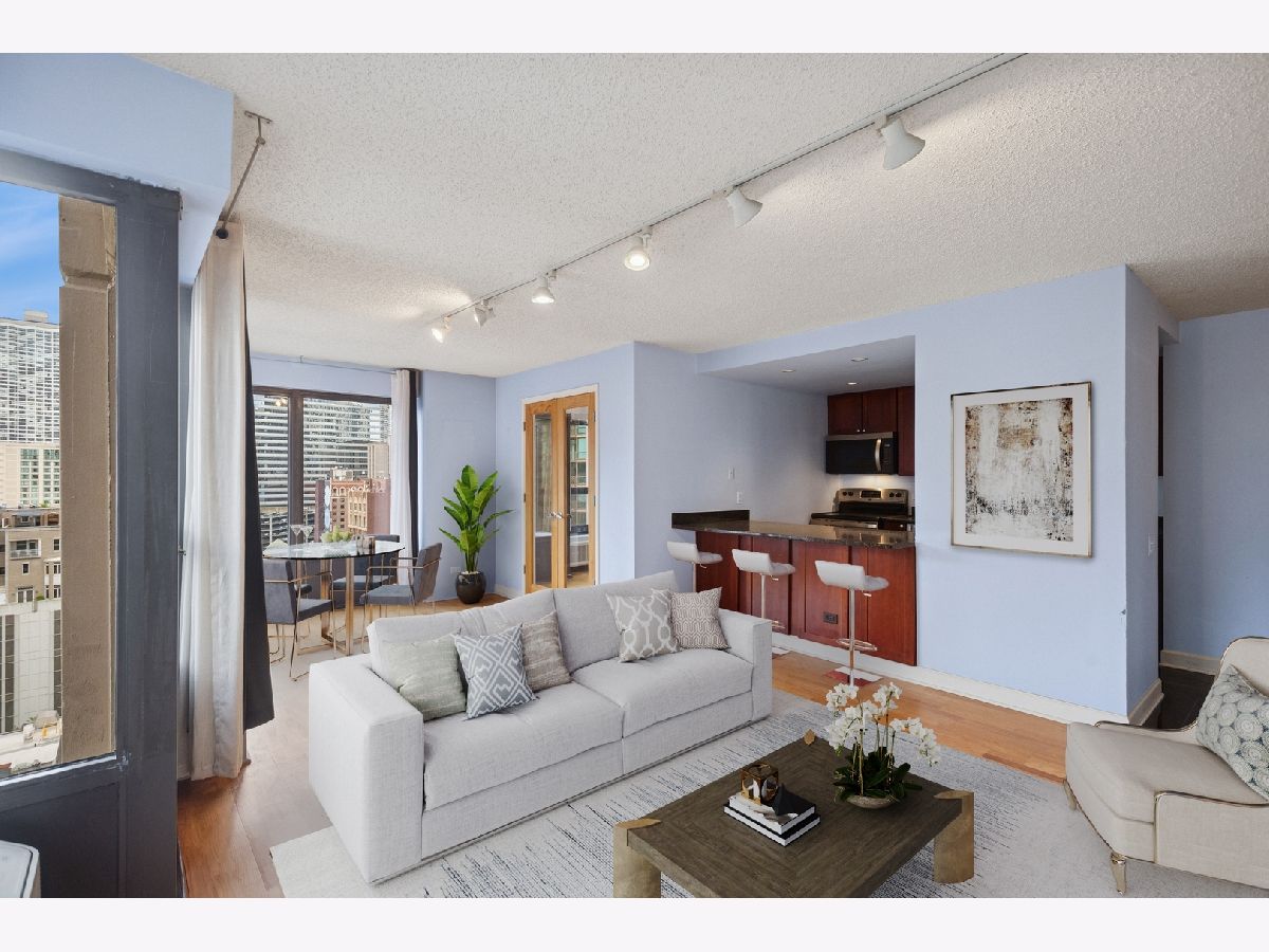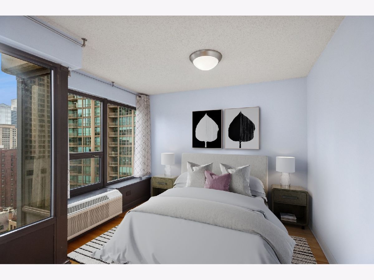 RARELY Available SOUTH EAST Corner 2 Bedroom, 1 Bathroom in the Heart of River North! This Always Sunny Corner Condo Features a Split Bedroom Layout with Hardwood Floors Throughout, the Best Views in the Building and was Just Freshly Painted Throughout. Open Kitchen Layout with Shaker 42" Kitchen Cabinets with Stainless Steel Appliances Including French Door Fridge and Granite Counters with a HUGE Breakfast Bar Open to the Living and Dining Areas. Spacious Living Room with Separate Dining and Captivating City Views that Sparkle Day and Night! Huge Primary Bedroom Large Enough for a King Sized Bed and Custom Built Out Closets. South Facing 2nd Bedroom with Glass French Doors. Bathroom Featuring Modern Vanity with Granite Counters + 2nd Additional Vanity, Shower with Glass Doors and Linen Closet for Additional Storage. BEST VIEWS IN THE BUILDING with No Obstruction! Garage Parking May be Rented or Purchased within the Building (subject to availability). Assessments Include Everything Except for Electric - Bulk Cable Package, High Speed Internet, Water & All Building Amenities. Outstanding Amenities Include 24-Hour Doorman, 2 Story Sundeck & Outdoor Pool, Comprehensive Gym, Biz Center, Movie Theater & Party Room. Fantastic River North Location with Everything Right Outside Your Front Door Including LifeTime Fitness at One Chicago & Whole Foods. Everything from The Mag Mile Shopping, to the Best Restaurants in the City & the Lakefront Path.