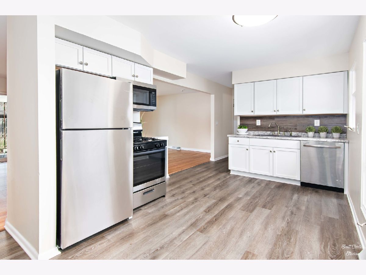 Cool mid-century vibe ranch in heart of Crystal Lake at the end of non-thru street. THIS IS THE PLACE TO BE with historic downtown moments away (LIBRARY, SCHOOLS, BOUTIQUE SHOPPING, JAZZY DINING & COMMUTER TRAIN), Route 14 right around the bend, even relish the sounds of the high school marching band. INTERIOR JUST BEAUTIFULLY UPDATED. Refinished oak hardwoods on main floor enhance open floor plan with LOTS OF LIGHT and all new neatly neutral interior paint. ALL NEW KITCHEN STAINLESS APPLIANCES, CABINETRY, COUNTERTOPS, AND FLOORING! Shaker styled white cabinets, cool tone countertops and mixed wood tone flooring marry for a modern yet warm space. HUGE SLIDERS to terraced patio right off main living space for al fresco dining. Full bath with vintage tiled floor & sparkling white fixtures. Unexpected master through double french doors with private half bath en suite. Partially finished basement for LOADS OF XTRA SPACE with family room and another bedroom! Large lot with mature trees. Vacant so ez to view and QUICK CLOSE WELCOME!