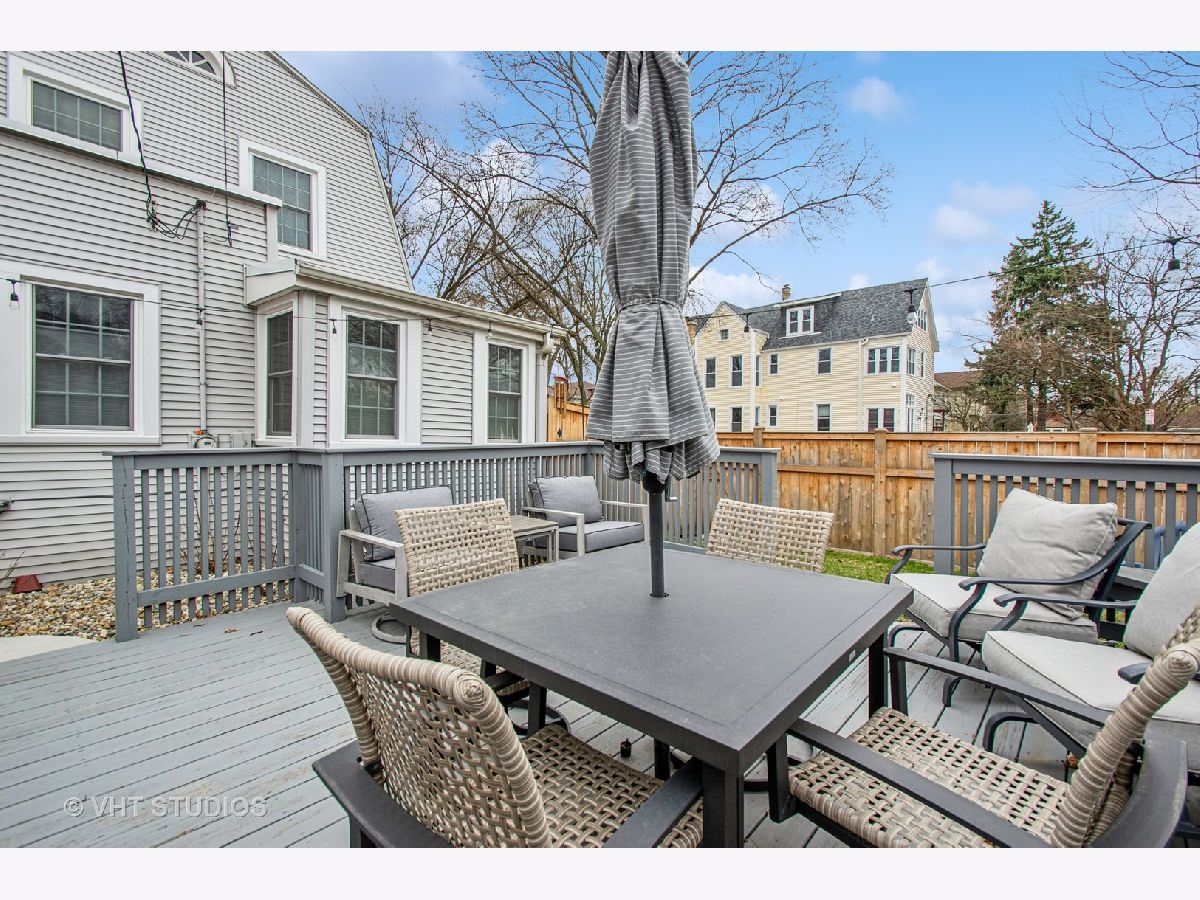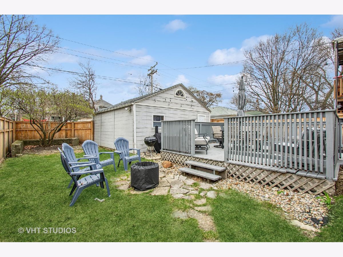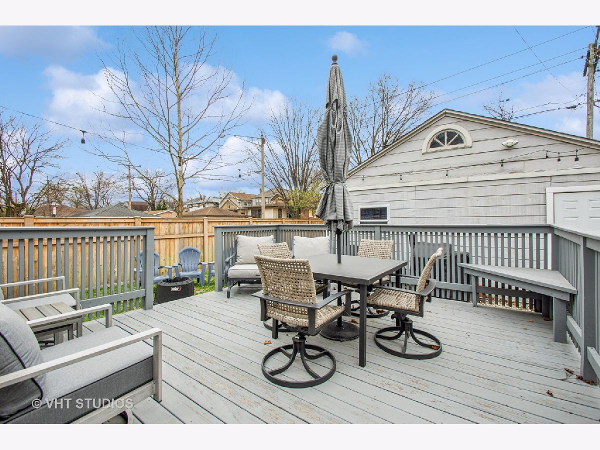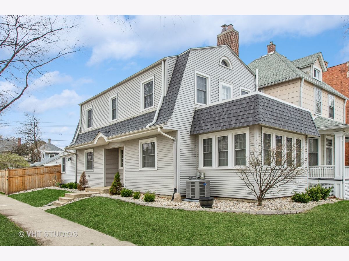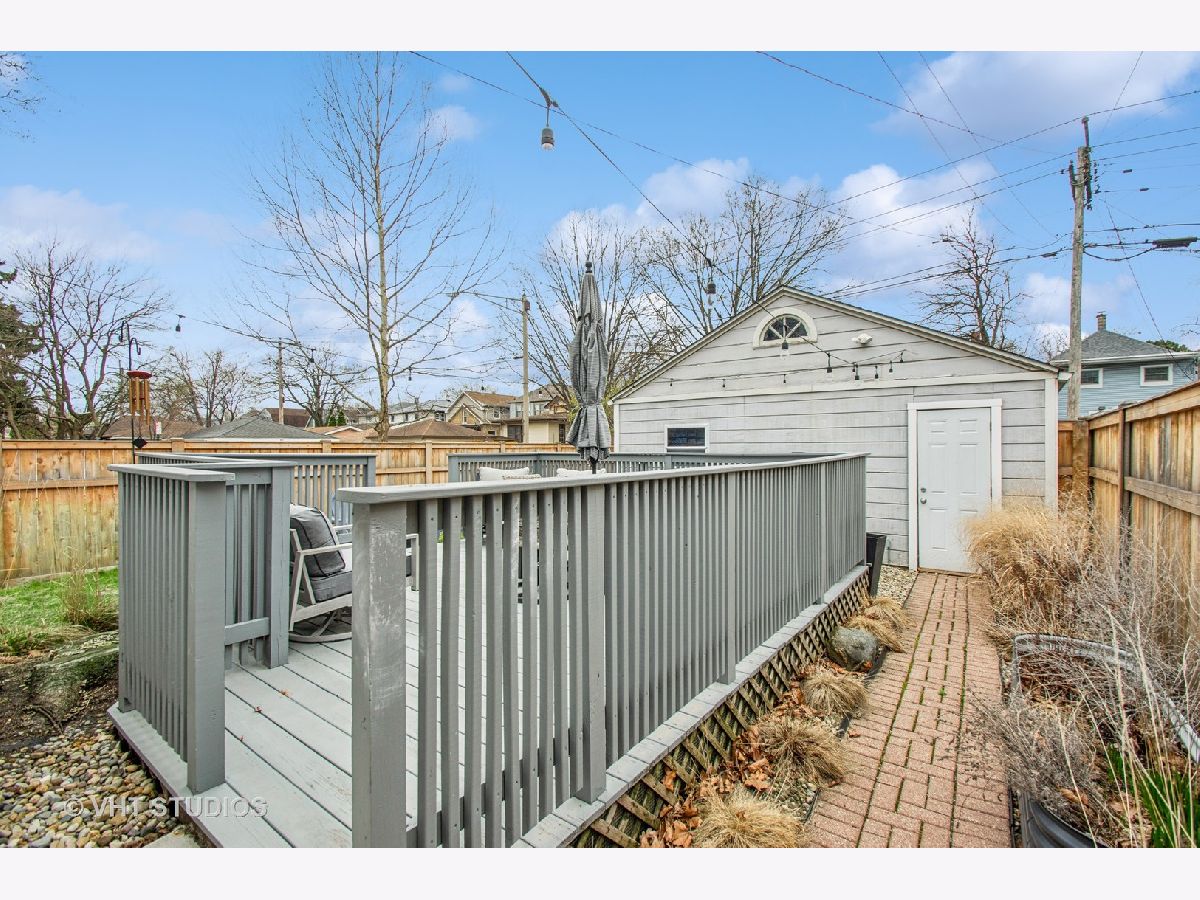 Designed by Meyer & Cook, this classic Center Dutch Colonial blends vintage charm with thoughtful updates-just 9 miles from downtown Chicago on a picturesque, tree-lined street in Oak Park. Step into a gracious foyer and main level where hardwood floors, intricate moldings, and rich architectural details set the tone. French doors lead to a sunroom and a living room anchored by a fireplace and built-in shelving. A separate formal dining room easily seats eight, perfect for gatherings. The 2022 renovated kitchen is a standout, featuring white cabinetry, stainless steel appliances, custom blue Art Deco tile-work, and a breakfast bar that seats four-opening to a cozy seating area for casual lounging. Upstairs, you'll find three spacious bedrooms and a full bath with mosaic tile flooring. The sun-filled primary bedroom opens onto a large private balcony, offering a quiet retreat. The full basement includes a finished rec room, ample storage, and a dedicated workroom. Out back, enjoy a private, fenced-in yard with an expansive deck that seats twelve-ideal for summer entertaining-and a two-car garage. This beautifully updated home sits in a family-friendly neighborhood, steps from Longfellow Park and School, the New Park Community Recreation Center (offering a gym and kids' programming), and just a short walk to the restaurants and shops of Harrison Street. Equidistant to both the Green and Blue Line and with easy access to I-290, this is a rare blend of charm, convenience, and community-truly a destination of grandeur
