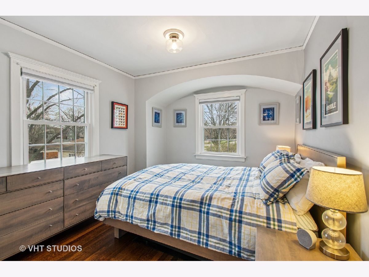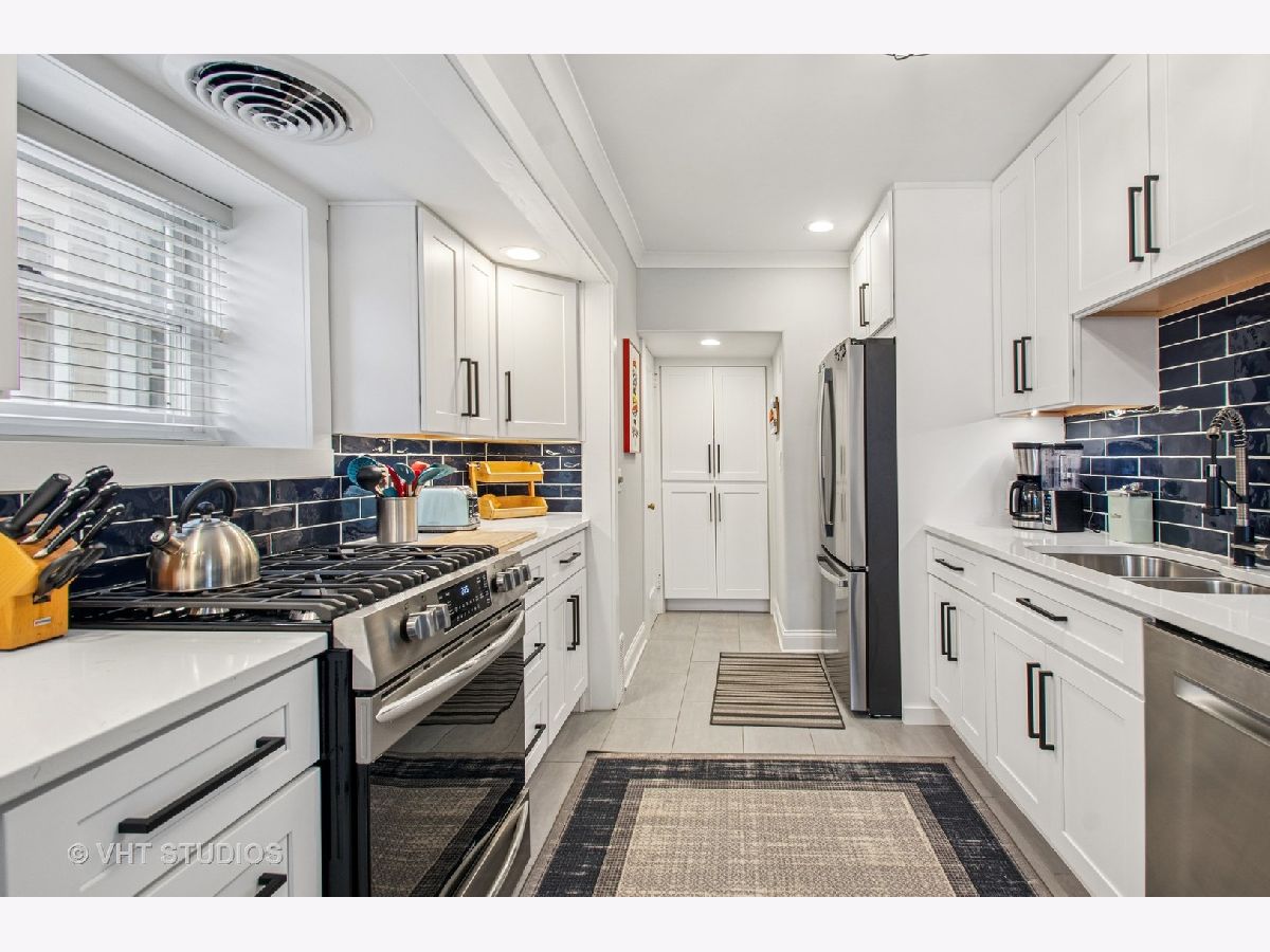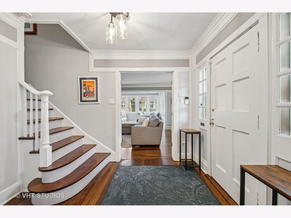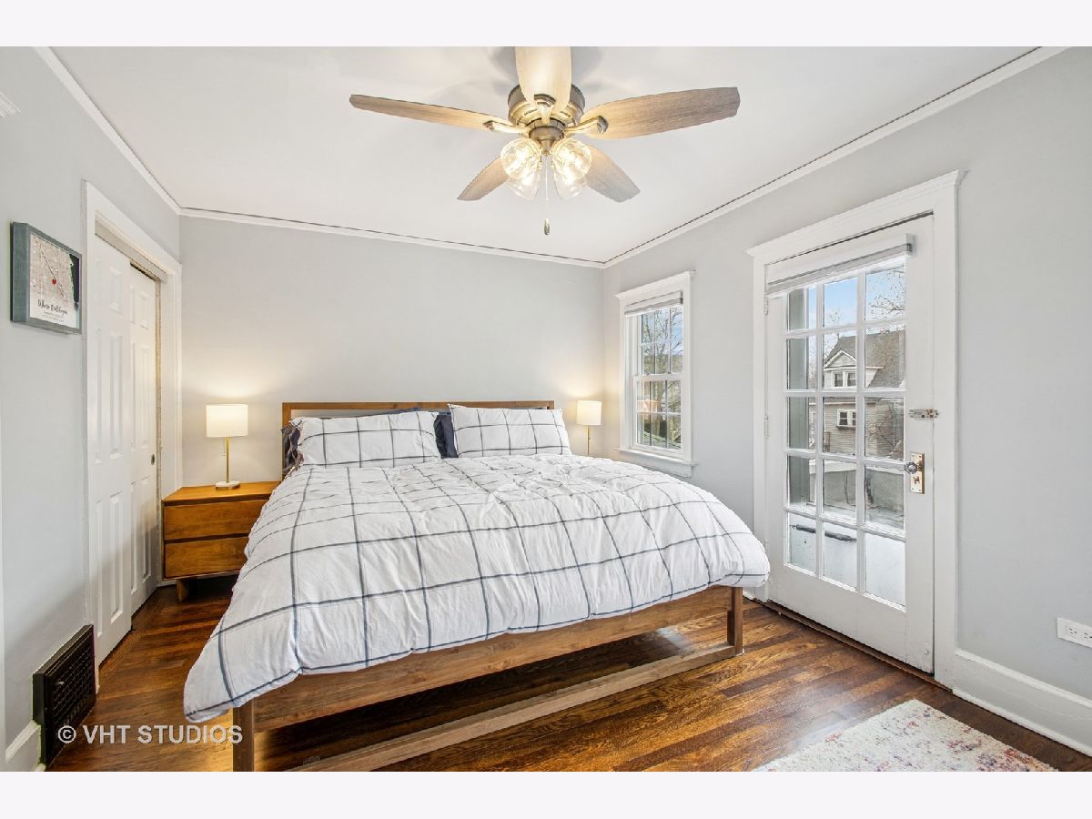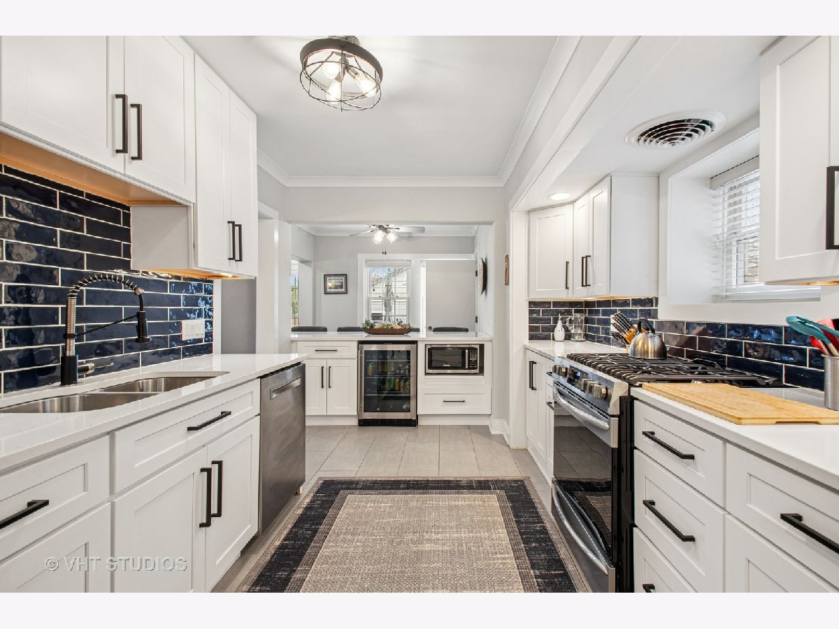Designed by Meyer & Cook, this classic Center Dutch Colonial blends vintage charm with thoughtful updates-just 9 miles from downtown Chicago on a picturesque, tree-lined street in Oak Park. Step into a gracious foyer and main level where hardwood floors, intricate moldings, and rich architectural details set the tone. French doors lead to a sunroom and a living room anchored by a fireplace and built-in shelving. A separate formal dining room easily seats eight, perfect for gatherings. The 2022 renovated kitchen is a standout, featuring white cabinetry, stainless steel appliances, custom blue Art Deco tile-work, and a breakfast bar that seats four-opening to a cozy seating area for casual lounging. Upstairs, you'll find three spacious bedrooms and a full bath with mosaic tile flooring. The sun-filled primary bedroom opens onto a large private balcony, offering a quiet retreat. The full basement includes a finished rec room, ample storage, and a dedicated workroom. Out back, enjoy a private, fenced-in yard with an expansive deck that seats twelve-ideal for summer entertaining-and a two-car garage. This beautifully updated home sits in a family-friendly neighborhood, steps from Longfellow Park and School, the New Park Community Recreation Center (offering a gym and kids' programming), and just a short walk to the restaurants and shops of Harrison Street. Equidistant to both the Green and Blue Line and with easy access to I-290, this is a rare blend of charm, convenience, and community-truly a destination of grandeur