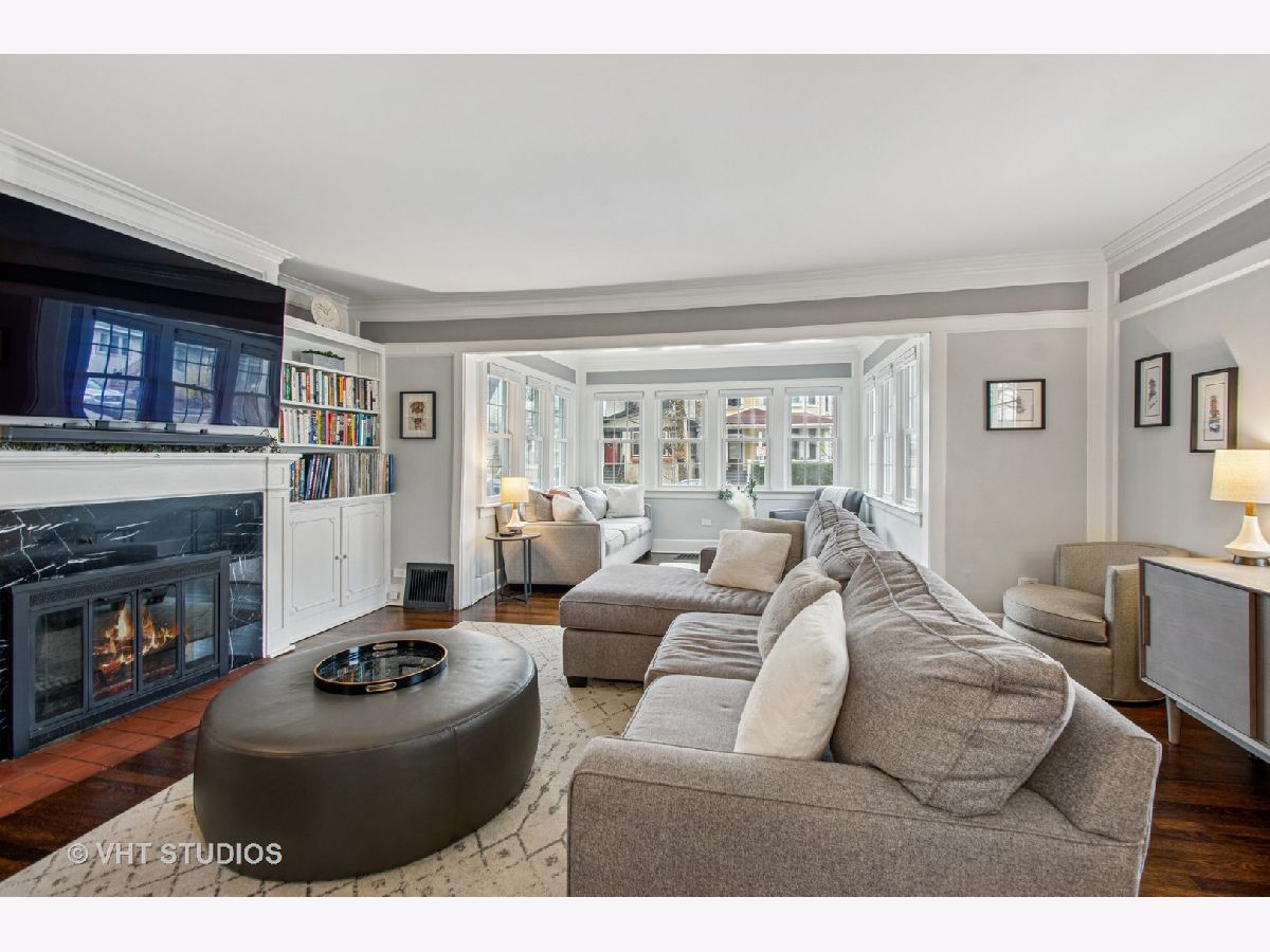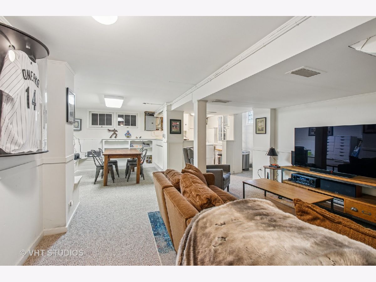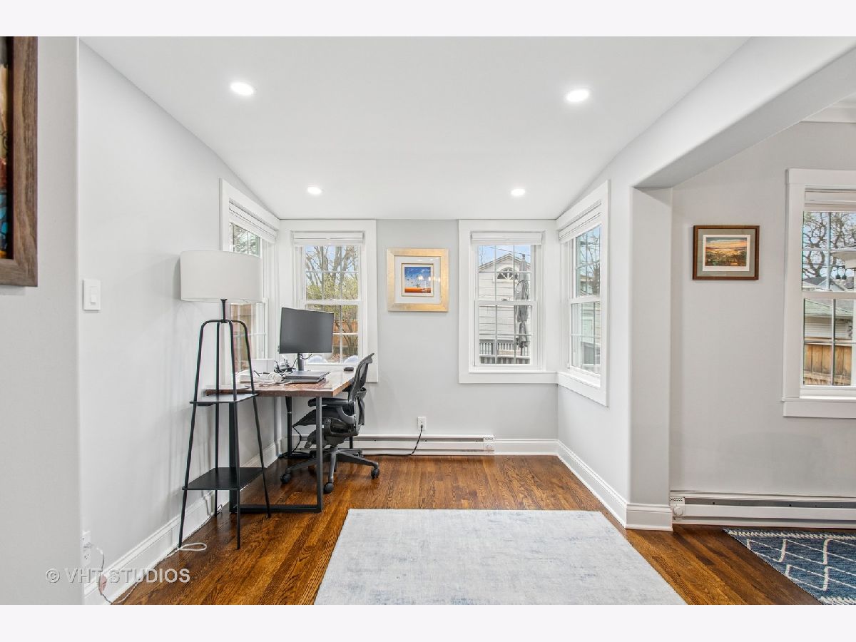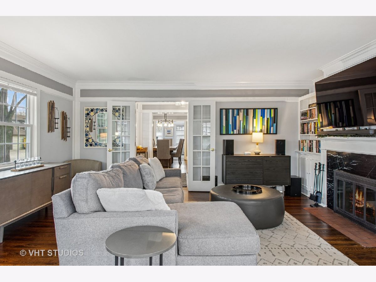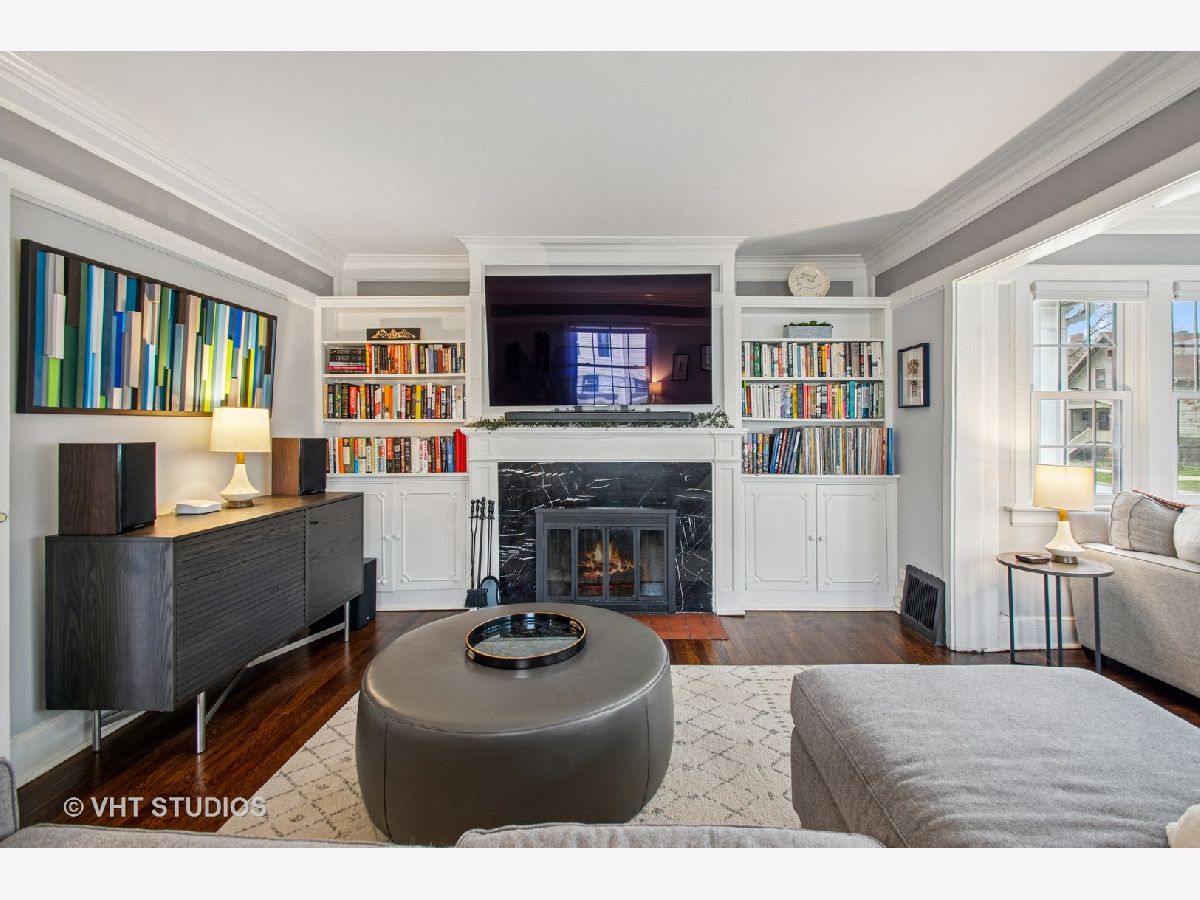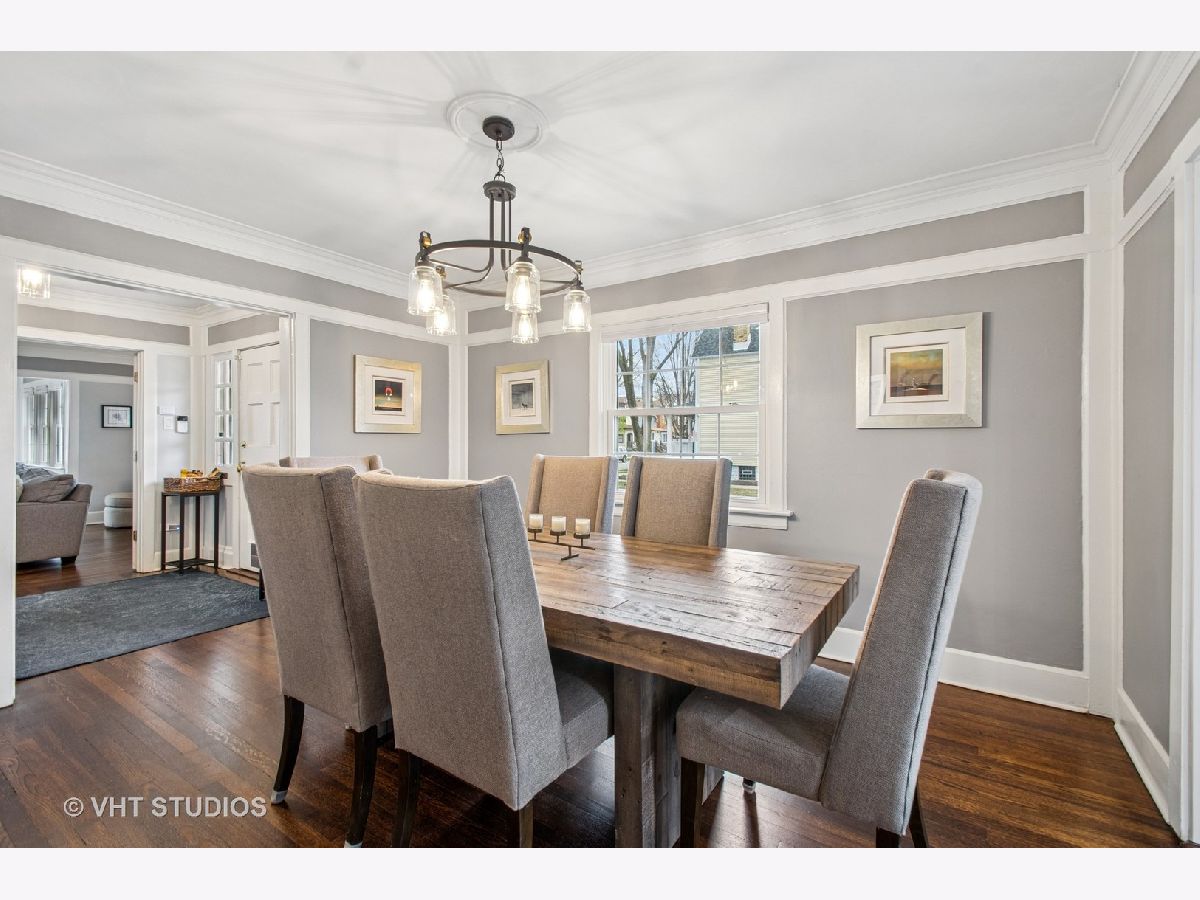 Designed by Meyer & Cook, this classic Center Dutch Colonial blends vintage charm with thoughtful updates-just 9 miles from downtown Chicago on a picturesque, tree-lined street in Oak Park. Step into a gracious foyer and main level where hardwood floors, intricate moldings, and rich architectural details set the tone. French doors lead to a sunroom and a living room anchored by a fireplace and built-in shelving. A separate formal dining room easily seats eight, perfect for gatherings. The 2022 renovated kitchen is a standout, featuring white cabinetry, stainless steel appliances, custom blue Art Deco tile-work, and a breakfast bar that seats four-opening to a cozy seating area for casual lounging. Upstairs, you'll find three spacious bedrooms and a full bath with mosaic tile flooring. The sun-filled primary bedroom opens onto a large private balcony, offering a quiet retreat. The full basement includes a finished rec room, ample storage, and a dedicated workroom. Out back, enjoy a private, fenced-in yard with an expansive deck that seats twelve-ideal for summer entertaining-and a two-car garage. This beautifully updated home sits in a family-friendly neighborhood, steps from Longfellow Park and School, the New Park Community Recreation Center (offering a gym and kids' programming), and just a short walk to the restaurants and shops of Harrison Street. Equidistant to both the Green and Blue Line and with easy access to I-290, this is a rare blend of charm, convenience, and community-truly a destination of grandeur