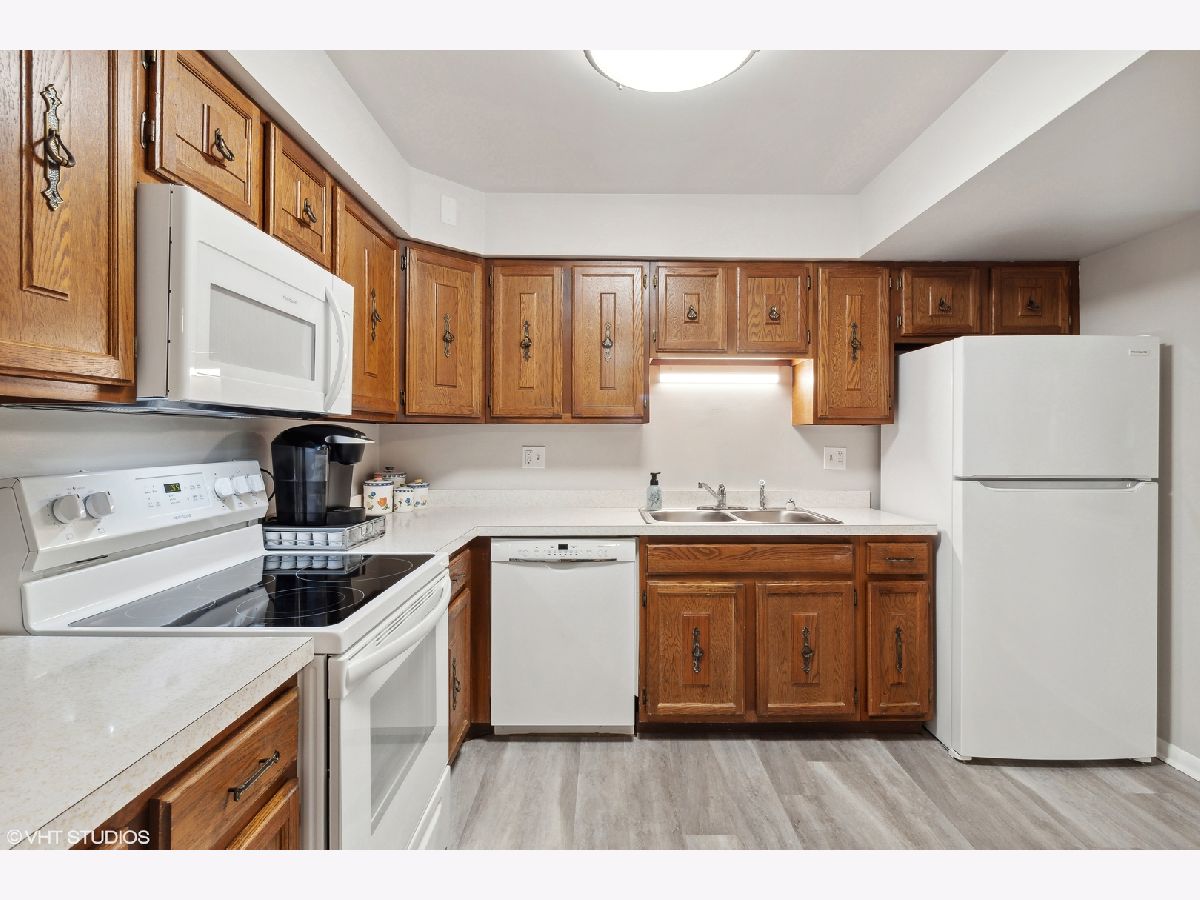 Welcome to Chelsey Square! This spacious first floor condo is as sunny and welcoming as the complex itself. Just off Dee Road and only minutes from so much, this unit boasts two graciously sized bedrooms, two full baths (including an ensuite primary bath with easy step-in shower and separated sink and bathing spaces) and best of all, two individual, heated, attached garage parking spaces! The home includes a formal foyer entry, large living room with scenic front balcony - perfect for the morning's coffee or an evening glass of wine, separate formal dining space and a semi-open, white and oak kitchen allowing a connected great room feel while still defining each room. Ample closet space abounds including a large coat closet, two separate linen closets, a large walk-in closet in the primary bedroom, a full wall of closets in the second bedroom and a large private 7'x 9' storage room on the lower level. Finally, the unit includes a separate walk-in laundry room with side-by-side washer and dryer, utility sink and room for hanging space and extra storage. The secure and friendly, self-managed complex offers an elevator, enormous common social room with functional kitchen, a common patio and grill space, a workshop area for the handy-types and his and hers saunas! Finally, the building offers ample, convenient guest parking out the back door for friends and family to visit. Well-run, self-managed building with healthy reserves and low monthly assessments. Just a short drive to O'Hare, the Blue Line El, the Metra, bus access out the front door and steps from the finest of the Park Ridge Schools in District 64 and Maine South High School. 100% Owner Occupied. No pets. No smoking (inside building.)