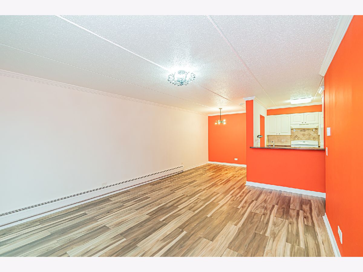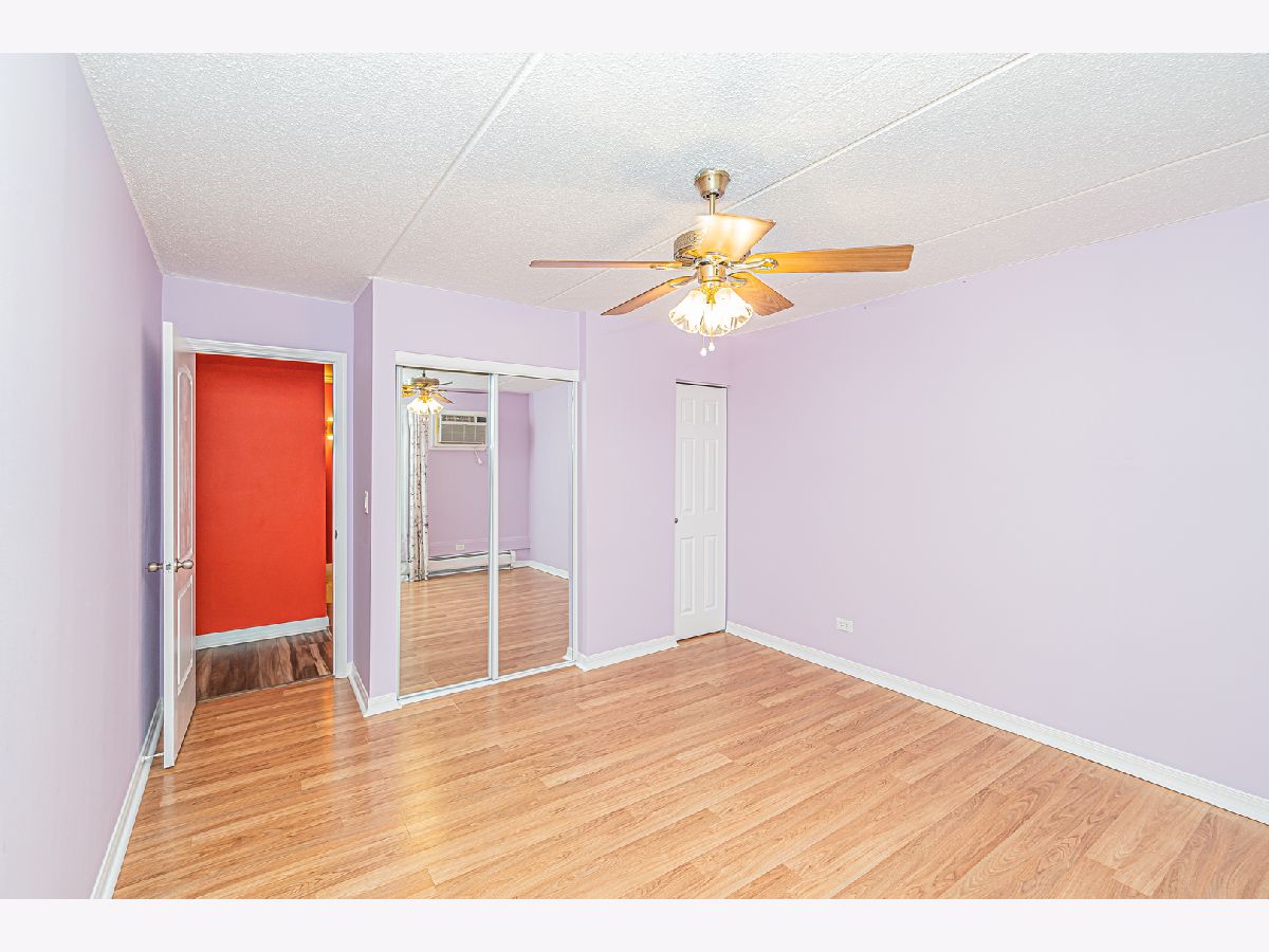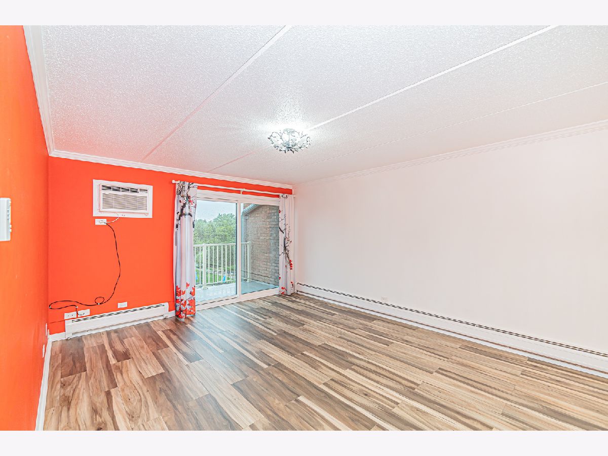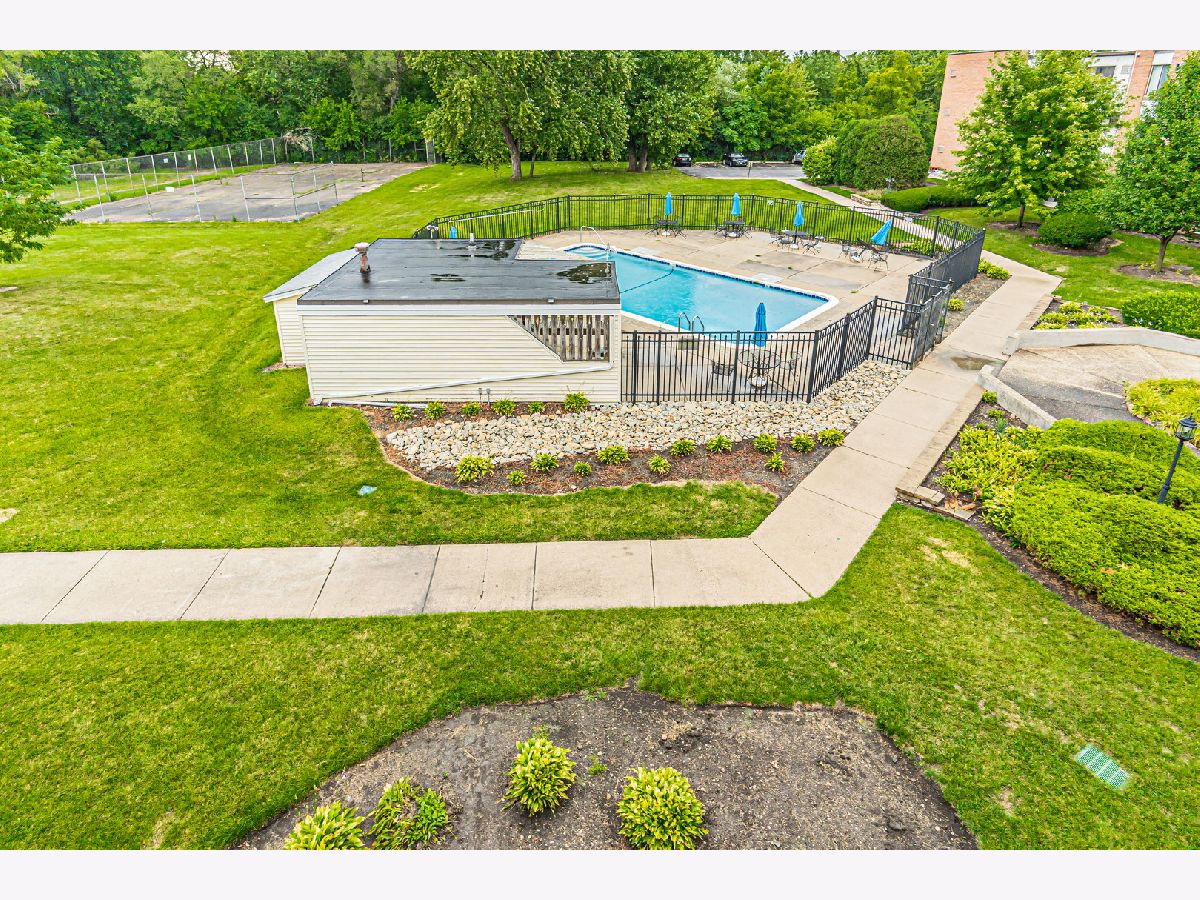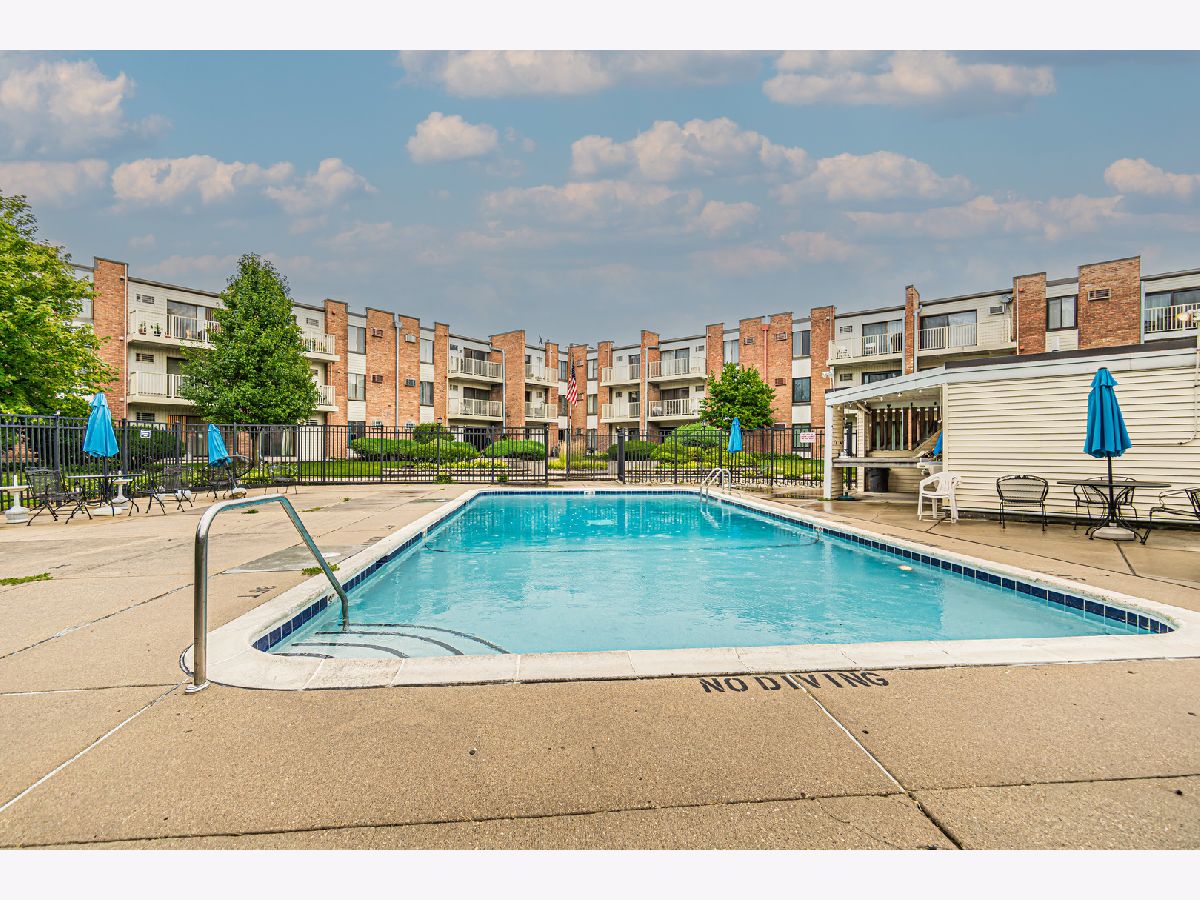 Remodeled 1 bedroom condo on the third floor with a large balcony overlooking the pool and mature trees. Kitchen has a breakfast bar, white cabinets, and granite countertop. Large bedroom with double closet. Spacious full bath with ceramic tile flooring. Updated laminate flooring, freshly painted throughout, wall A\C. Secure building with intercom system, elevator, coin laundry, extra storage, party room, and much more. Assessment includes everything except electricity. Fantastic location - close to schools, shopping, expwys. The unit can be rented, with no restrictions. Property is sold AS IS.