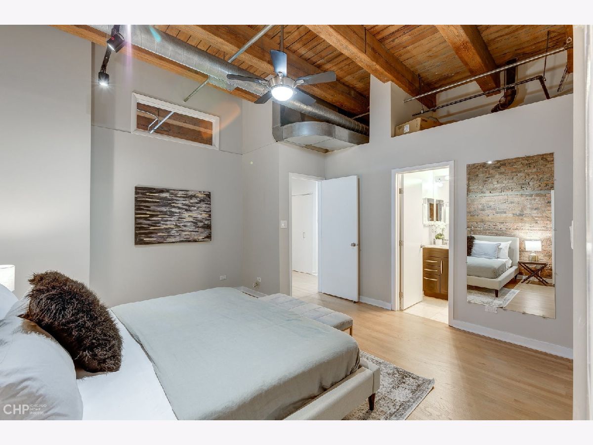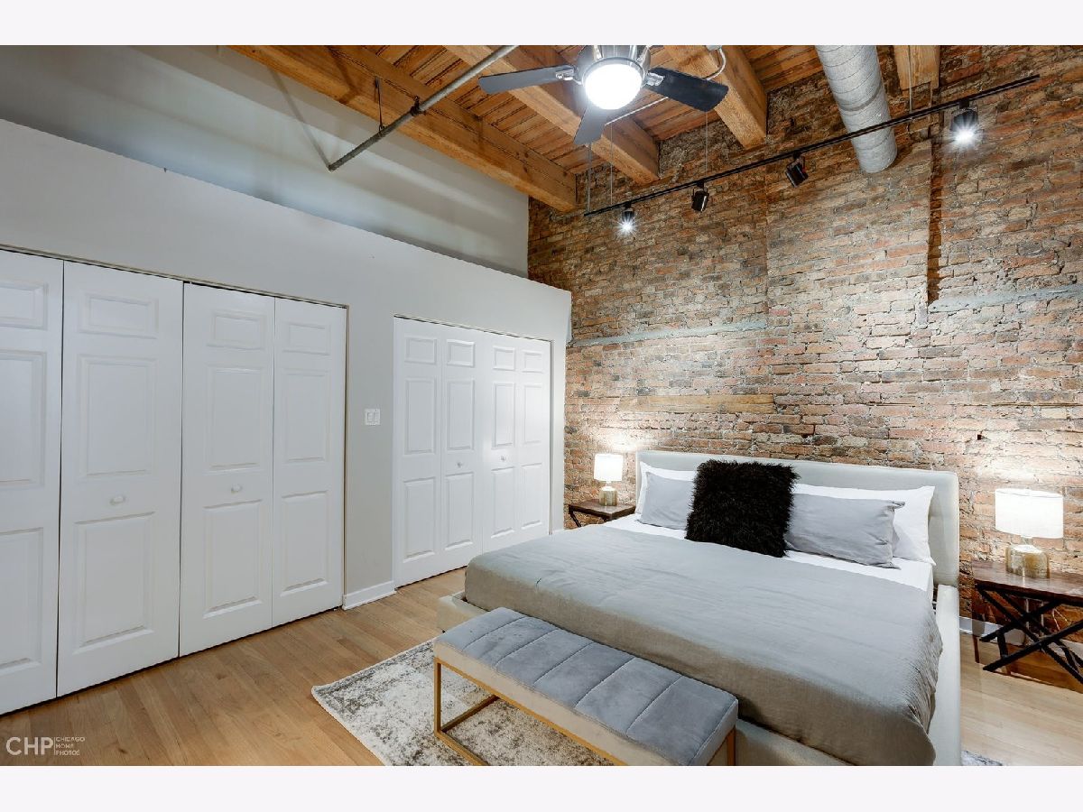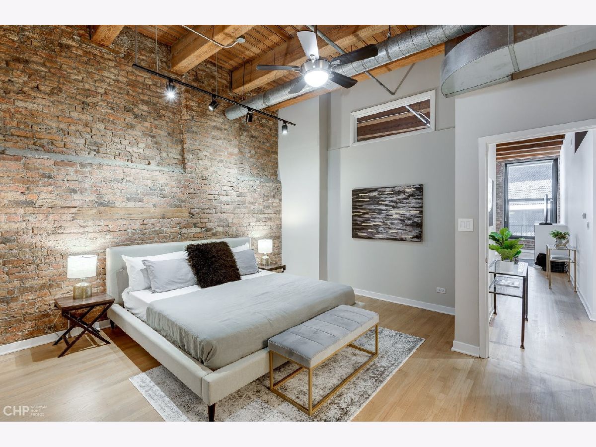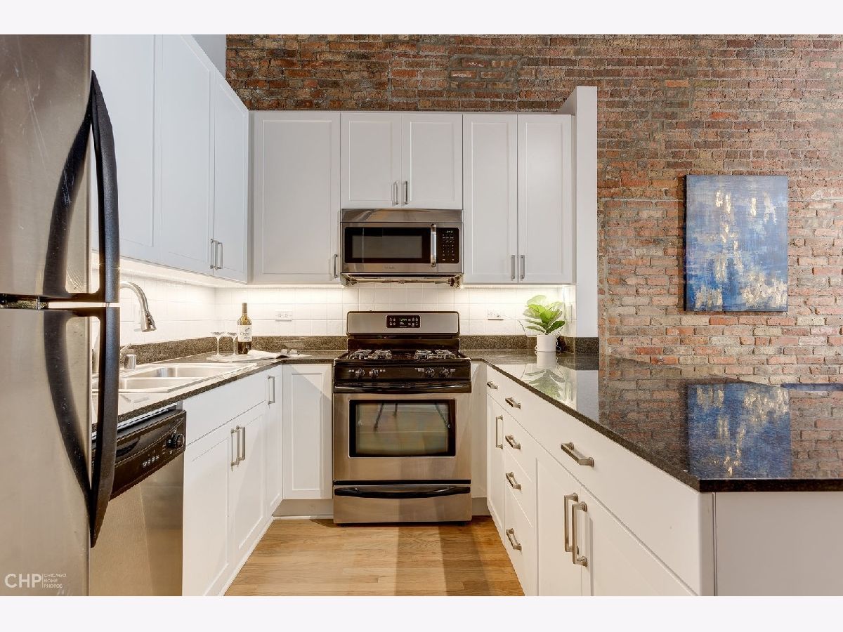 Watch Video Tour by clicking on VIDEO button above! Beautifully updated 2 bed, 2 bath brick and timber loft featuring soaring 13' ceilings and refinished solid white oak hardwood flooring in River North! This unique home features and updated gourmet kitchen with white shaker cabinets, brushed nickel hardware, LED under cabinet lighting, and stainless steel appliances. The kitchen opens into a large, combined living/dining area complete with gas fireplace. Large primary bedroom has ample space for a king bed, and nightstands, dual closets, and ensuite bath. Second bedroom comes with a built-in murphy bed that easily tucks away to add additional functionality to the room for a den or home office space. Large balcony, In unit laundry, extra large storage cage, updated lightning, crisp white paint, and recently updated common rooftop with city views make this the perfect move-in ready city loft! Heated garage parking available for an additional $25K.