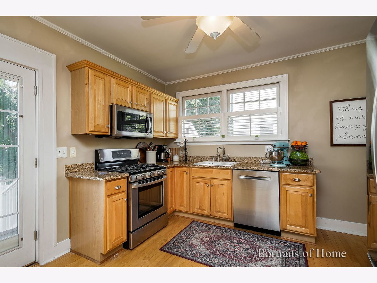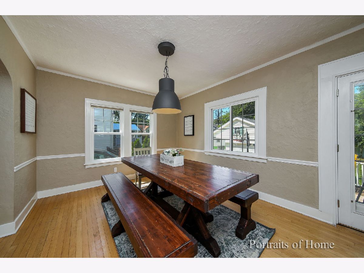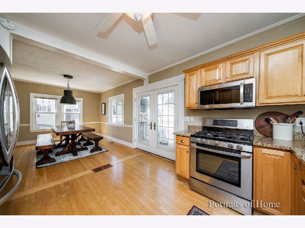 This meticulously maintained adorable in-town Glen Ellyn home is the perfect combination of vintage charm mixed with so many great new updates! Three bedrooms, two full bathrooms PLUS a finished basement (with unfinished sprayed ceiling). Newer windows & Hardwood floors throughout first AND second floor. Newer kitchen has maple cabinets, granite colors and room for an island. French doors open off of the kitchen lead to an expansive deck, overlooking the large backyard that is fully fenced in! Over sized detached two car garage also has attic storage area. Vintage charm displayed through beautiful crown molding, built-ins and gorgeous wood-burning stone fireplace. Seller Finished basement and added new drain tiles and sump pump. New carpeting makes it a warm and inviting place to relax and unwind. With a full bathroom, basement would be perfect for guests. Updates include stainless steel appliances (2016) High Efficiency Furnace (2016) Air Conditioner (2016) Hot Water Heater (2016) & Thermostat (2016). Washer and Dryer are newer also from 2016. Drainage tiles and sump pump added (2019) New roof (2019) Refinished Deck (2020) & New Garage Door (2019) One block to Ben Franklin, Metra Station and downtown Glen Ellyn, this home will not last! Seller ripped up old carpet off staurs and hallway. He will pay to have hallway hardwood stained to match*