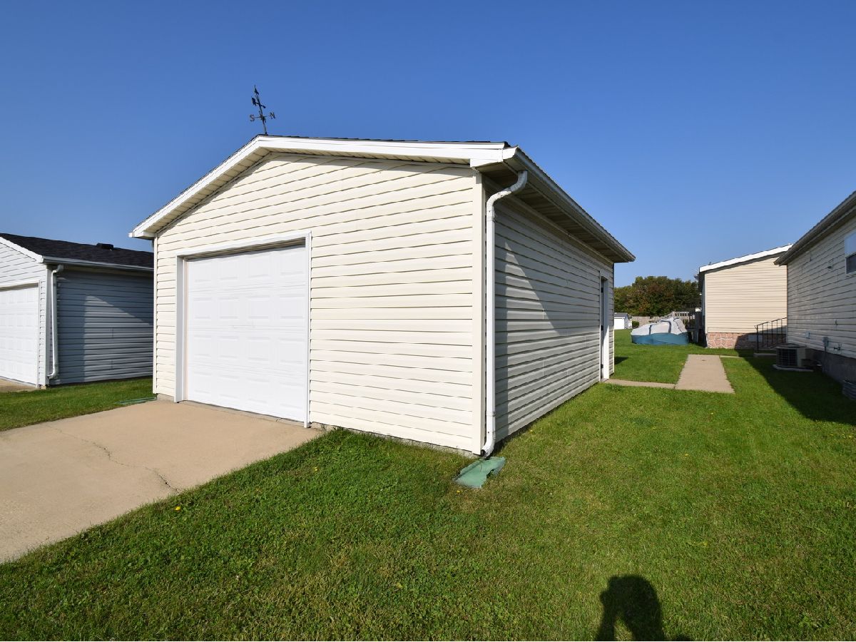 Super adorable 3 bedrooms 2 bathroom home situated on a corner lot with an oversized 1 car garage. The eat-in kitchen features an abundance of cabinet space and a nice size pantry. The mudroom is off the kitchen with washer and dryer hook-up. The Master Suite has a walk-in closet and a full bathroom! Water, sewer and trash included in lot rent. Lot rent locked in for two years.