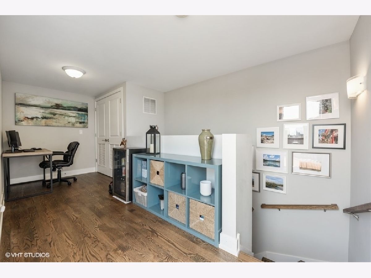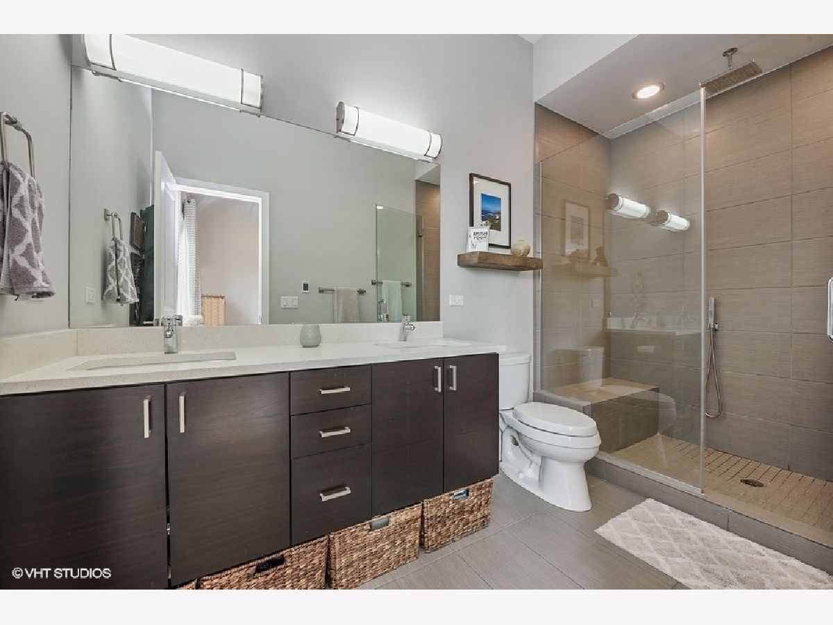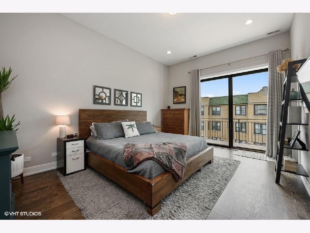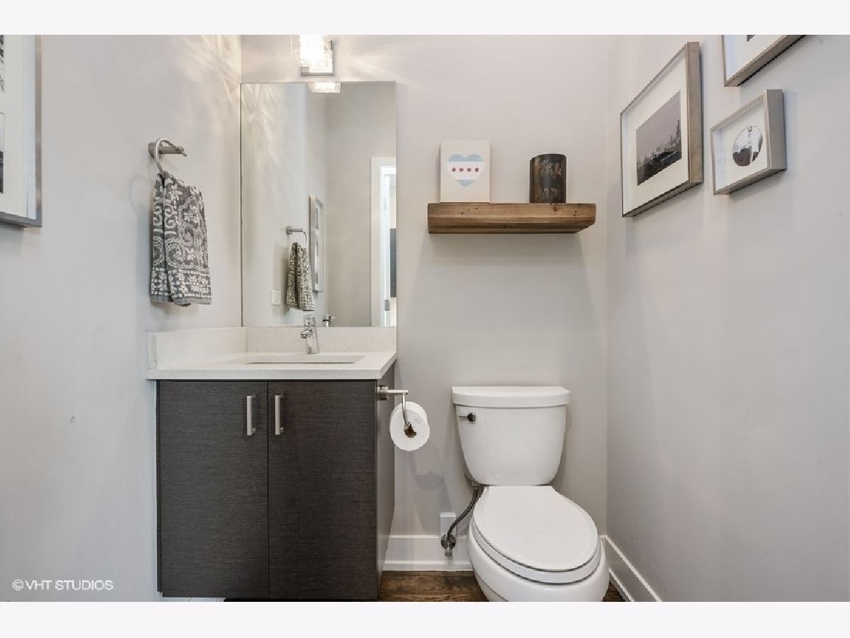 Logan Square PENTHOUSE unit located on a beautiful tree-lined street a block from the Blue Line and Palmer Square built in 2016. Featuring an abundance of natural light due to a Southern Exposure and three private outdoor spaces PLUS a private roof top deck this unit lives like a townhome. The kitchen features soft close flat panel cabinets, modern dome pendants, white subway tile backsplash and quartz countertops. Bosch appliances include a 5 burner, stainless steel range with hood, and french door refrigerator. The kitchen overlooks the full-width living / dining space with an adjacent powder room conveniently located for guests while entertaining. Along the same wall, a side-by-side washer dryer with built out storage above and separate pantry are tucked behind shaker style white doors. The Master Bedroom features a spacious walk-in closet, complete with California Closet systems while The Master Bath bath includes a floating double vanity, quartz countertops, oversized walk in rain shower and heated floors. Top floor bonus office/den and private rooftop deck with city views! The rooftop is wired for speakers and conveniently includes power and water. The lower level of has an additional full bathroom as well as two bedrooms and a deck off one of the bedrooms. Garage parking included, intercom entry and additional storage closet outside unit.