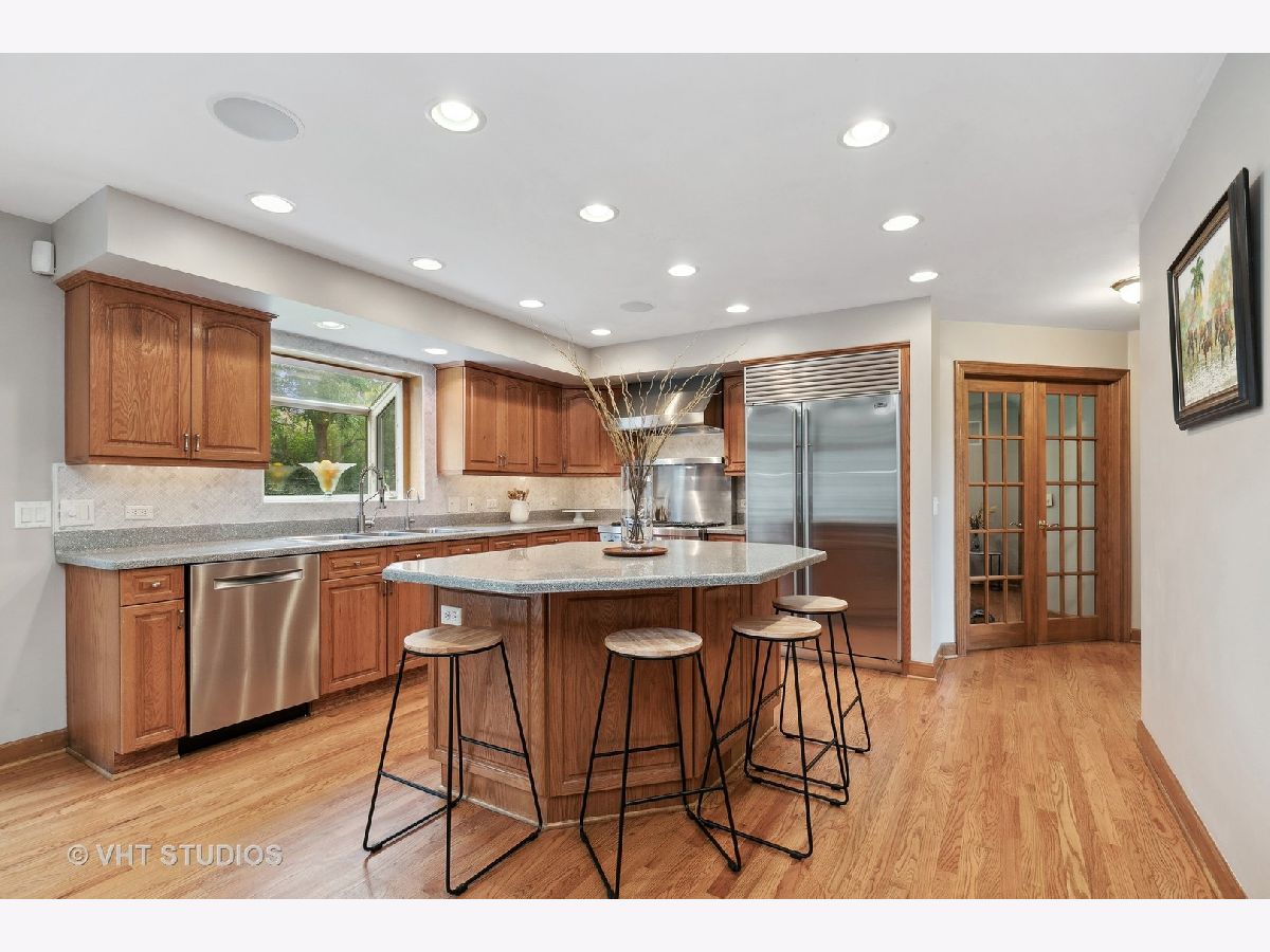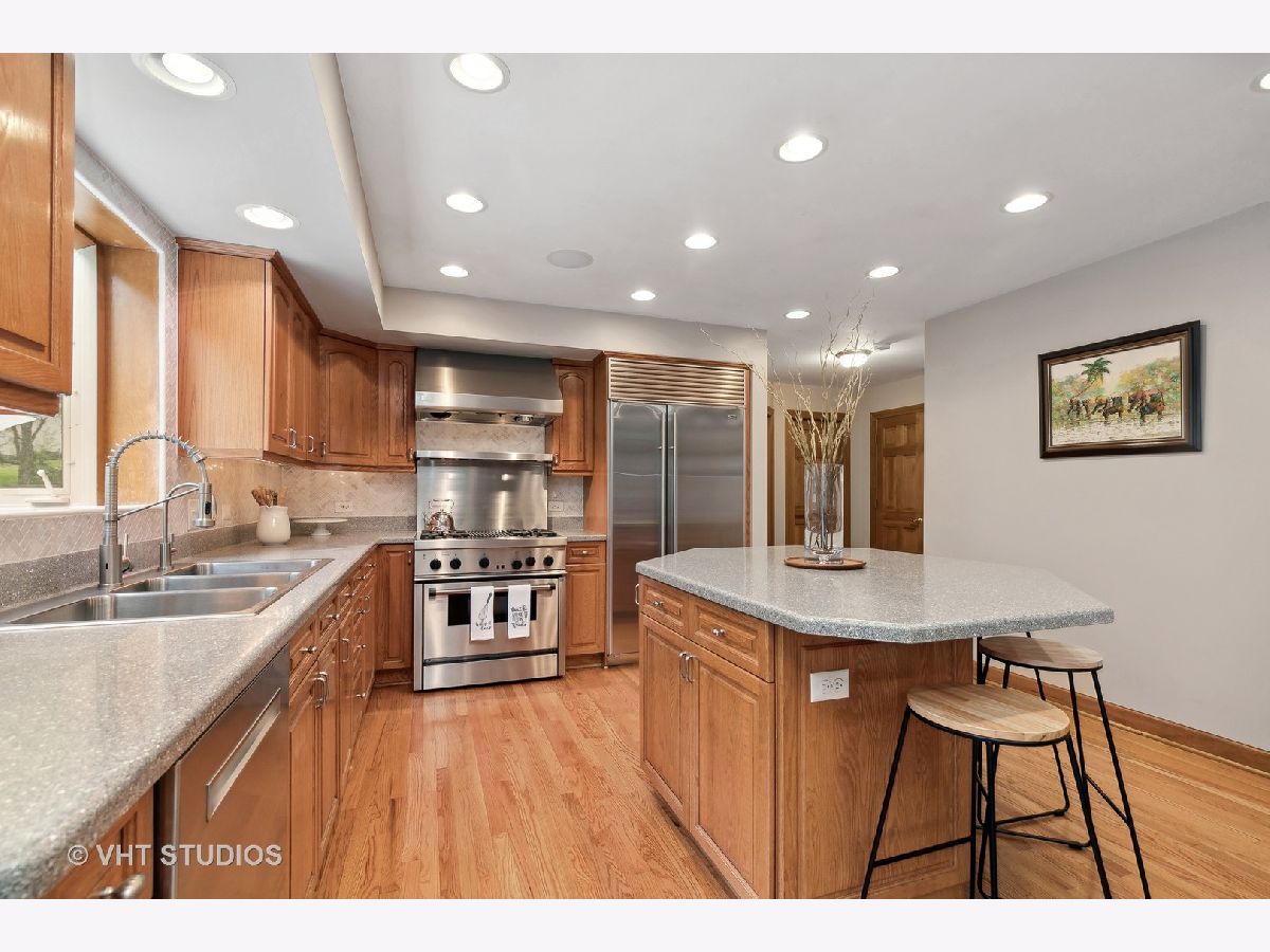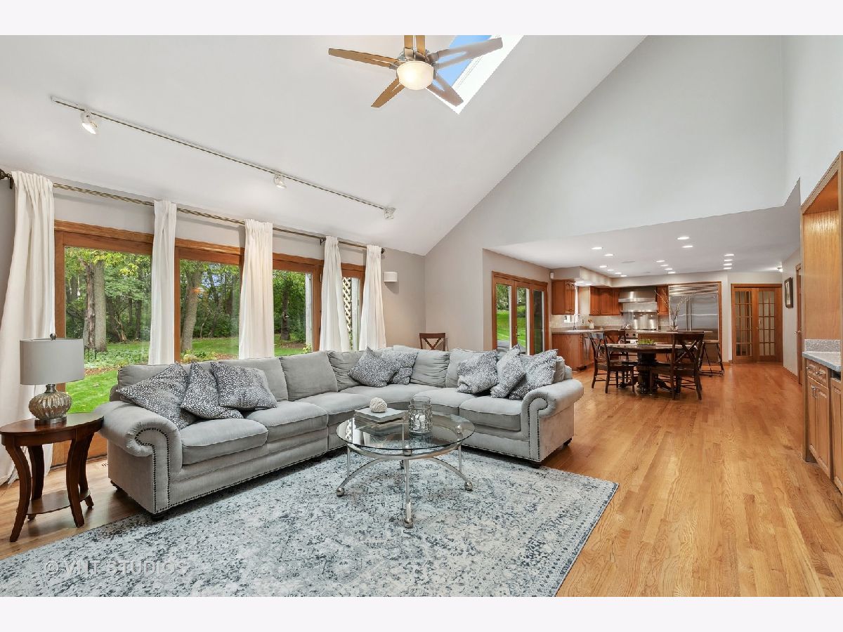 Step into elegant estate living on this exclusive and private cul-de-sac location backing to 24 acres of Private Conservation area. This stately home rests on a 2/3 acre offering a peaceful retreat, while only minutes from Randall Rd. shopping, restaurants Metra, and Interstate 90 and within HD Jacobs High School/D300. Enter the 2-story foyer flanked by a formal library or office with French doors, and a generous formal dining room. As you move past the foyer you are invited to an open floor plan well-designed for entertaining and viewing the breathtaking views of the forested backyard. The gourmet kitchen is a culinary dream! This spacious kitchen is equipped for the serious cook and host, with Corian countertops and new marble backsplash, luxury stainless steel appliances including Thermador range with grill, Sub-Zero refrigerator/freezer, and newer Bosch dishwasher. An oversized center island with seating provides entertaining space, in addition to the eat-in kitchen, which flows into the 2-story great room with wet bar/bar fridge. This spacious, vaulted great room blends seamlessly with nature and is saturated in natural light offered by skylights and a wall of windows with two sets of double doors leading to the backyard. Relax and unwind as you warm up with the floor-to-ceiling brick fireplace with gas assist, flanked by built-in bookcases for your entertaining and media center needs. Additionally, the first floor offers a 5th bedroom bedroom/office with an adjacent full bath, permitting plenty of room for a large family, or for further gathering space and entertaining. The second level of this home is connected by way of a beautifully designed wood staircase with Juliet balcony, and offers three full bedrooms and two additional full baths. Hardwood floors extend throughout, except for the expansive primary suite with its plush new carpet for personal luxury and comfort. The primary suite is a true retreat, featuring vaulted ceilings, sitting room with gas fireplace, a bonus room currently used as an exercise room, large walk-in closet, and luxury bath with heated floors, whirlpool tub, and separate shower. A true haven! The finished basement affords further space for potential guest quarters, media room or other flexible uses. A generous crawl space allows for all your storage needs, in addition to a utility/workbench area with task lighting. Additional features of this home include a three-car side-load garage with a brand new epoxy floor, with beautifully landscaped backyard with patio. Make this magnificent home yours and start enjoying all that it has to offer!