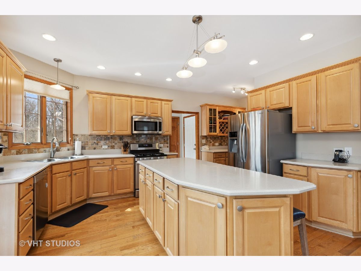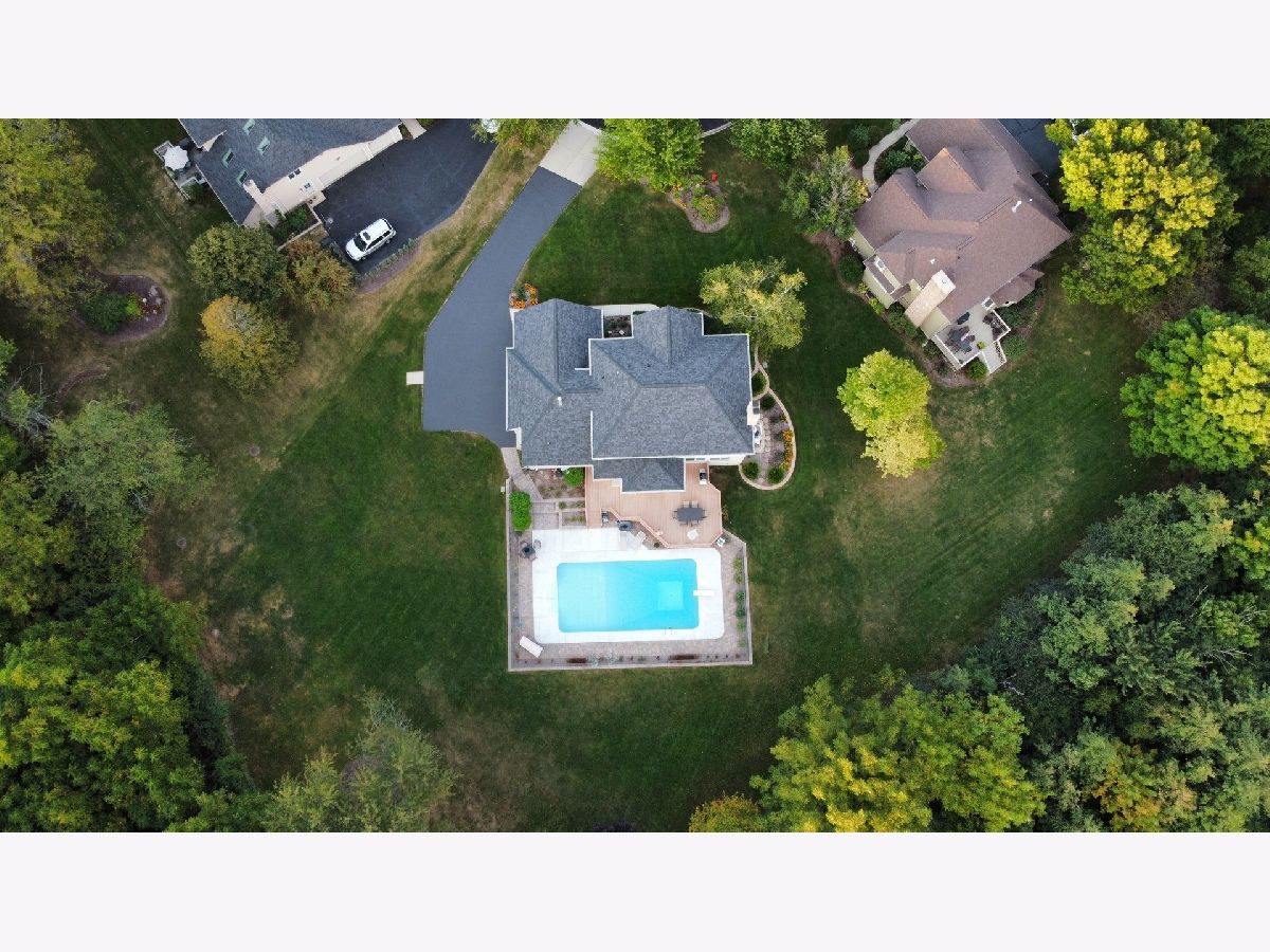 This beautiful, custom built BRICK home is located on a quiet cul-de-sac backing wooded private property that is adjacent to the historic RACEWAY WOODS FOREST PRESERVE. Situated on a 3/4 ACRE private lot in the exclusive Spring Acre Hills Subdivision and boasts not only a spectacular backyard views, but also a large, HEATED INGROUND POOL for extended summertime fun. The two story foyer greets you with gleaming HARDWOOD FLOORS and an OPEN FLOOR PLAN that is perfect for entertaining. Family room with a lovely BRICK FIREPLACE and a wall of windows that has breathtaking views is open to a huge eating area and overlooks expansive composite deck leading to the pool. The kitchen with tons of cabinets, SOLID SURFACE counters, a BUTLER'S PANTRY with huge walk-in pantry closet, island with seating and high end STAINLESS STEEL appliances. Both the laundry room and pool area have separate entrances for ease of access and less mess when coming in from your outdoor activities. The first floor office is secluded for that added privacy when working from home. Master suite offers large bedroom area, a more than generously sized bathroom with whirlpool tub, seperate shower, 2 vanity areas, a walk in closet with access to huge storage area over your garage. The FULL FINISHED BASEMENT with WET BAR in the rec room area that includes another BRICK FIREPLACE, bathroom, 2nd entrance from laundry/mudroom, exercise area and still plenty of storage and a room currently used as a workshop can be used for almost anything you may need. Speaking of garages, this oversized, SIDELOAD 3 CAR GARAGE WITH FRESHLY EPOXIED FLOORS, tons of storage and leads to a large driveway that would make a great BASKETBALL 1/2 COURT The 20X40 inground pool gradually slopes from 3-9ft, has a DIVING BOARD and a large fenced patio area where you can sit and enjoy the serenity of wooded nature at it's best. There is plenty of room to add your own outdoor firepit area, backyard playset, trampoline or use your imagination and create your own backyard oasis. Elementary school is nearby and neighborhood feeds into highly rated Jacobs High School. Close to I90, Metra and the Randall Road Corridor making your home close to all conveniences. All newer major mechanicals including roof, 5" gutters and HVAC just to name a few. This marvelous home is ready to move in and make your dreams come true.