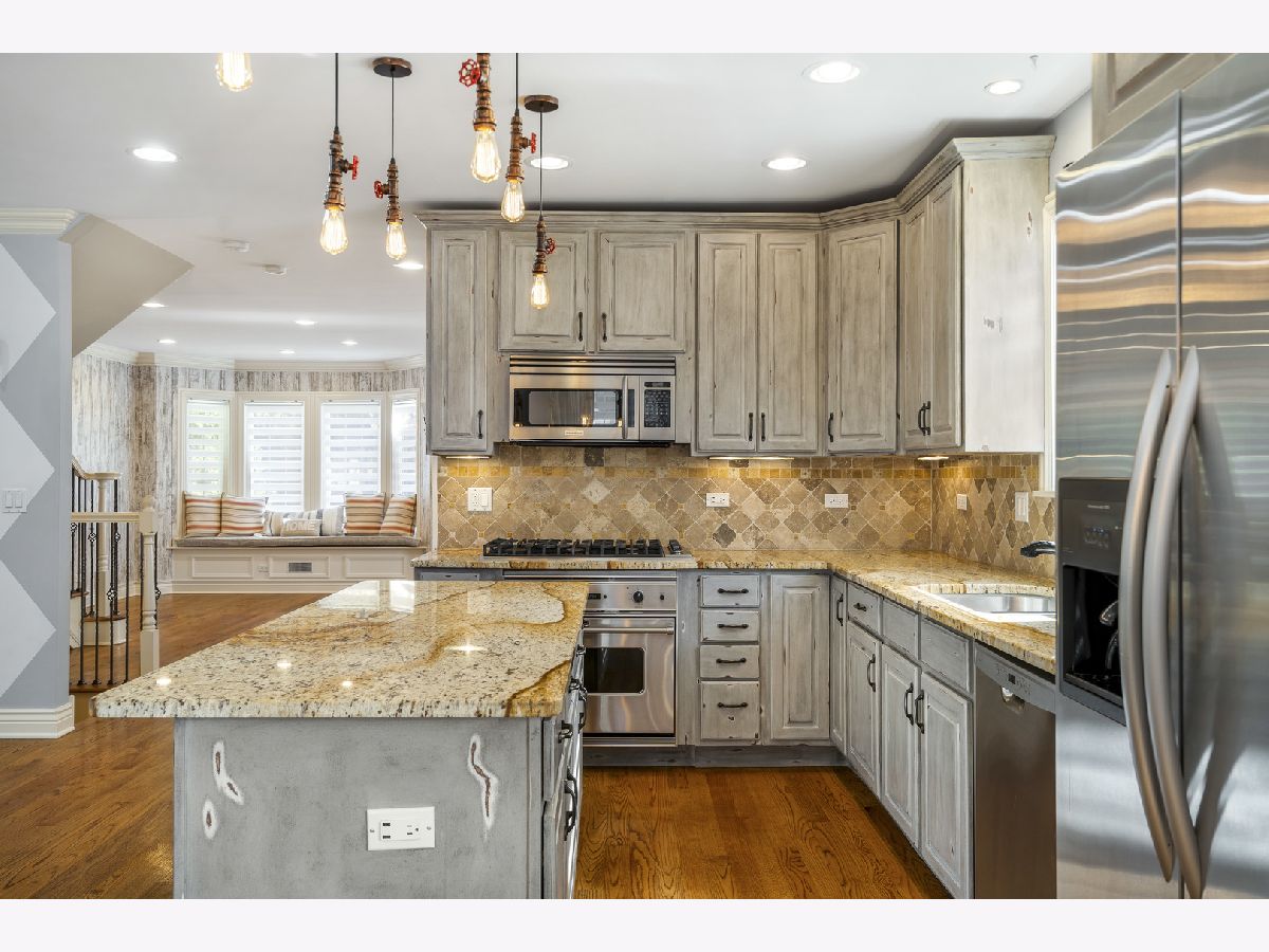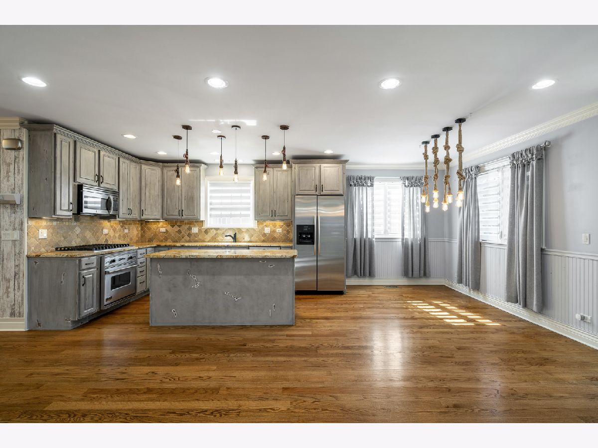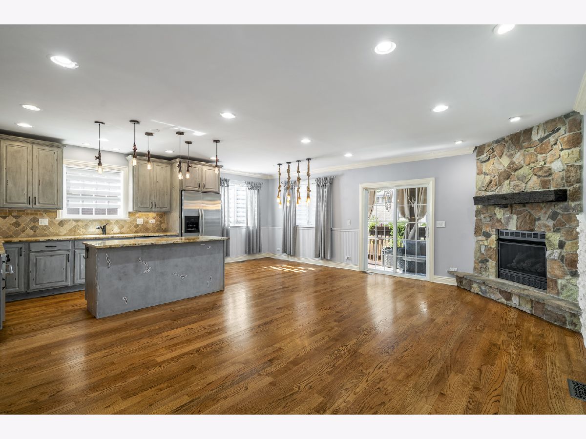 Welcome home! Discover this stunning residence situated in the sought-after Elmwood Park neighborhood. This inviting home features 4 bedrooms, 3.5 bathrooms, and a spacious two-car garage, along with many other impressive attributes! Upon entering, you're greeted by a bright, open layout showcasing custom details, stunning hardwood floors, and recessed lighting throughout. The expansive living room features bay windows and an elegant wrought-iron staircase. The chef's kitchen is a culinary delight, equipped with stainless steel appliances, granite countertops, an exquisite backsplash, and an island that flows into the cozy family room, which includes decorative elements and a gas fireplace. The spacious dining area is perfect for entertaining, with sliding doors leading to a deck built in 2016. The deck features ceiling fans for added comfort, making it an ideal spot to enjoy your morning coffee. Going upstairs, you'll discover three bedrooms, including the luxurious master suite, along with two full bathrooms. The primary suite is truly remarkable, featuring vaulted ceilings, a large walk-in closet, and a spa-like bathroom with a Jacuzzi tub, double vanity, and a separate steam shower. Two additional bedrooms share a convenient Jack and Jill bathroom. The fully finished basement offers a dry bar, recreational area ideal for relaxation and entertaining, a fourth bedroom, a full bathroom with shower, and a laundry room. Recent upgrades include a comprehensive renovation in 2007, which added a second story and expanded the first floor, along with new roofing, windows, kitchen, bathrooms, doors, trim, and lighting. Additional enhancements feature fresh paint, a new water heater (2023) and dual-zone central air (2018). The property also includes a new fence (2016). The garage built in 2021 offers rooftop potential with extra support beams already in place and electric outlets ready for future expansion. New oversized gutters! This house is conveniently located near school, major highways, the airport, shopping centers, parks, and train stations, this property is a must-see! Hurry up ! It won't last long!
