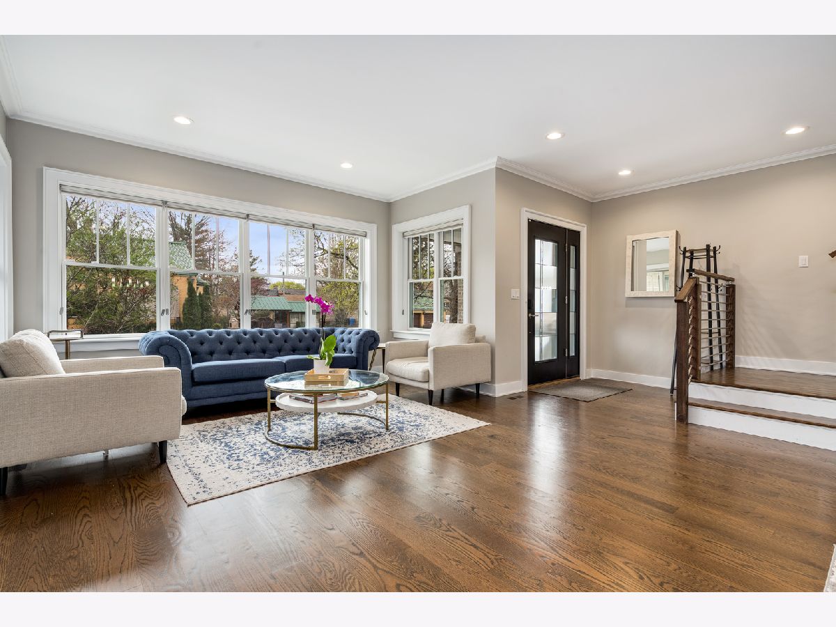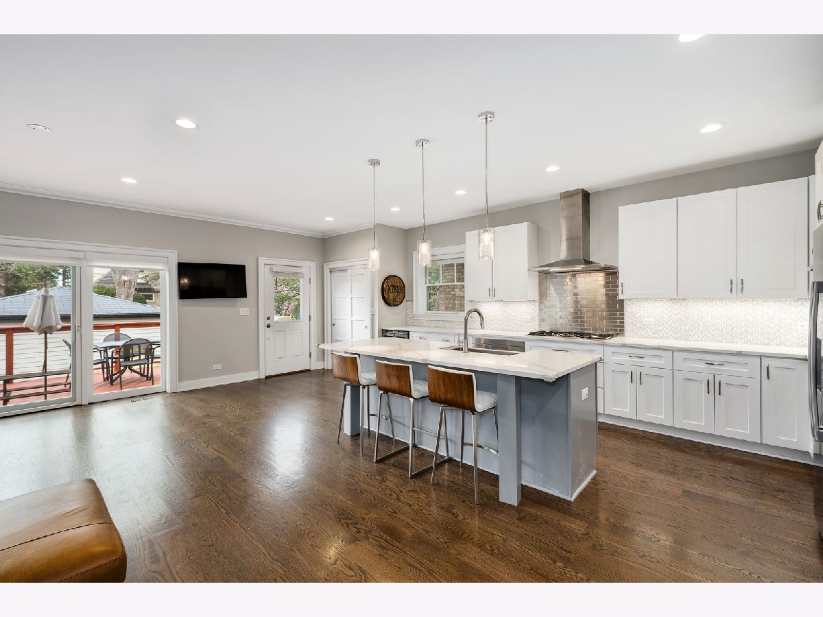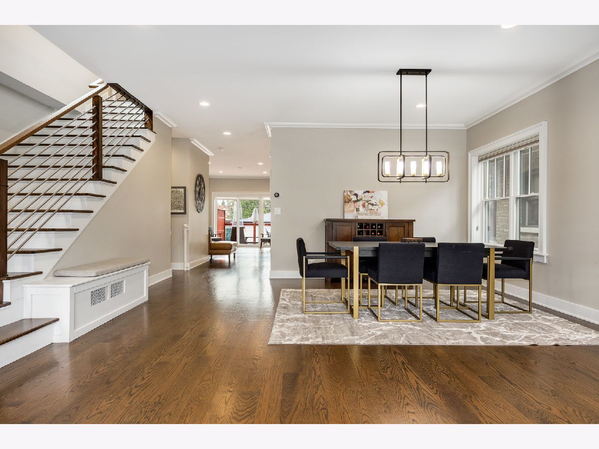 Stunning Renovated Home in Peterson Woods - Steps from the Chicago River and Bicycle Paradise Path! Welcome to this exceptional Peterson Woods residence, fully reimagined in 2018 with luxury finishes and modern conveniences across all three levels. Just steps from Legion Park and the scenic trail along the Chicago River, this home offers the perfect balance of city living and natural serenity. The open-concept main level boasts 9' ceilings, wide-plank hardwood floors, and a sleek open staircase with custom stainless steel and oak railings. The spacious living and dining area flows effortlessly into the chef's kitchen, featuring a massive 9-foot island, double oven, and no shortage of storage. The kitchen extends to a cozy family room with large sliding doors opening to a beautifully landscaped, fenced backyard. Upstairs, enjoy vaulted ceilings, skylights, and a luxurious primary suite complete with a walk-in closet, spa-like bathroom, and a modern sliding barn door. This home is dual zoned, providing efficient comfort all year long. The fully finished lower level adds incredible versatility with a huge family/recreation room finished with epoxy floors, a fourth bedroom, full bath, and an amazing separate laundry room. This thoughtfully designed home is perfect for entertaining and everyday comfort