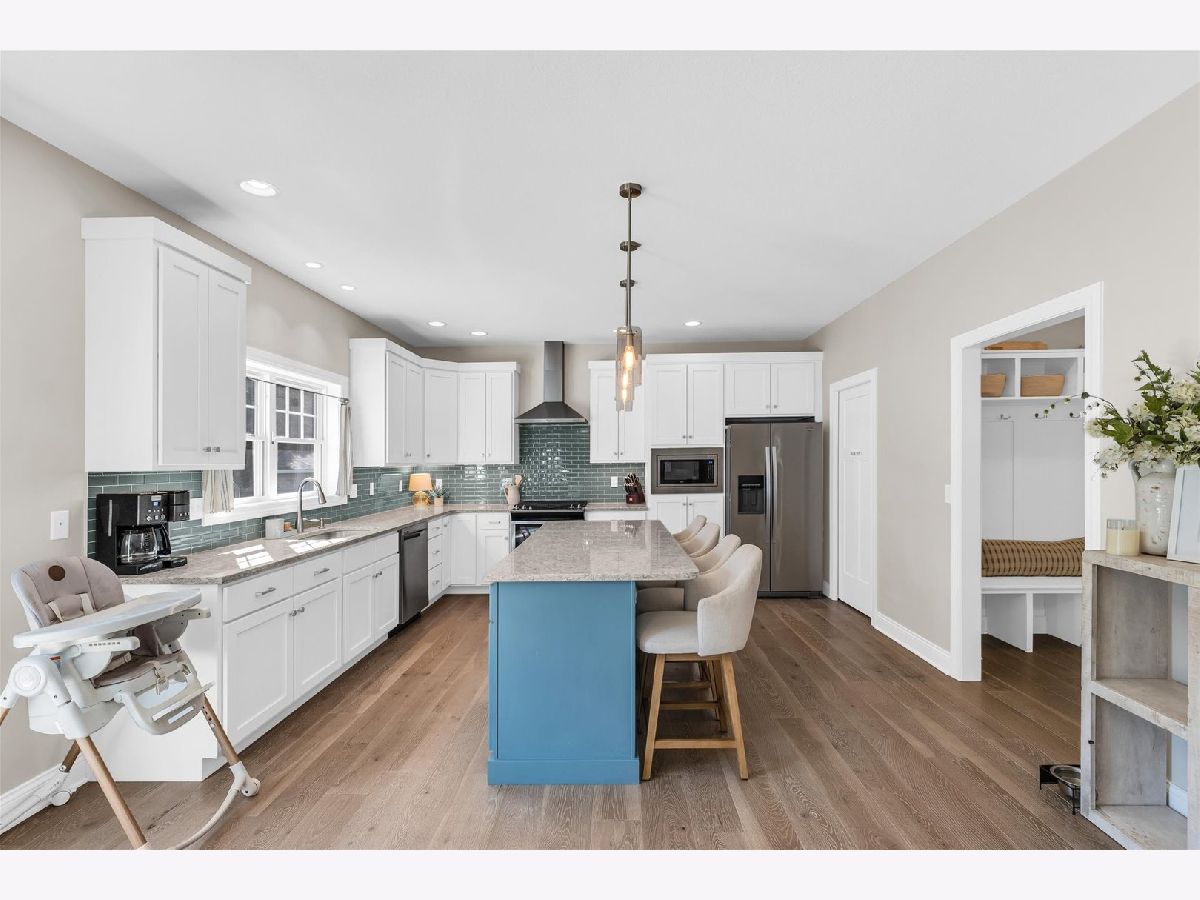 Bright, beautiful, and brilliant! This four-bedroom, two-and-a-half-bath home is exceptionally clean, and offers the perfect balance of both formal and casual spaces for both entertaining and day-to-day living, and is filled with custom upgrades. The large open kitchen has everything a cook would enjoy and is open to the spacious living room with a fireplace. The full basement provides endless possibilities for future living space and has plumbing for a bathroom. Upstairs, the primary bedroom feels warm and cozy with neutral carpeting and boasts an attached full bath with heated floors, large tile shower, and a walk-in closet. Three additional bedrooms and the laundry room complete the second floor. Custom-built closet shelving, 9 foot ceilings, and solid core doors are just a few of the many high-quality touches throughout the house. As the weather warms you'll enjoy the oversized back patio overlooking the mature evergreen trees along the back of the property. Don't miss this one, call today to schedule your private showing!
