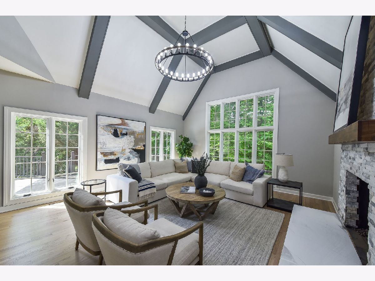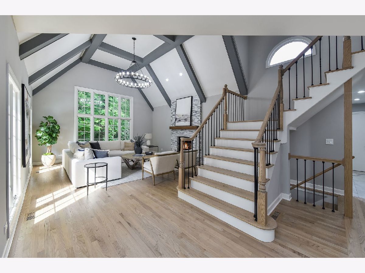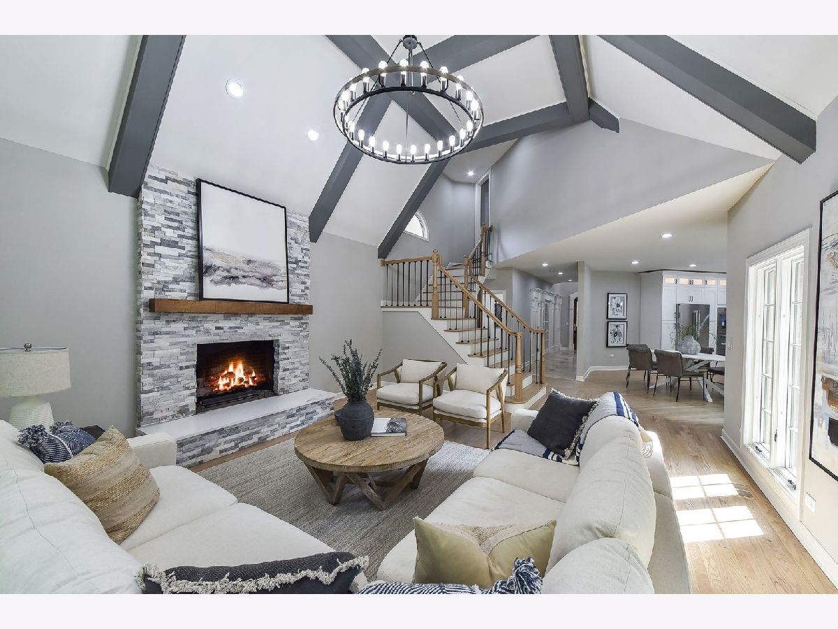 Welcome to Woods of Fox Glen! This impeccably rehabbed home is a true masterpiece of unparalleled luxury and modern comfort. Every detail has been meticulously crafted to create a living space that is both stylish and functional. As you step inside, you'll be greeted by an expansive foyer bathed in natural light. The gourmet kitchen boasts 42" cabinetry with glass upper cabinetry, Thermador stainless steel appliance package (including double ovens, hood range & pot filler), quartz countertops with glass tile backsplash, a spacious island with seating, making it perfect for both everyday meals and entertaining guests. Adjacent to the kitchen, the formal dining area features wainscoting. Relax in your sunroom that is filled with natural light while being surrounded by nature. An inviting living room with a chic fireplace & vaulted ceiling. Your family room has been thoughtfully designed with a vaulted, beamed ceiling & stacked stone fireplace to combine comfort, style, and functionality, making it the perfect gathering place for family and friends. The executive office offers elegance and functionality designed to cater to the needs of today's business leaders. Offering a harmonious blend of sophistication and efficiency. The master suite is a true retreat, featuring a spa-like ensuite bathroom with a soaking tub, a separate glass-enclosed shower with body spray shower system, and dual vanities. Three additional bedrooms plus 2 baths on the second level offer generous space for family members and guests, each designed with comfort and privacy in mind. The fully finished walk-out basement is an entertainer's paradise, complete with a spacious family room with fireplace, a full kitchen with granite counters, shaker style cabinetry & subway tile, plus a workout area & recreation area. This level also includes a bedroom, two full bathrooms & hookups for second laundry room, adding convenience and versatility. Step outside to your personal oasis. The expansive deck overlooks a beautifully landscaped yard, while the patio provides the perfect spot for outdoor dining and relaxation. Dive into the sparkling pool or lounge poolside on hot summer days - this backyard has it all. Additional features include a three-car garage with a concrete drive & a circular drive offering convenient guest parking. Located in the highly sought after Woods of Fox Glen, this home offers easy access to shopping, dining, and recreational facilities. Don't miss the opportunity to own this stunning, move-in ready home. Schedule your private tour today and experience the epitome of luxury living!