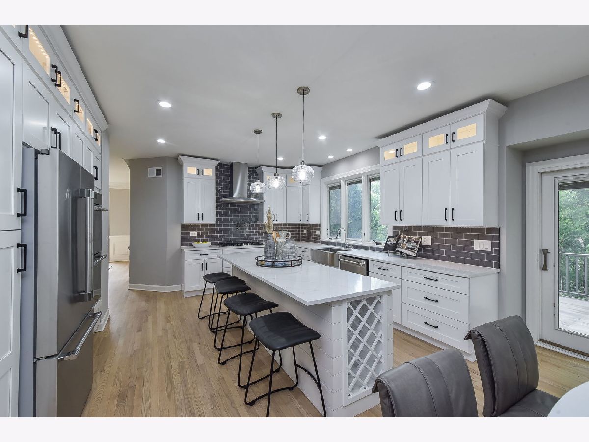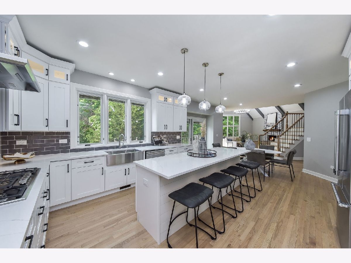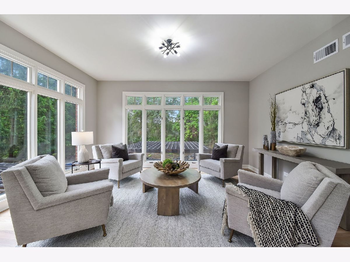 Welcome to Woods of Fox Glen! This impeccably rehabbed home is a true masterpiece of unparalleled luxury and modern comfort. Every detail has been meticulously crafted to create a living space that is both stylish and functional. As you step inside, you'll be greeted by an expansive foyer bathed in natural light. The gourmet kitchen boasts 42" cabinetry with glass upper cabinetry, Thermador stainless steel appliance package (including double ovens, hood range & pot filler), quartz countertops with glass tile backsplash, a spacious island with seating, making it perfect for both everyday meals and entertaining guests. Adjacent to the kitchen, the formal dining area features wainscoting. Relax in your sunroom that is filled with natural light while being surrounded by nature. An inviting living room with a chic fireplace & vaulted ceiling. Your family room has been thoughtfully designed with a vaulted, beamed ceiling & stacked stone fireplace to combine comfort, style, and functionality, making it the perfect gathering place for family and friends. The executive office offers elegance and functionality designed to cater to the needs of today's business leaders. Offering a harmonious blend of sophistication and efficiency. The master suite is a true retreat, featuring a spa-like ensuite bathroom with a soaking tub, a separate glass-enclosed shower with body spray shower system, and dual vanities. Three additional bedrooms plus 2 baths on the second level offer generous space for family members and guests, each designed with comfort and privacy in mind. The fully finished walk-out basement is an entertainer's paradise, complete with a spacious family room with fireplace, a full kitchen with granite counters, shaker style cabinetry & subway tile, plus a workout area & recreation area. This level also includes a bedroom, two full bathrooms & hookups for second laundry room, adding convenience and versatility. Step outside to your personal oasis. The expansive deck overlooks a beautifully landscaped yard, while the patio provides the perfect spot for outdoor dining and relaxation. Dive into the sparkling pool or lounge poolside on hot summer days - this backyard has it all. Additional features include a three-car garage with a concrete drive & a circular drive offering convenient guest parking. Located in the highly sought after Woods of Fox Glen, this home offers easy access to shopping, dining, and recreational facilities. Don't miss the opportunity to own this stunning, move-in ready home. Schedule your private tour today and experience the epitome of luxury living!