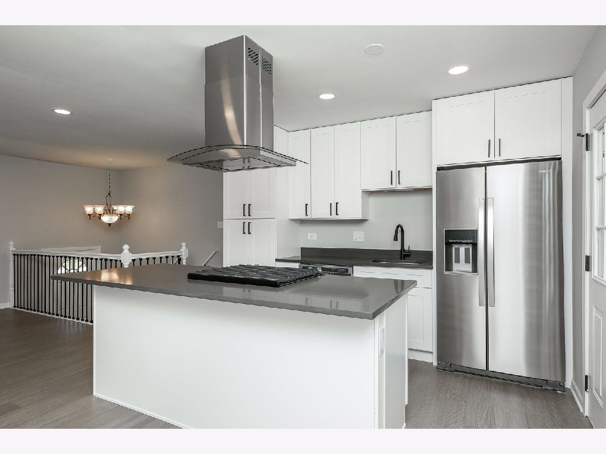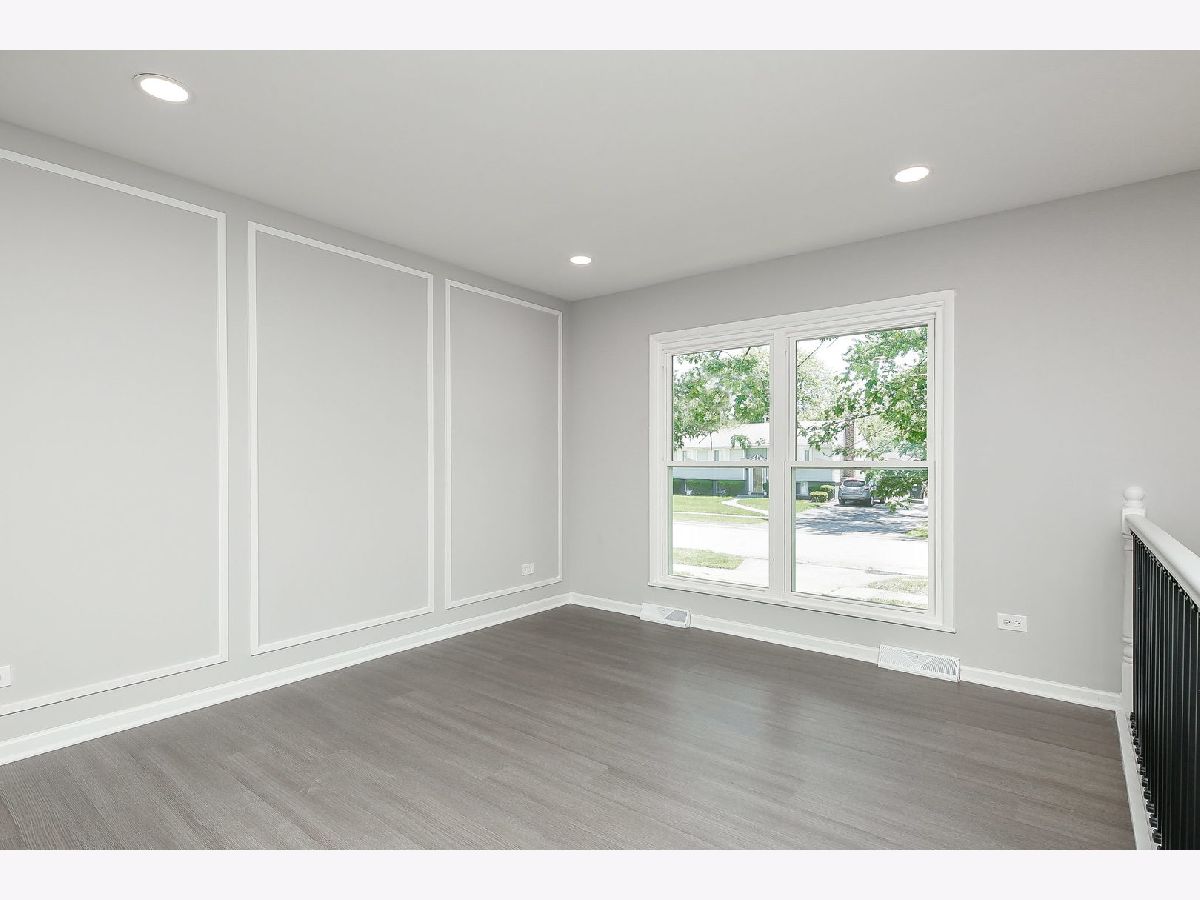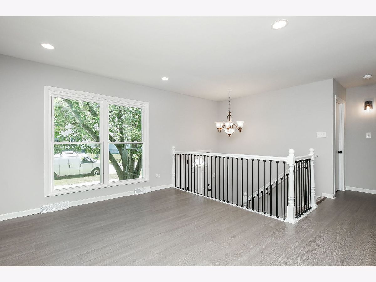 Welcome home to this completely updated raised-ranch featuring 4 bedrooms/2 bathrooms, 2 car detached garage and large fenced yard, perfect for outdoor entertaining! Updated throughout with neutral color palettes, new windows, updated lighting, kitchen, bathrooms, flooring, paint & more! The kitchen features new white cabinetry (with soft close), quartz countertops, brand new SS appliances including gas cooktop, built-in oven & microwave, dishwasher, and modern fridge. Island seating for 5+, with a combo dining area & plenty of room for hosting. New vinyl plank flooring and a modern accent wall compliment the main living area and kitchen/dining room. 2 beds upstairs and updated full bath. Head downstairs where you're welcomed into a large family room - bright and spacious with new carpet throughout! 2 more bedrooms and full bathroom on the lower level as well, along with mechanical/laundry closet. The back door off the kitchen leads to a new, modest deck and into the large fenced yard, backing Veterans Park. Walking distance to schools & bike to forest preserve trails!