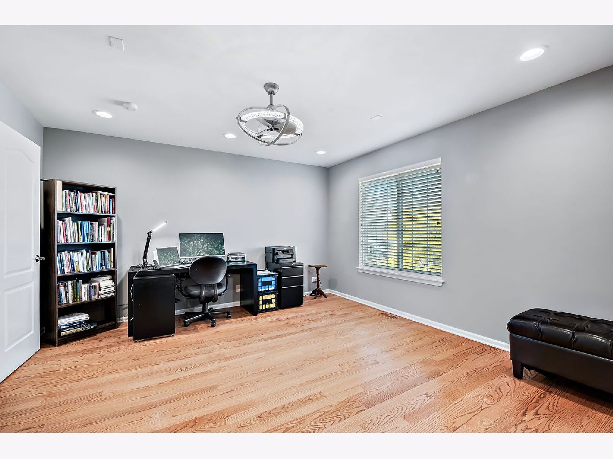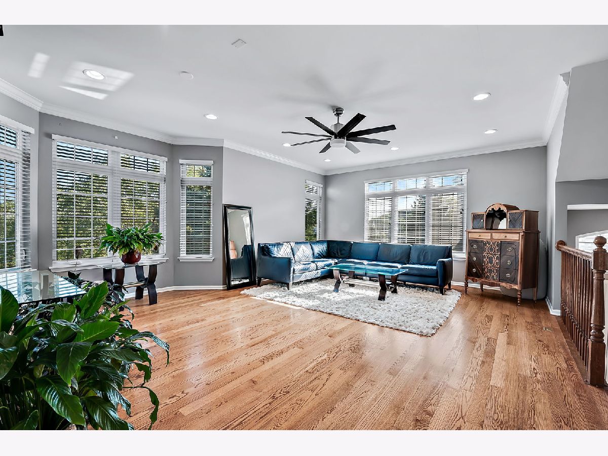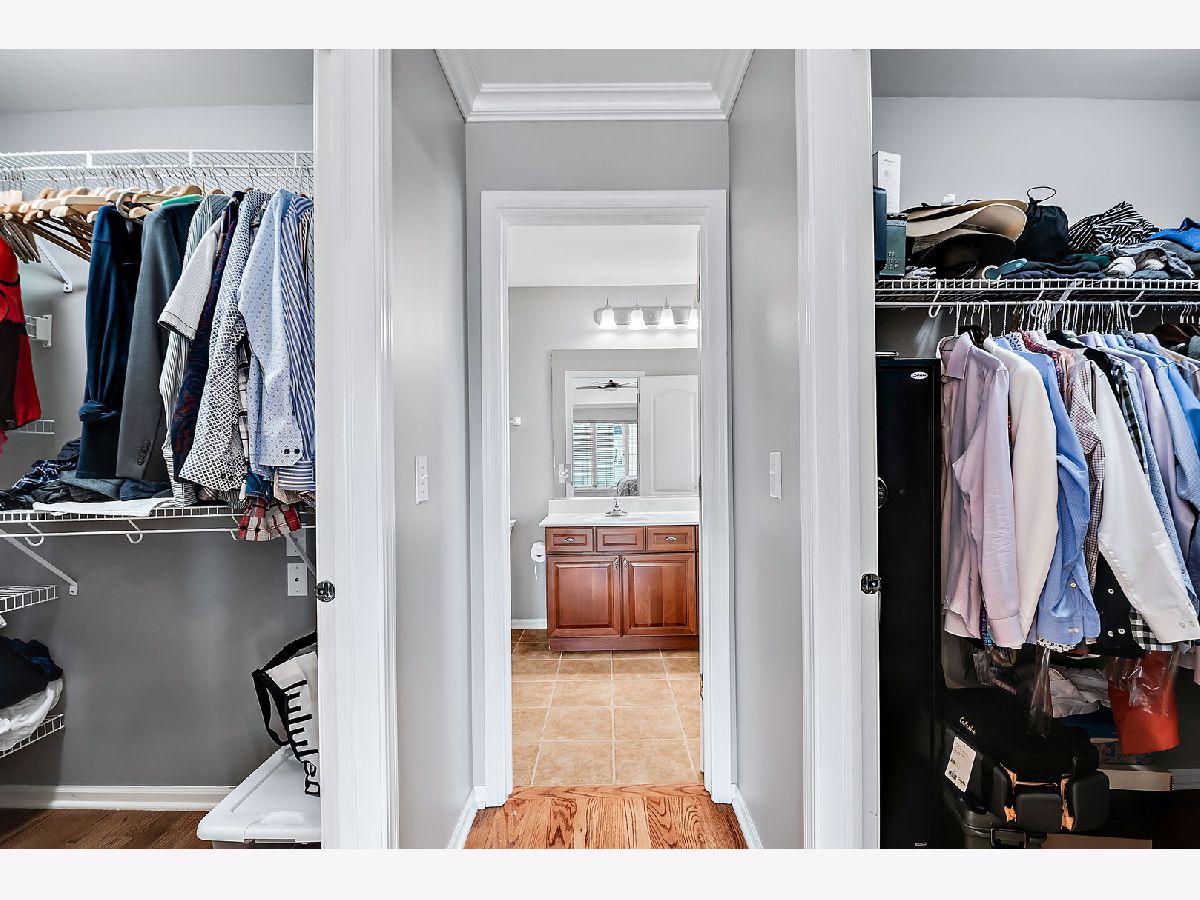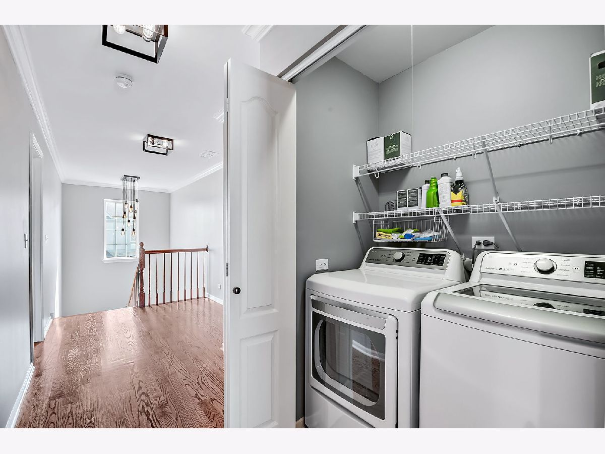 This exceptional end-unit townhome is a true gem, featuring an inviting open-concept design and showcasing the elegance of hardwood floors throughout. With 9-foot ceilings on the first floor, this 3-bedroom, 3.5-bathroom home includes a 2-car garage for your convenience. You'll love the abundance of natural light that graces this east-facing residence. The well-appointed kitchen boasts 42" cabinets, a pantry, and stainless steel appliances, all set against the backdrop of a large window that frames a picturesque park view. Sliding doors in the breakfast area open to a charming balcony, seamlessly blending the indoors with the outdoors. The second-floor master suite is a private retreat, offering two generously sized walk-in closets, a tray ceiling, and a spacious bathroom with a separate shower, Jacuzzi bathtub, and dual sink vanity. Another master bedroom on the second floor enjoys its own bathroom suite and an extra-large closet, providing ample space and comfort. You'll find exceptional storage throughout the home, ensuring your organizational needs are met. The second-floor loft includes a dedicated workstation, perfect for those who work from home. Ceiling fans in all bedrooms enhance both comfort and style, while the second-floor laundry room streamlines daily tasks. The lower level is a versatile space, complete with a full bath and an additional bedroom, making it an excellent in-law arrangement or guest suite. Additional features include a newer oversized HVAC unit and outside condenser (replaced in 2020), brand new siding and roof (2023), and a Wink System that allows for seamless connection and automation of home devices via phone or tablet from anywhere in the world. Numerous other improvements are detailed in the additional information. The location of this home is truly ideal, just minutes away from expressways and train stations, ensuring a convenient daily commute. Don't miss out on this incredible opportunity to make this remarkable townhome your own.